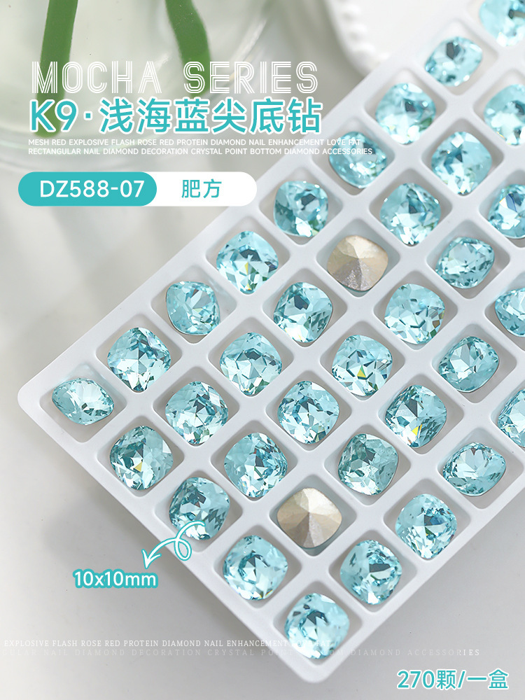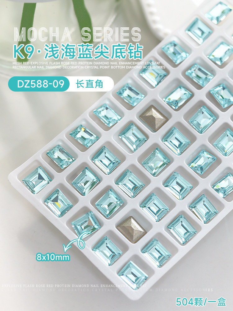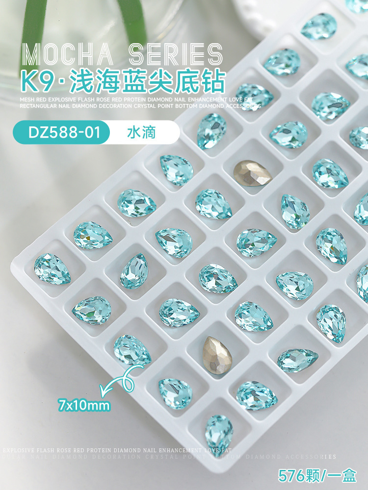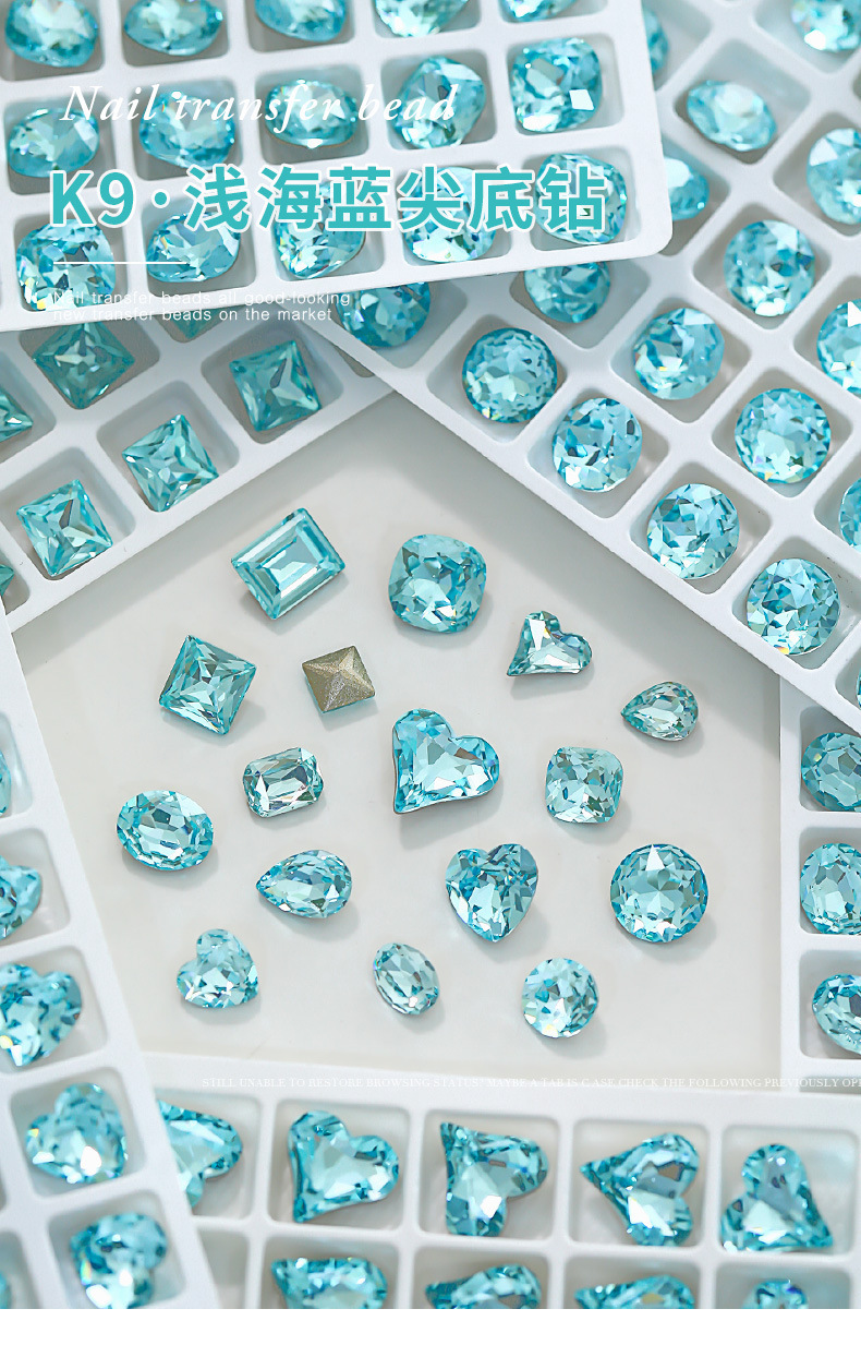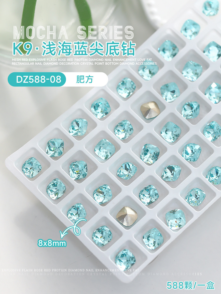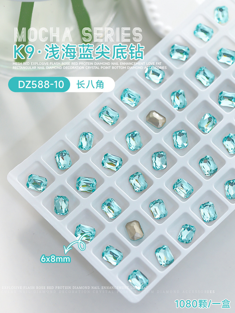 사이버 축하 네일 아트 쥬얼리 레이크 블루 크리스탈 샤프 하단 특수 모양의 드릴 슈퍼 플래시 도끼 드릴 지방 광장 비뚤어진 하트 네일 액세서리 드릴스토어 가기