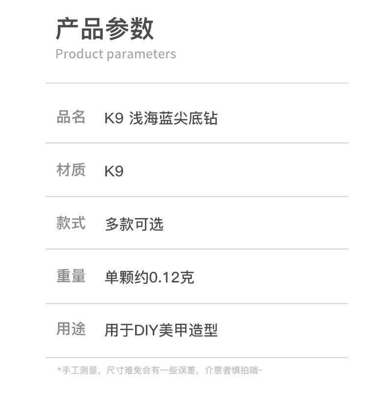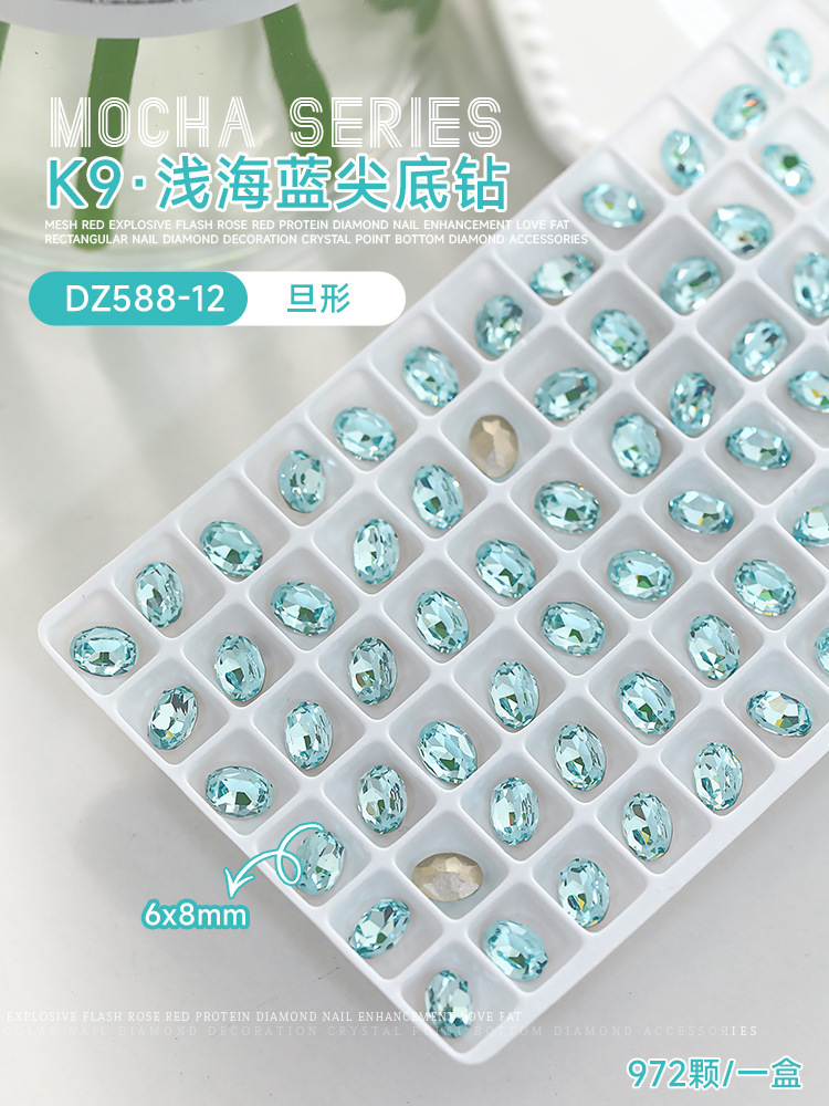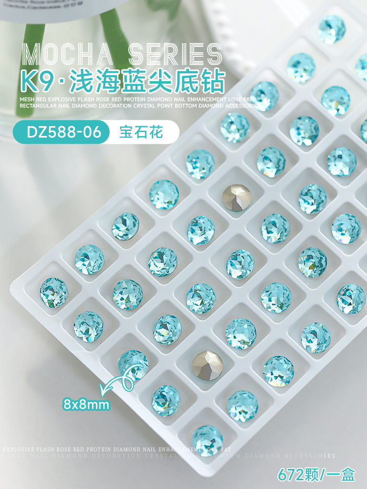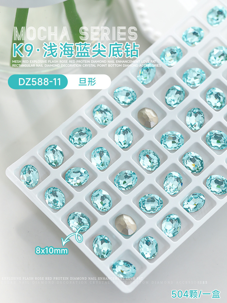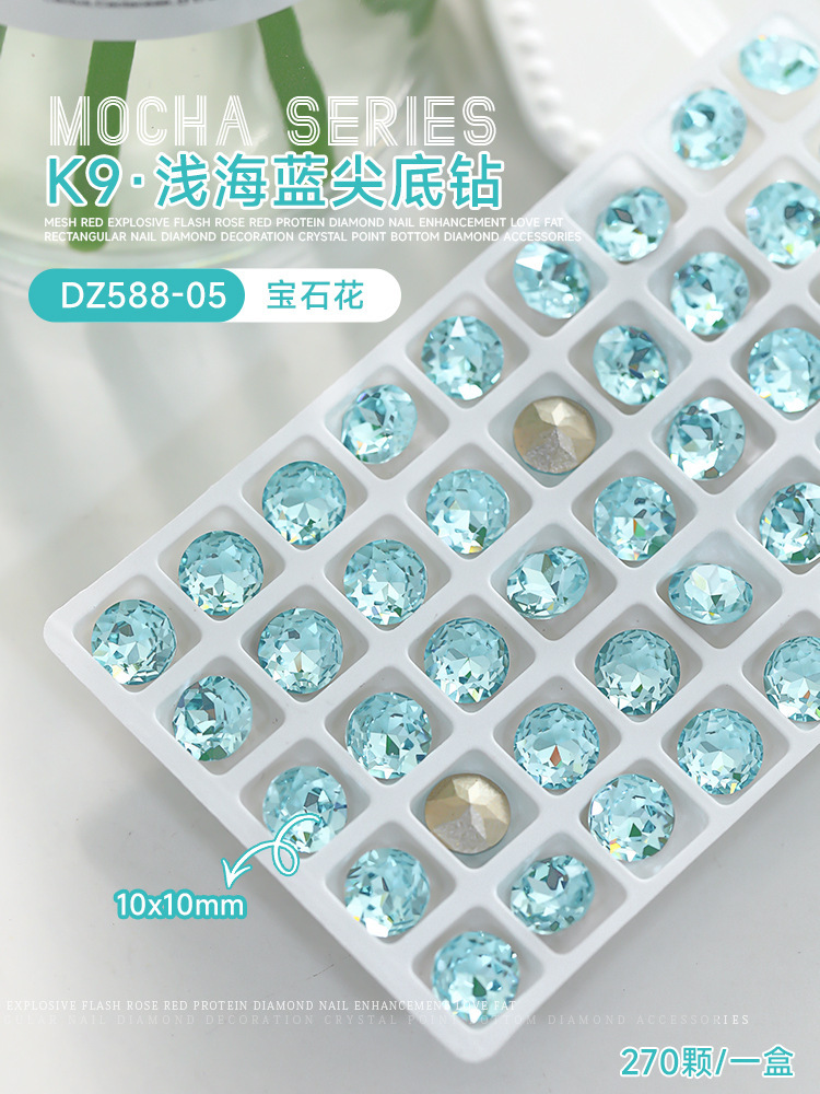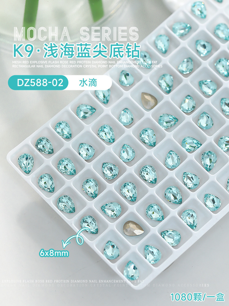 사이버 축하 네일 아트 쥬얼리 레이크 블루 크리스탈 샤프 하단 특수 모양의 드릴 슈퍼 플래시 도끼 드릴 지방 광장 비뚤어진 하트 네일 액세서리 드릴스토어 가기