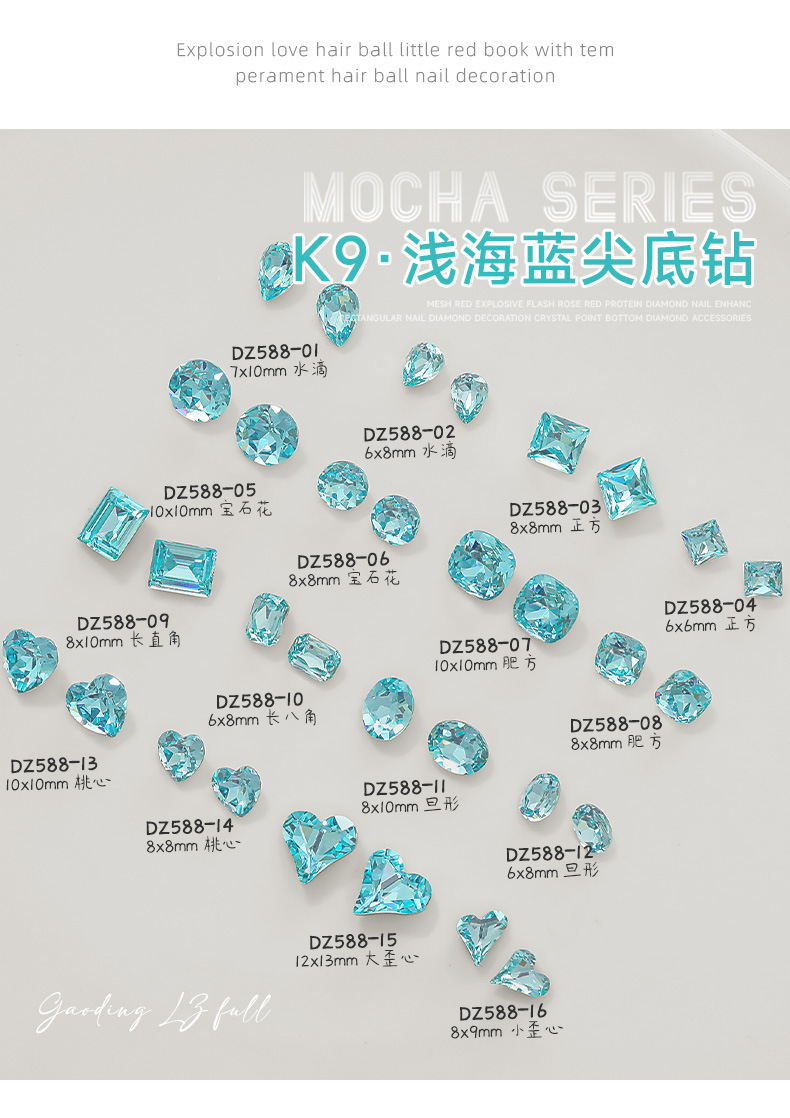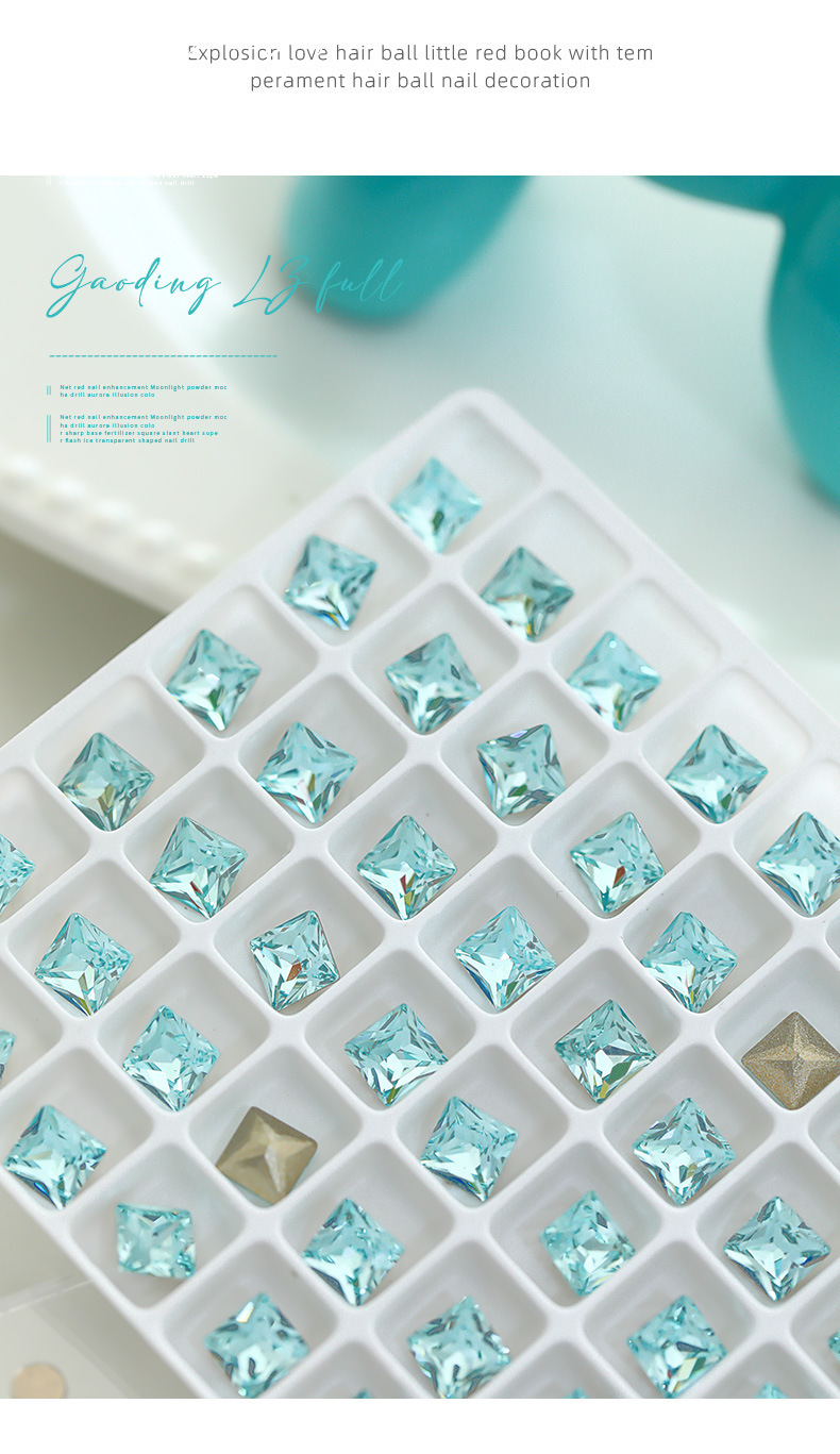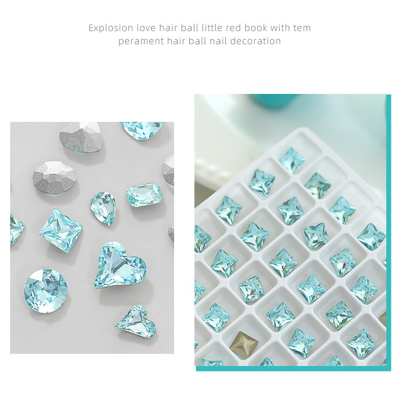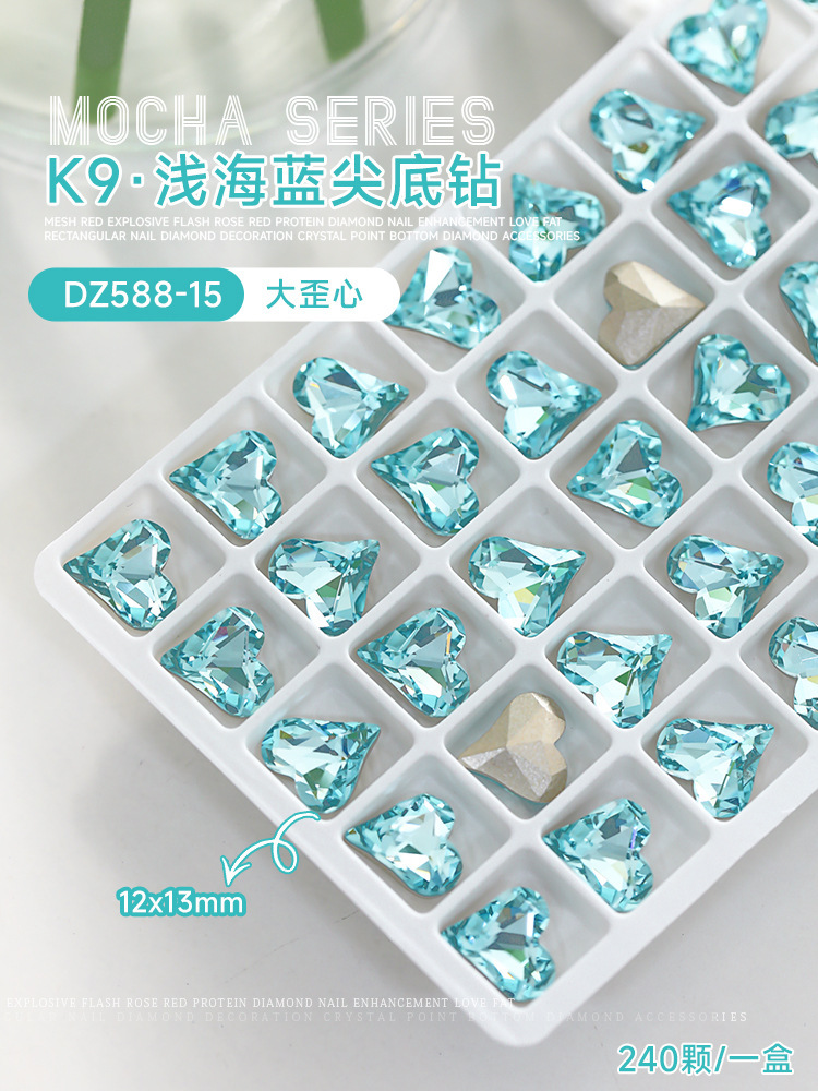 사이버 축하 네일 아트 쥬얼리 레이크 블루 크리스탈 샤프 하단 특수 모양의 드릴 슈퍼 플래시 도끼 드릴 지방 광장 비뚤어진 하트 네일 액세서리 드릴