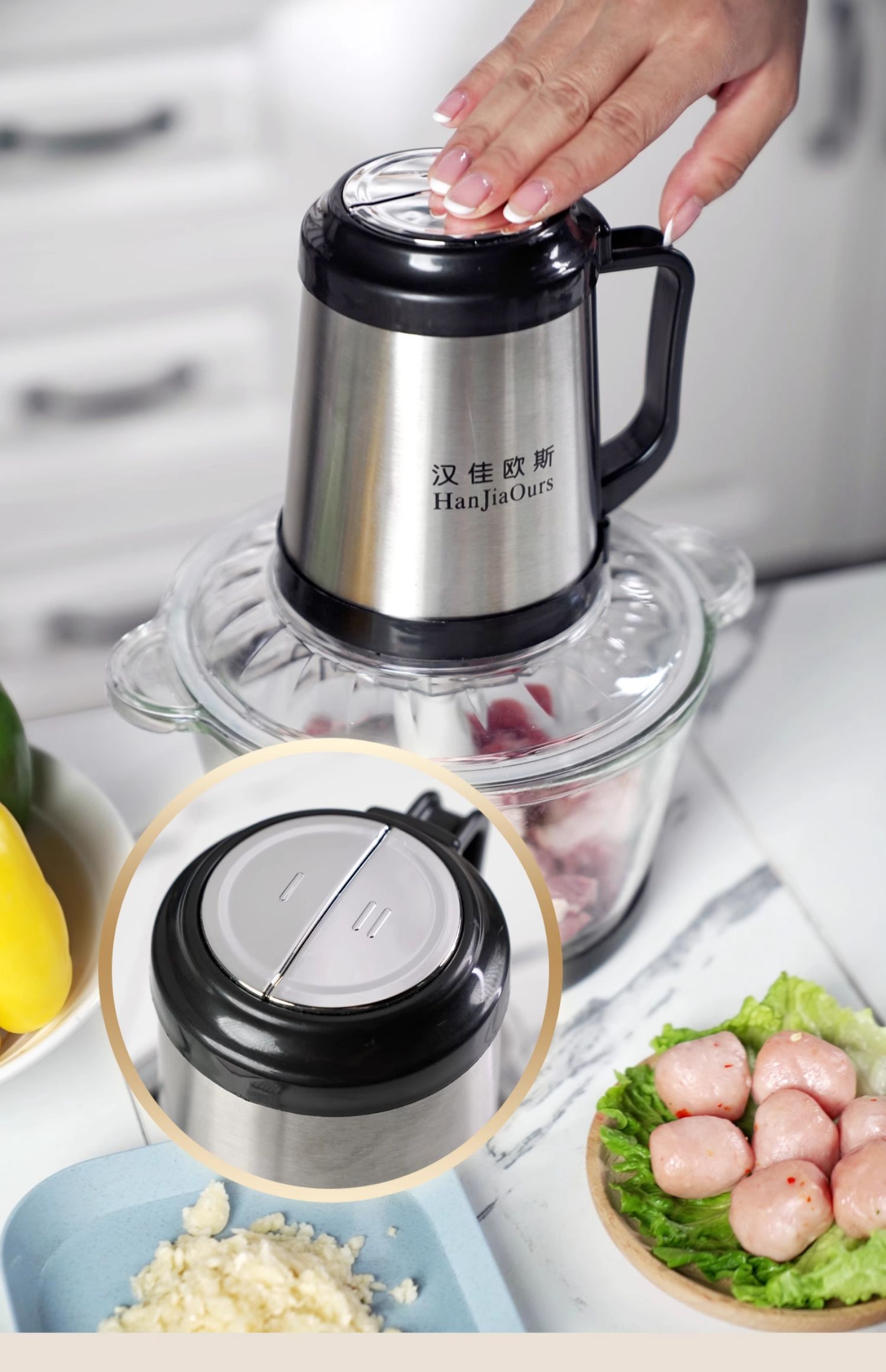 독일 Hangea Ous 고기 분쇄기 가정용 전기 다기능 마늘 고추 소스 만두 필링 믹싱 쿡 머신스토어 가기