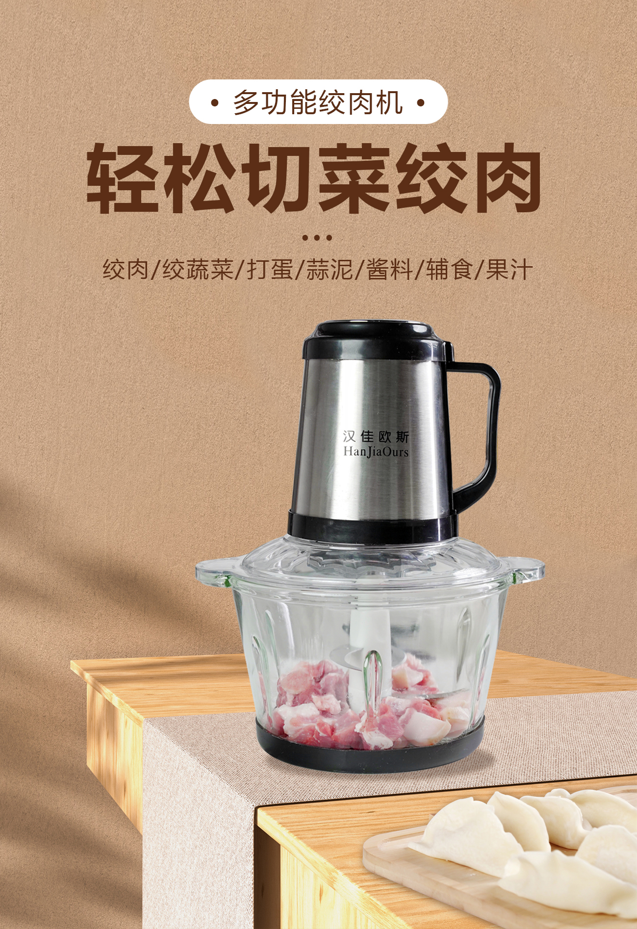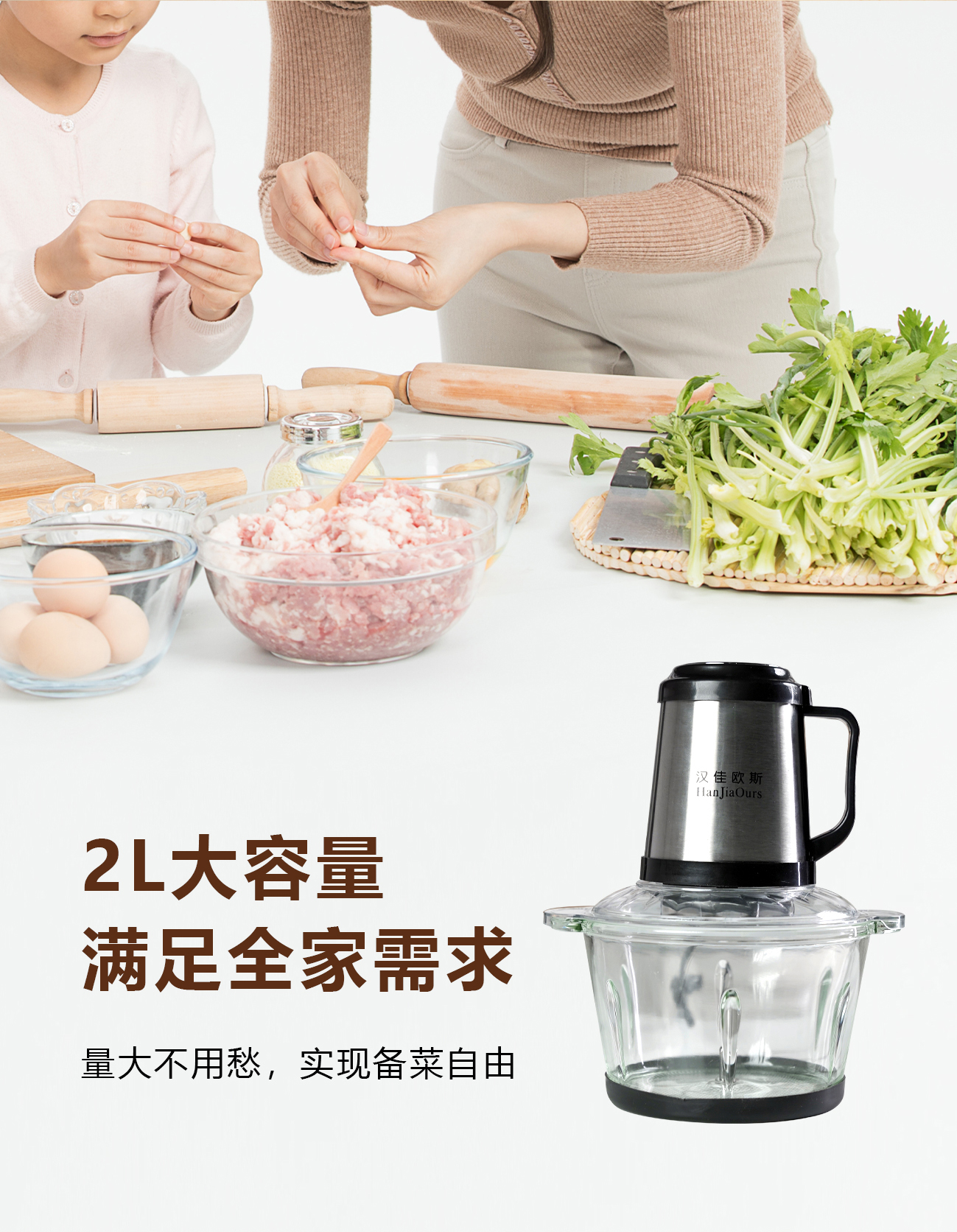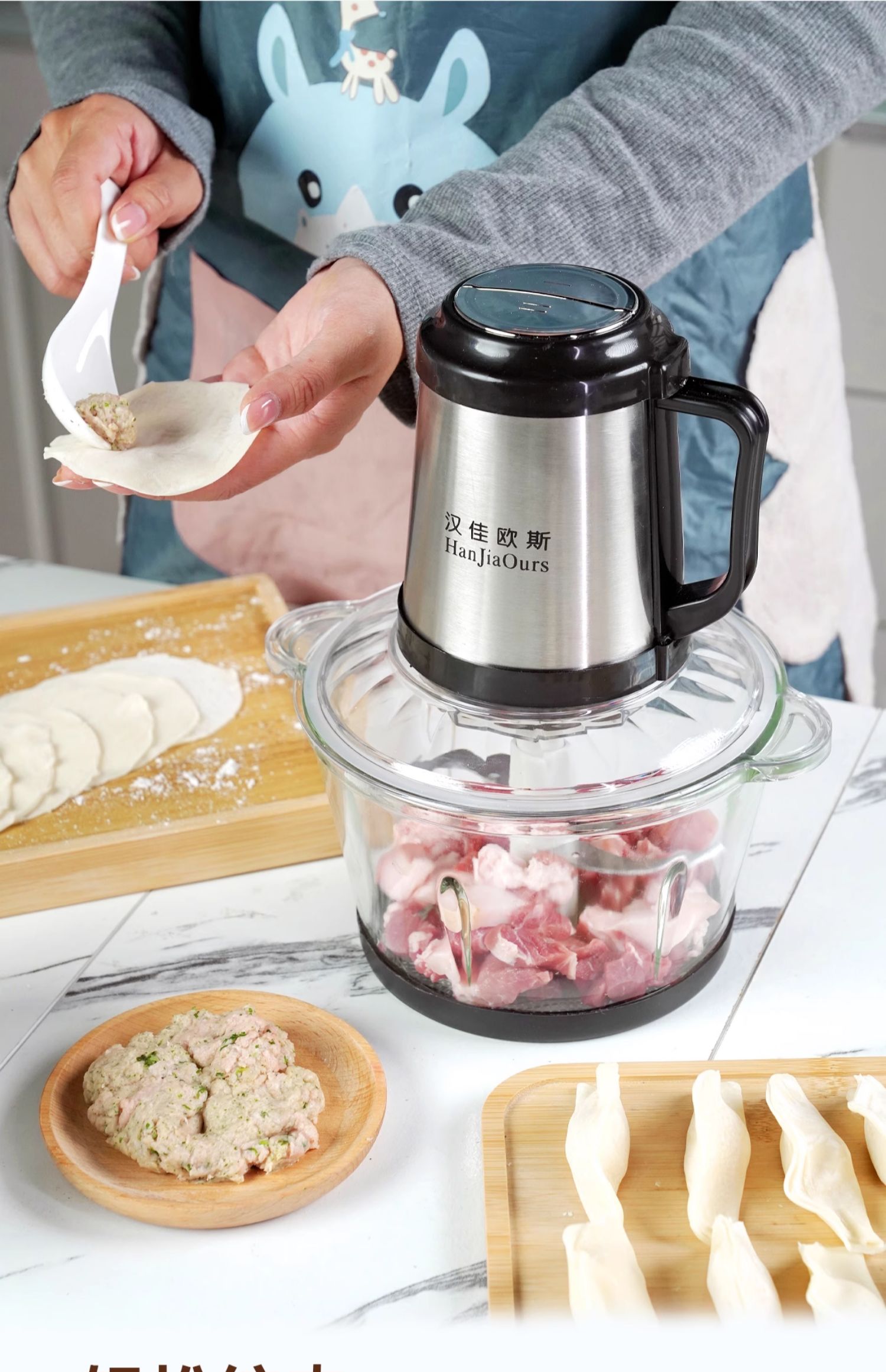 독일 Hangea Ous 고기 분쇄기 가정용 전기 다기능 마늘 고추 소스 만두 필링 믹싱 쿡 머신