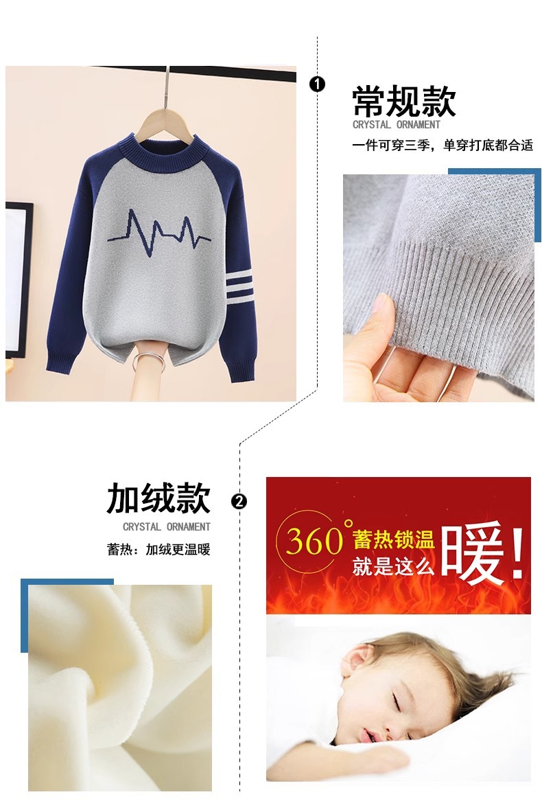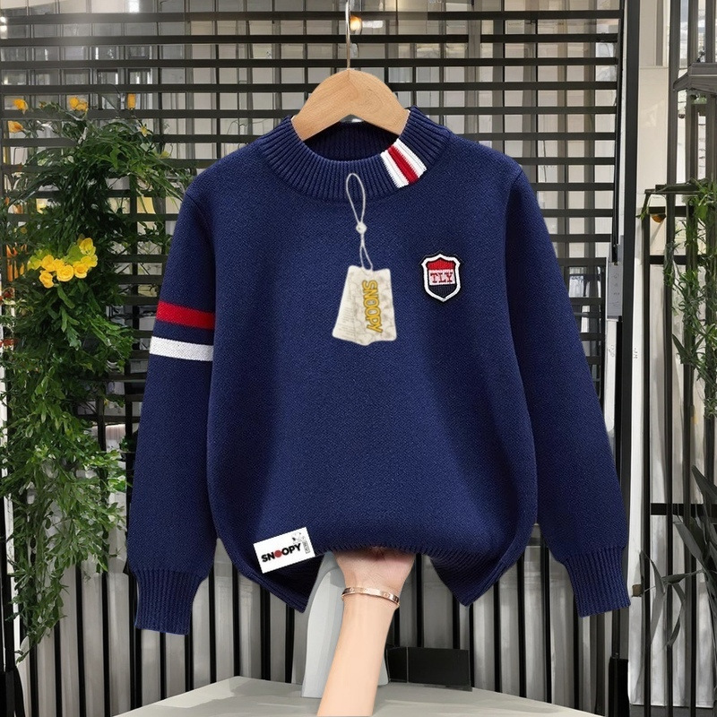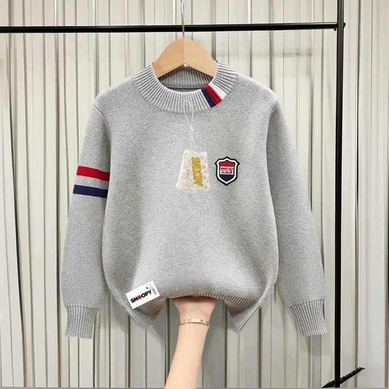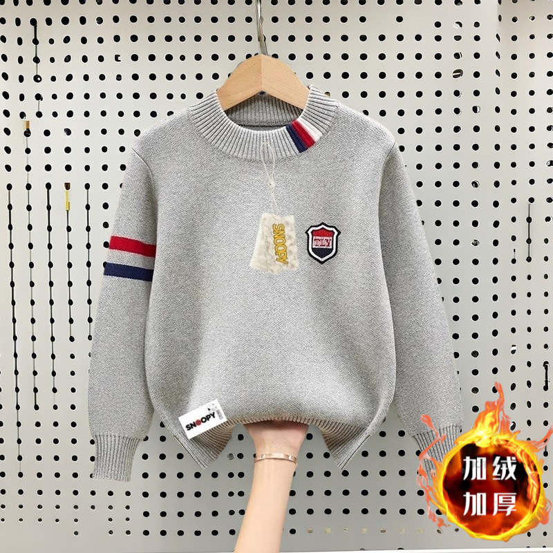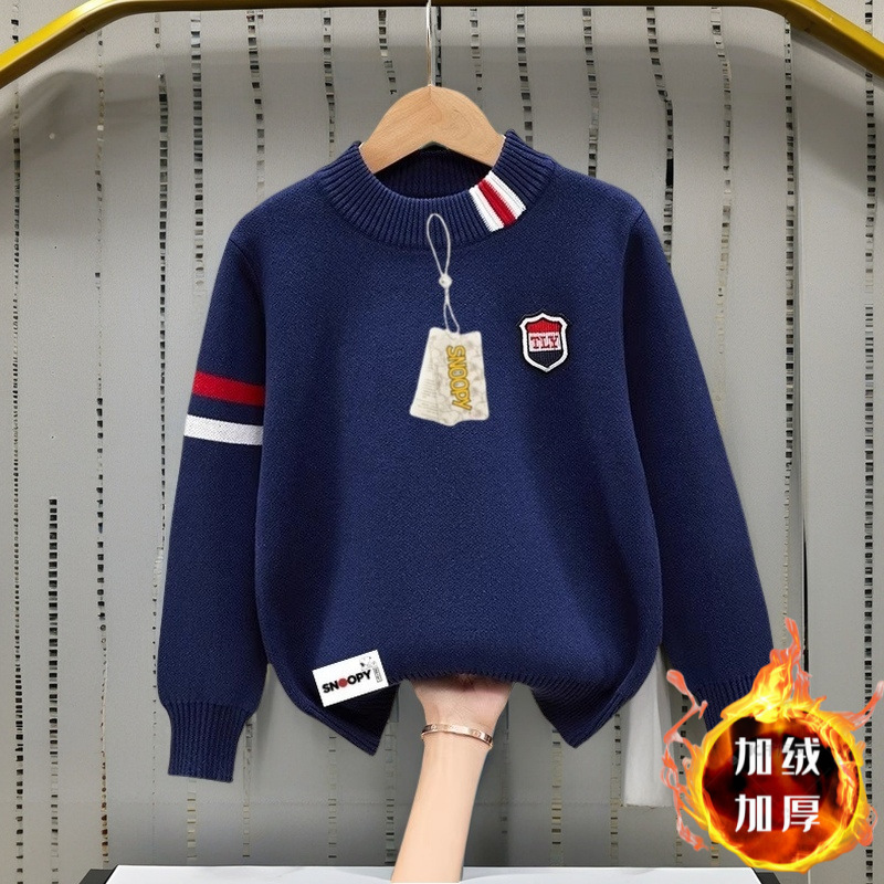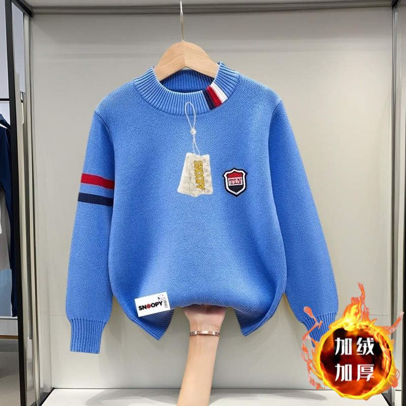 스누피 소년 순면 라운드 넥 스웨터 가을, 겨울 스타일 플러스 벨벳 두꺼운 중대형 아동용 니트 바닥 셔츠 풀오버스토어 가기
