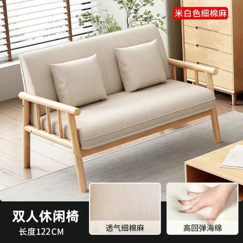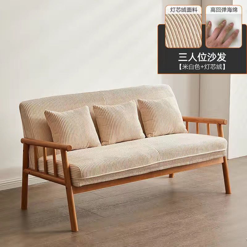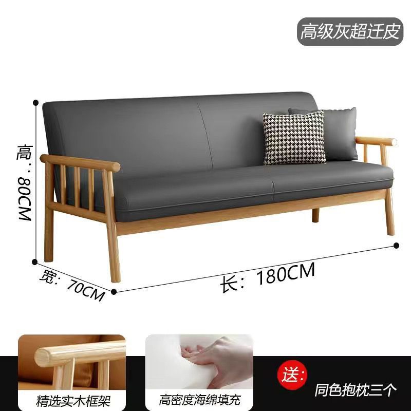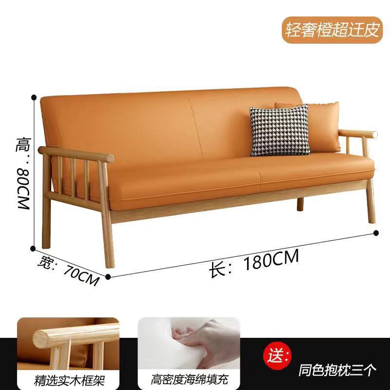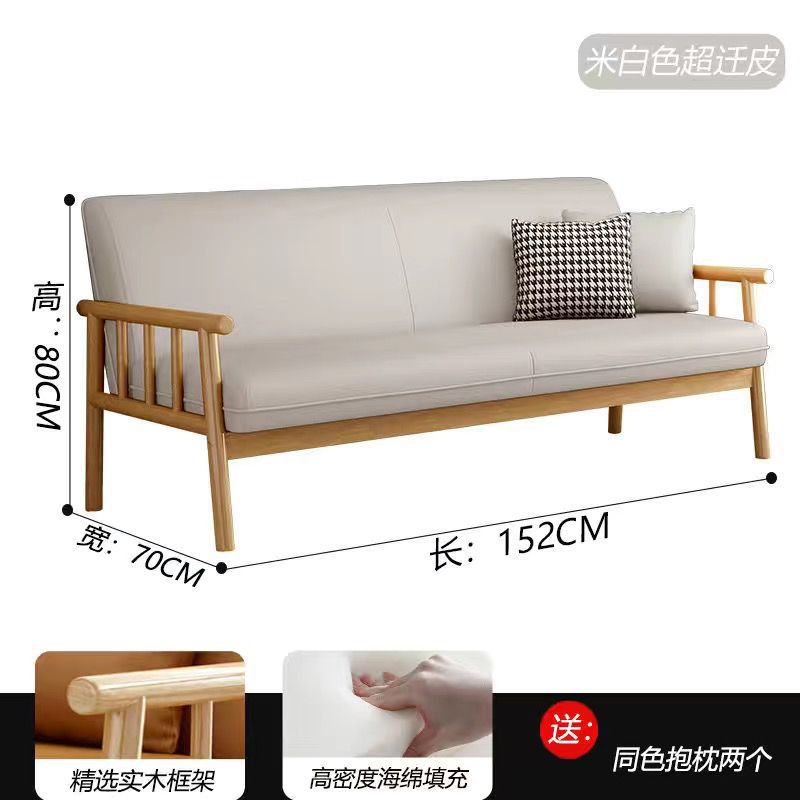 일본 가죽 소파 작은 아파트 거실 풀 솔리드 우드 북유럽 고무 스트레이트 로우 더블 3 인승 소파 간단한 현대스토어 가기