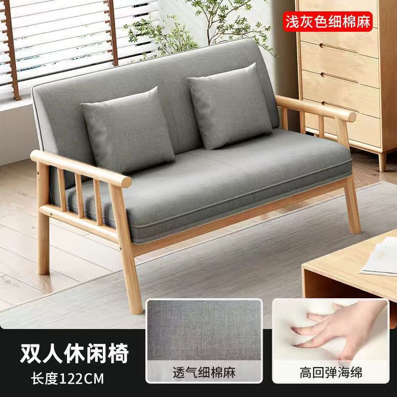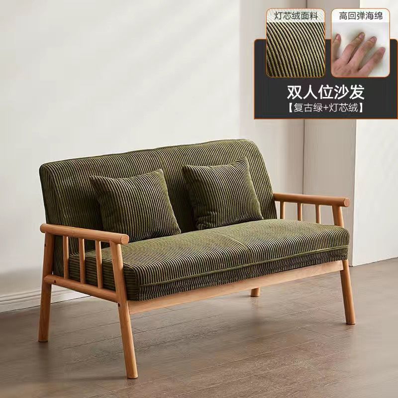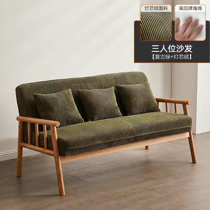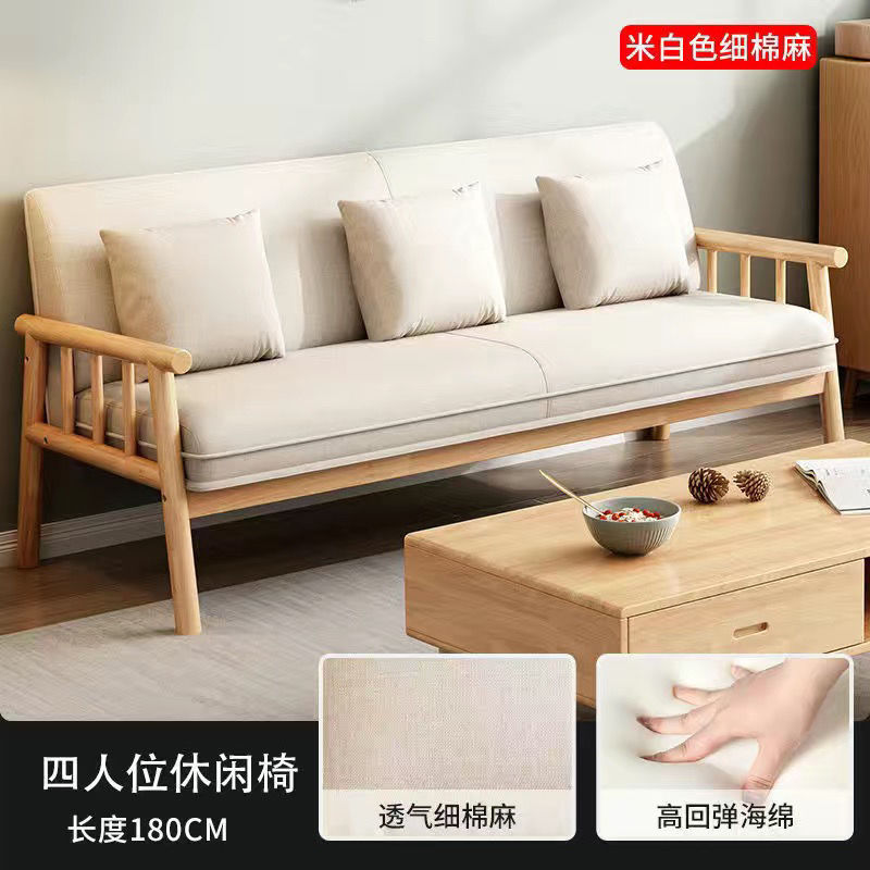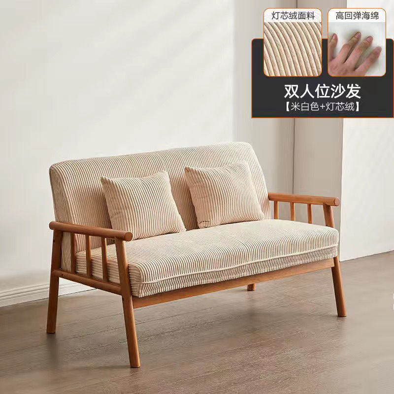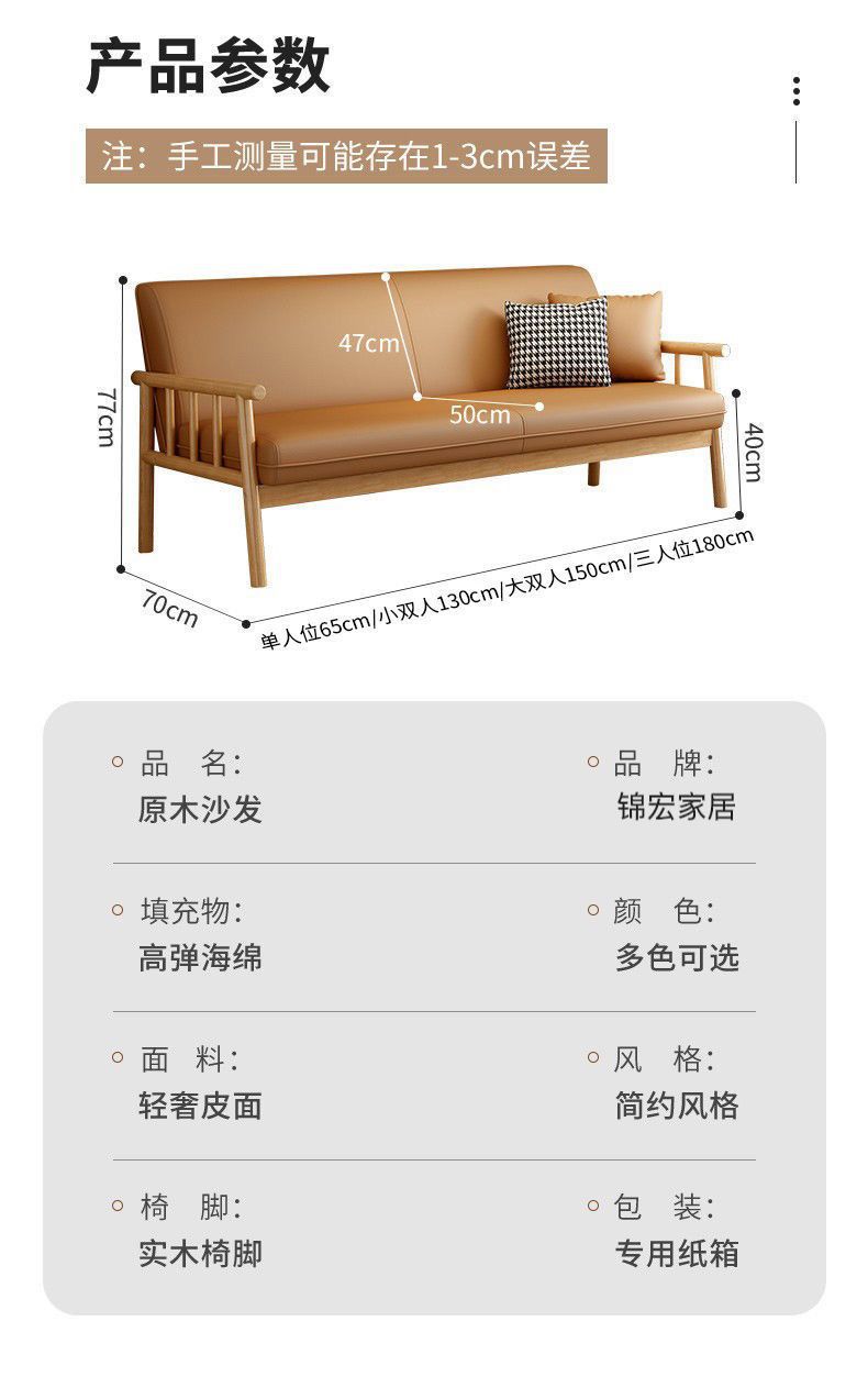 일본 가죽 소파 작은 아파트 거실 풀 솔리드 우드 북유럽 고무 스트레이트 로우 더블 3 인승 소파 간단한 현대스토어 가기
