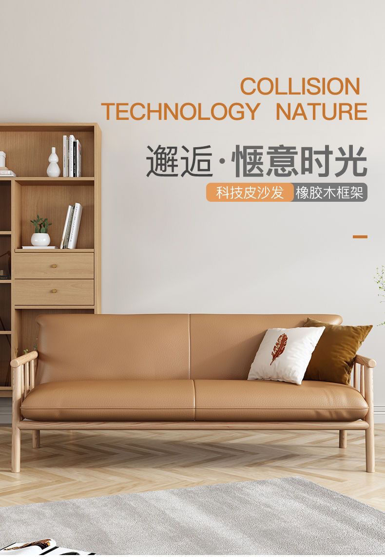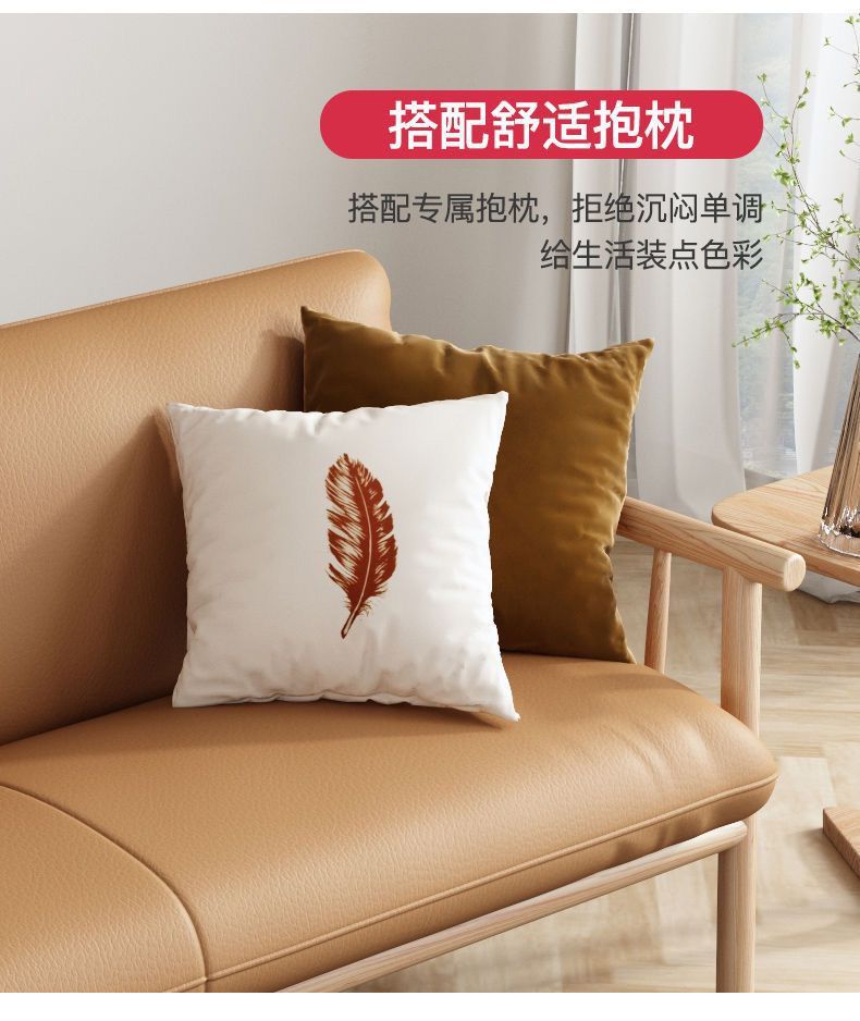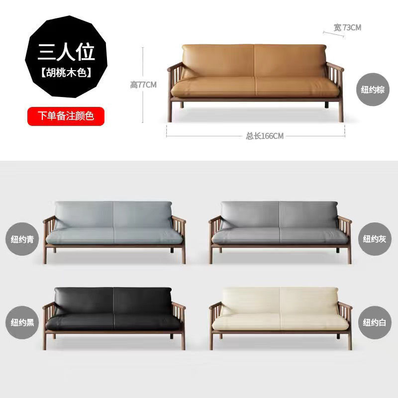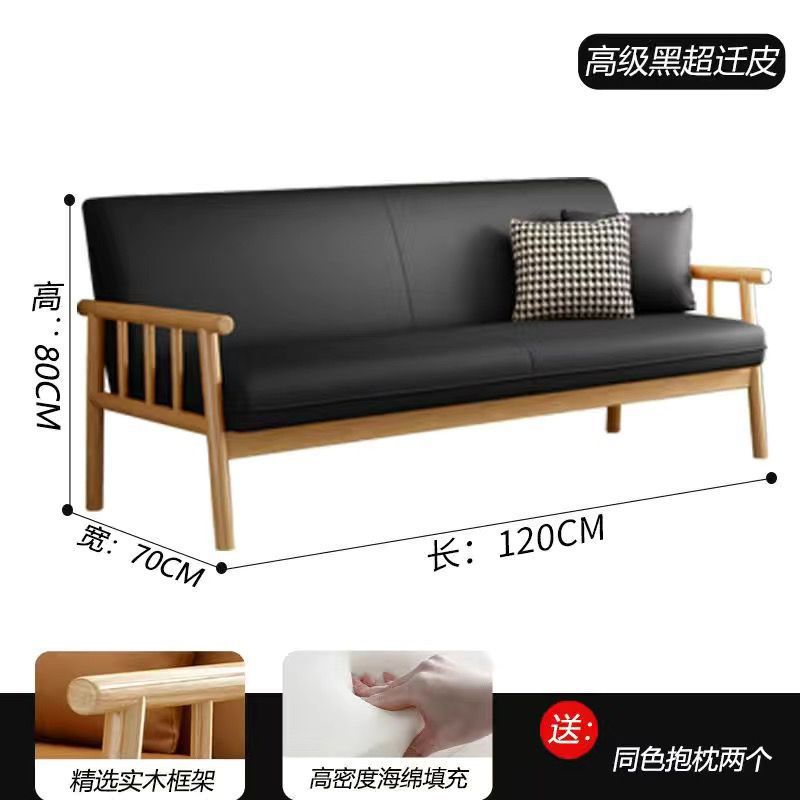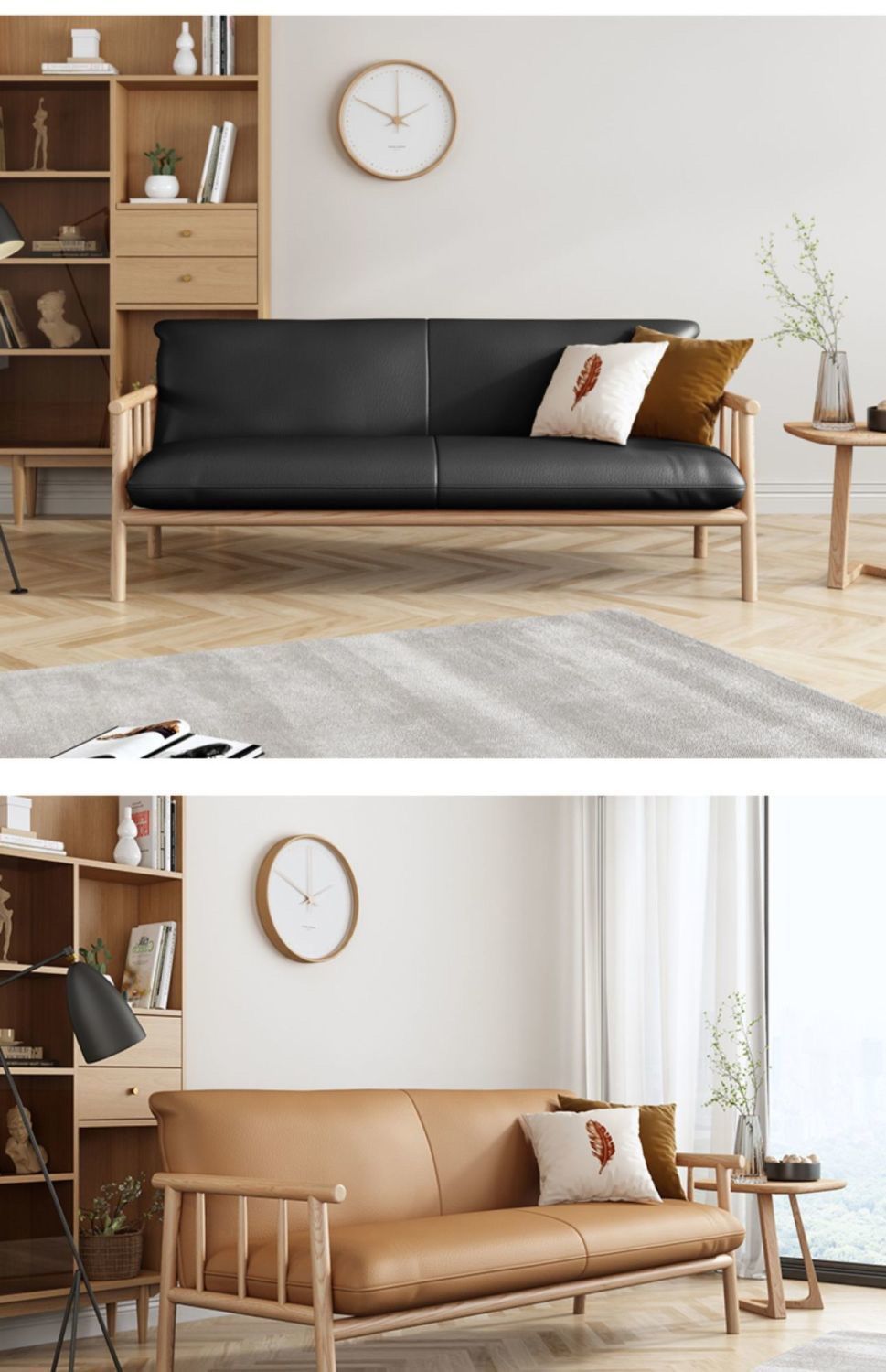 일본 가죽 소파 작은 아파트 거실 풀 솔리드 우드 북유럽 고무 스트레이트 로우 더블 3 인승 소파 간단한 현대