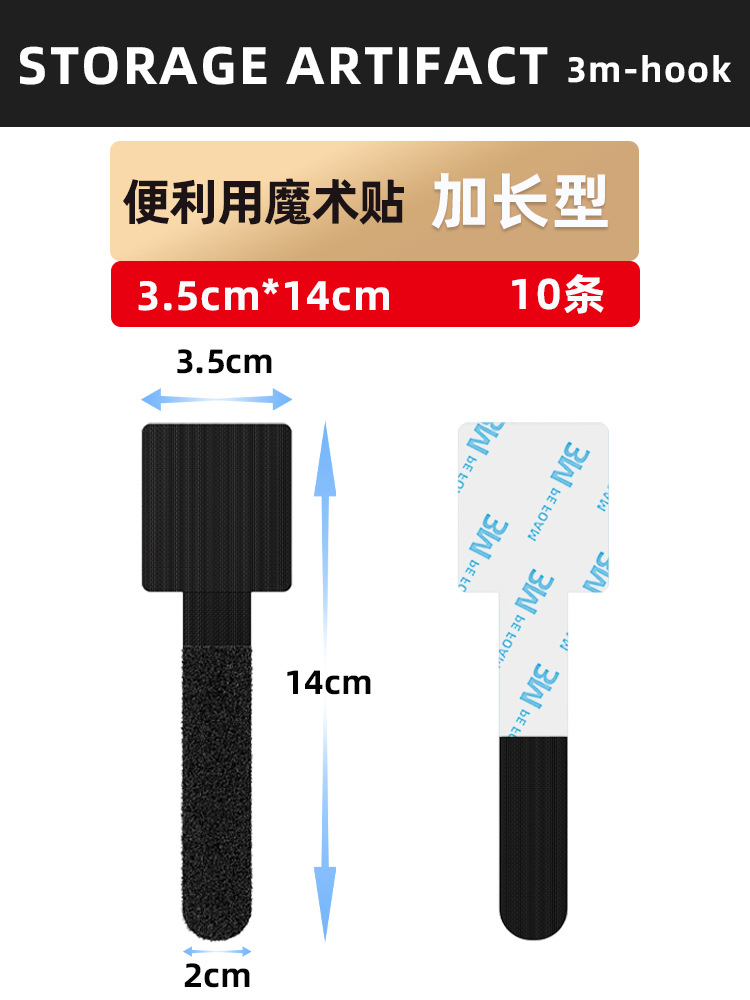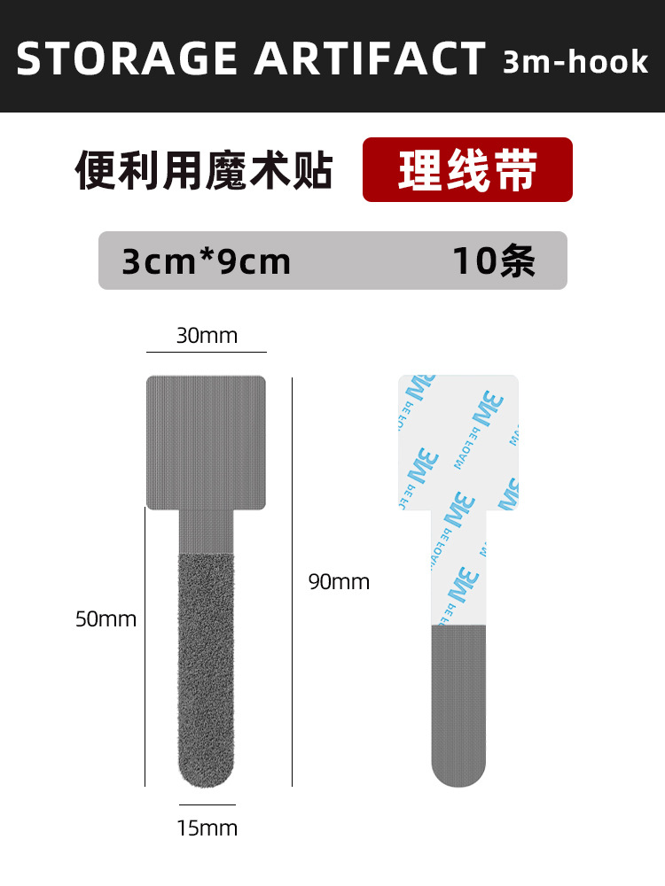 • [확장 버전] 검정색 10개 - 3M 접착 벨크로 타이