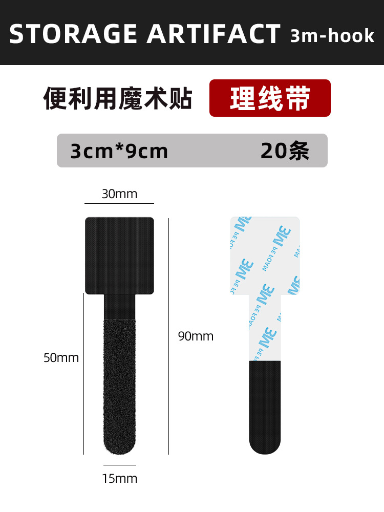 • [확장 버전] 검정색 20개 - 3M 접착 벨크로 타이