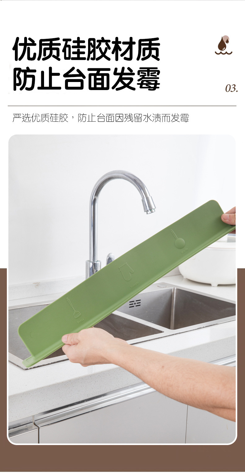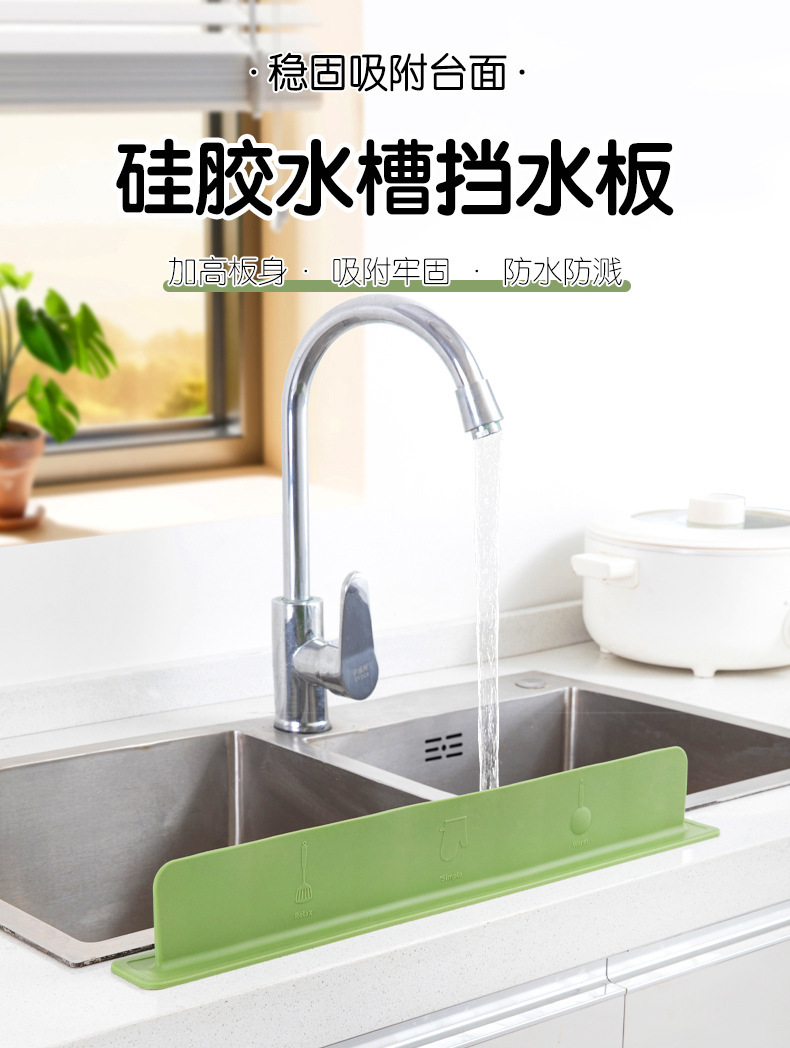 • 商品名称:厨房台面一体式加高挡油挡水板 硅胶水槽水池防溅挡水板--绿色