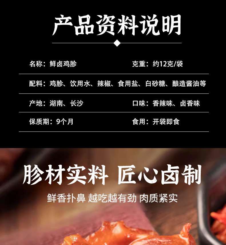 매콤한 양념 닭장비 개봉 후 바로 먹을 수 있는 개별 포장 조리된 간식 스낵 야식 배고픔 해소 간식