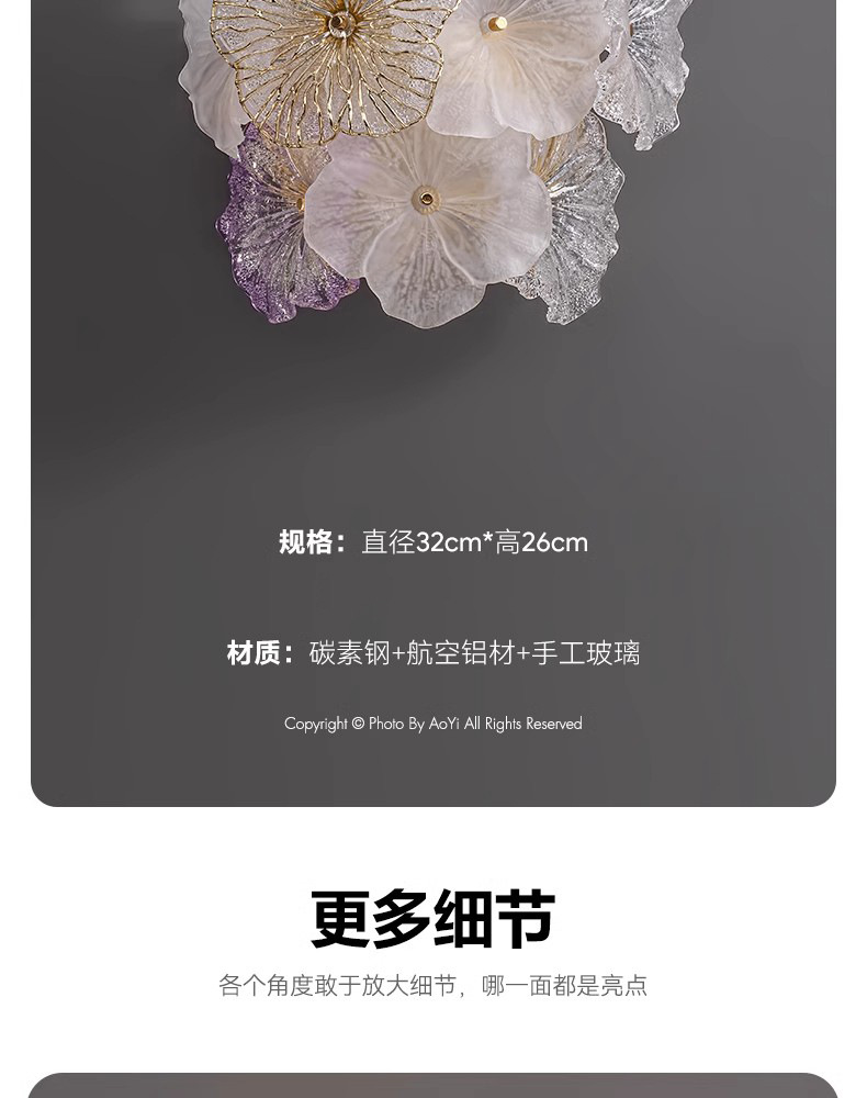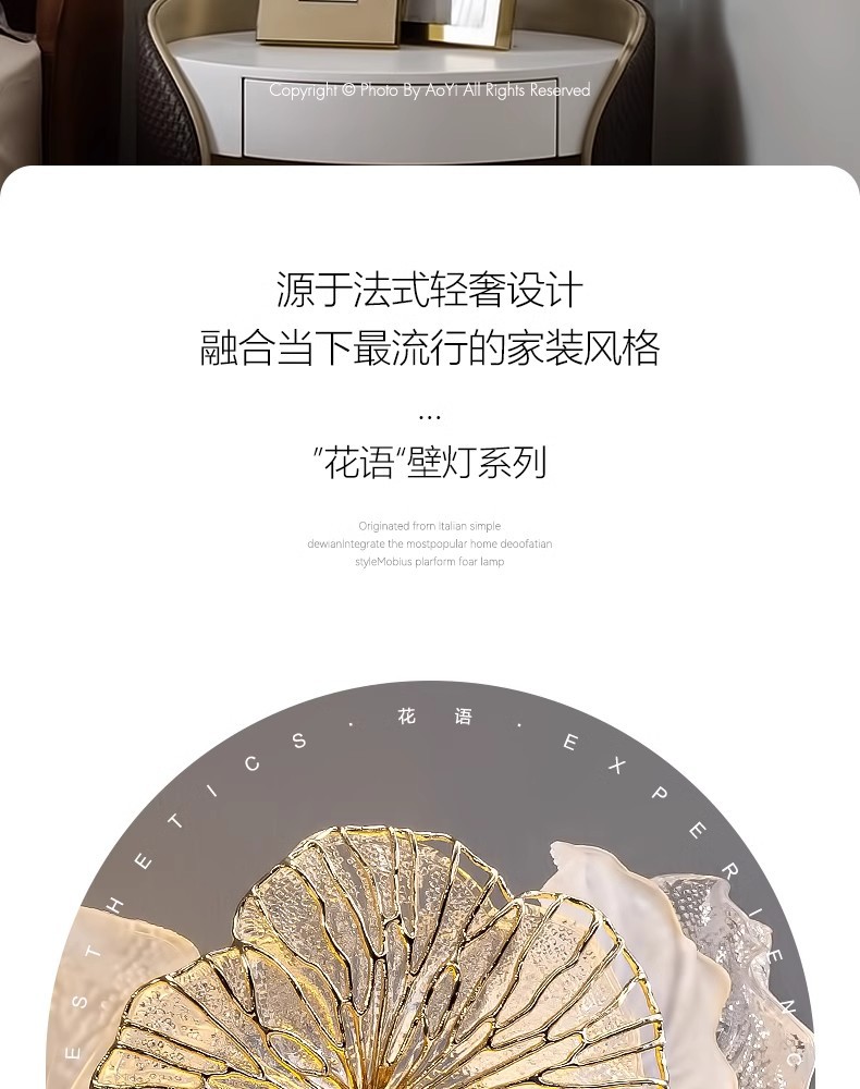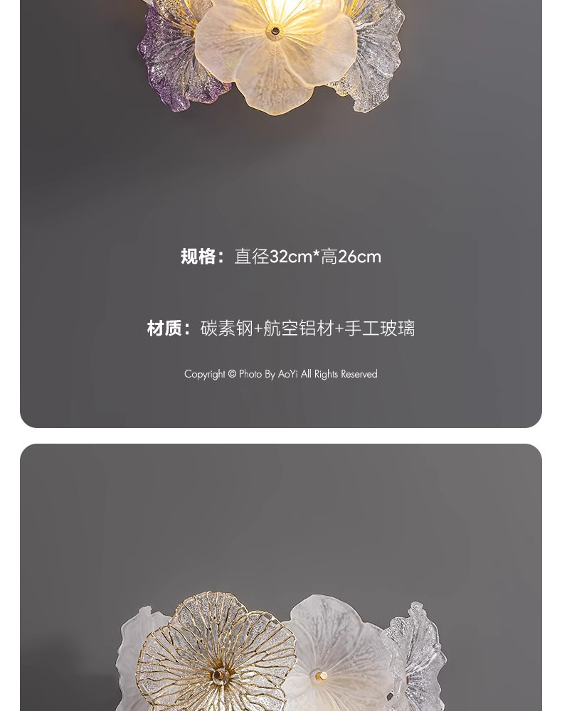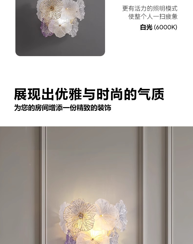 프랑스 스타일 가벼운 고급 침실 벽 램프 현대 간단한 꽃 마스터 침실 TV 배경 벽 입구 벽 교수형 유리 침대 옆 램프스토어 가기