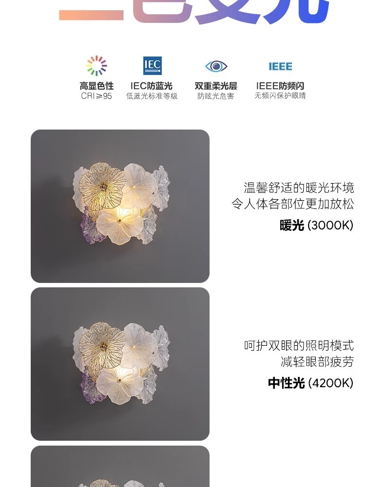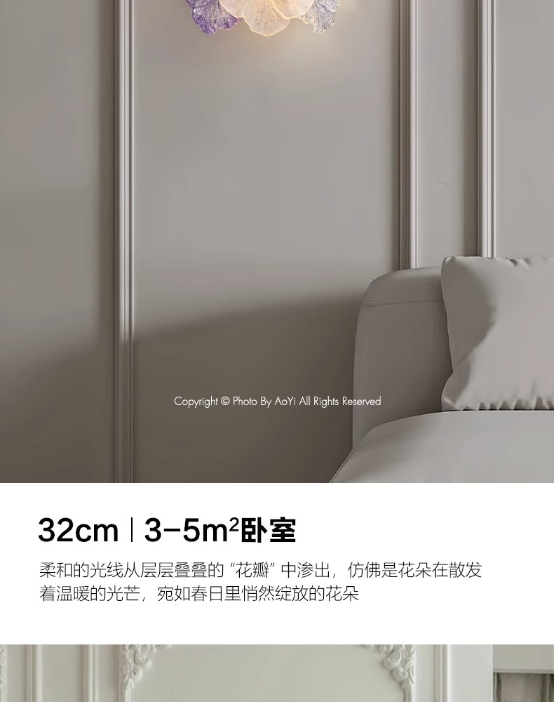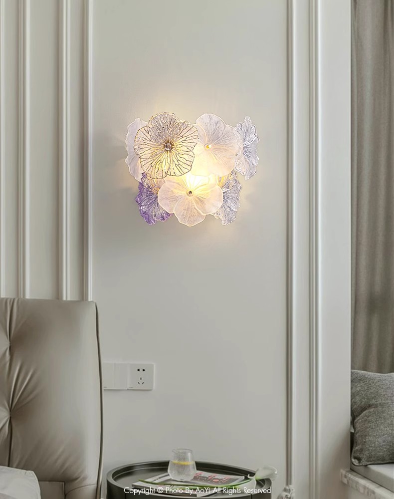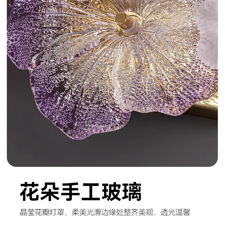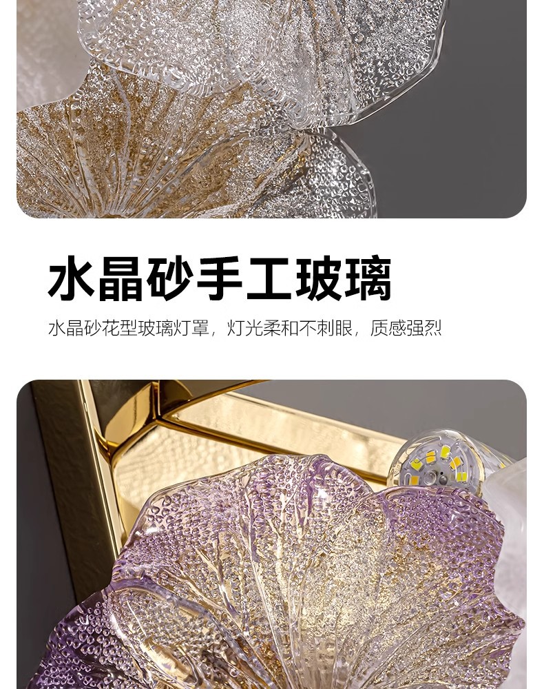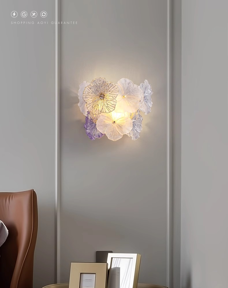 프랑스 스타일 가벼운 고급 침실 벽 램프 현대 간단한 꽃 마스터 침실 TV 배경 벽 입구 벽 교수형 유리 침대 옆 램프