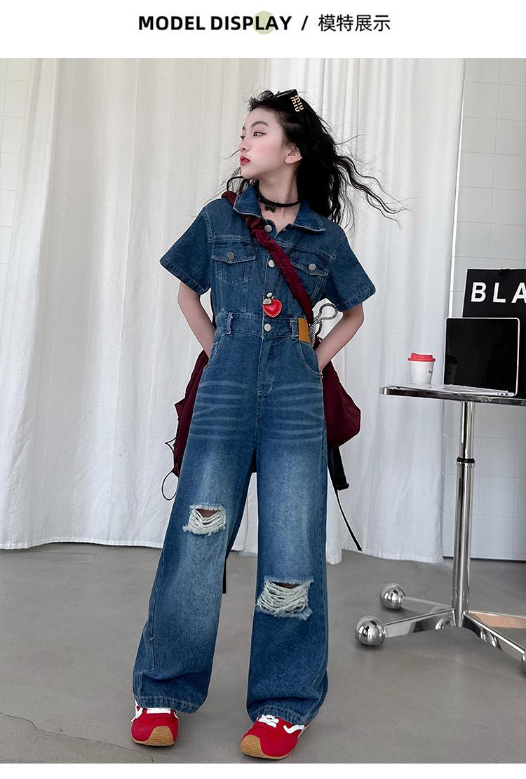 소녀 청바지 여름 2025 새로운 어린이 세련된 패션 와이드 레그 점프 수트 큰 키즈 소녀 바지 여름 착용스토어 가기
