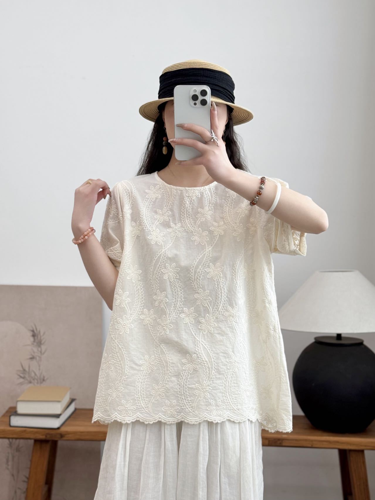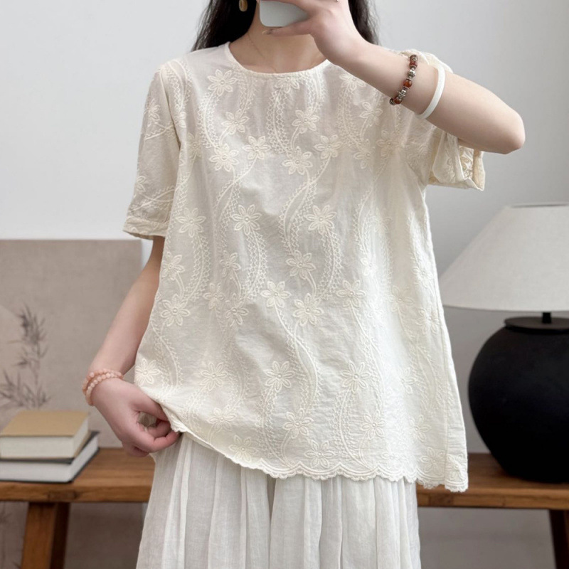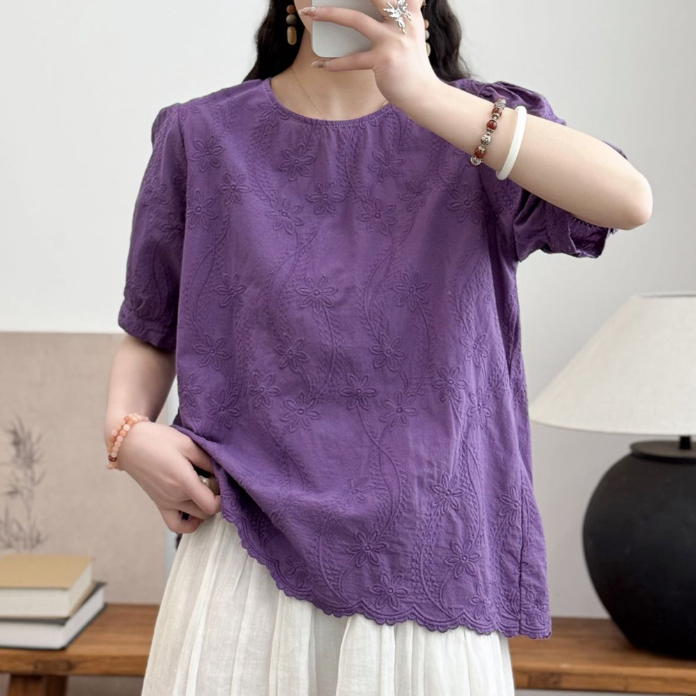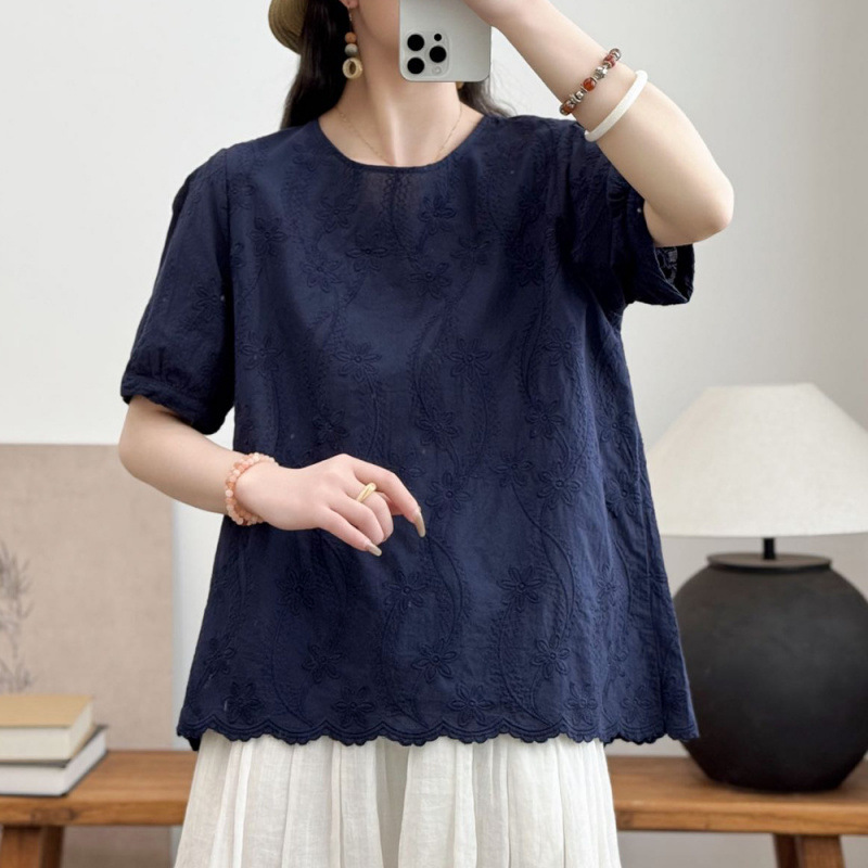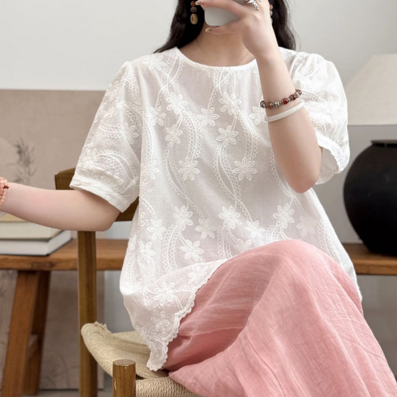 여성 느슨한 반팔 티셔츠 패션 세련된 플러스 사이즈 레이스 새로운 여름 플러스 사이즈 연령 감소 탑 어머니 우아한스토어 가기