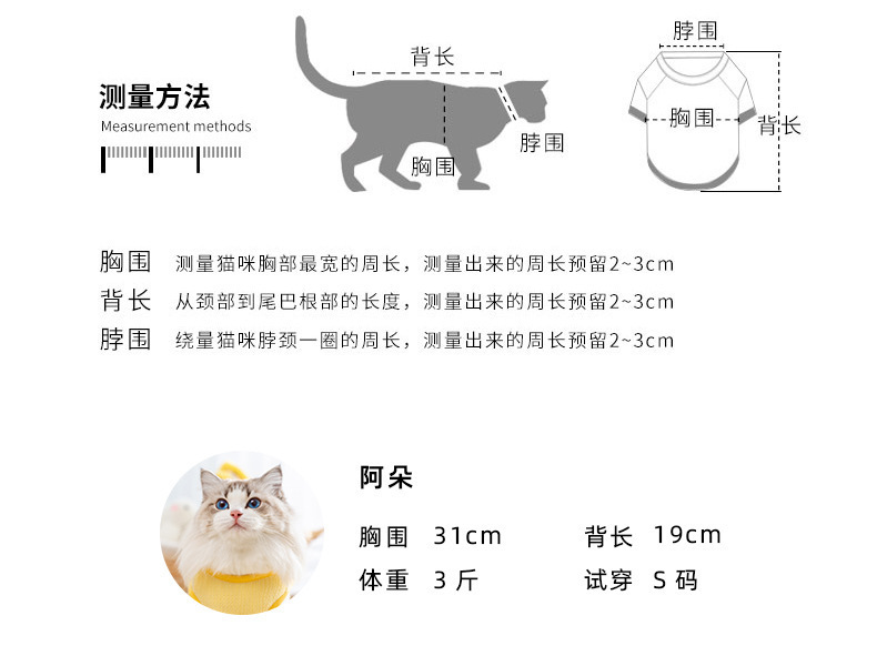 고양이 옷 3 차원 닭 견인 조끼 봄과 여름 슬링 블루 고양이 머리없는 고양이 통기성 애완 동물 옷