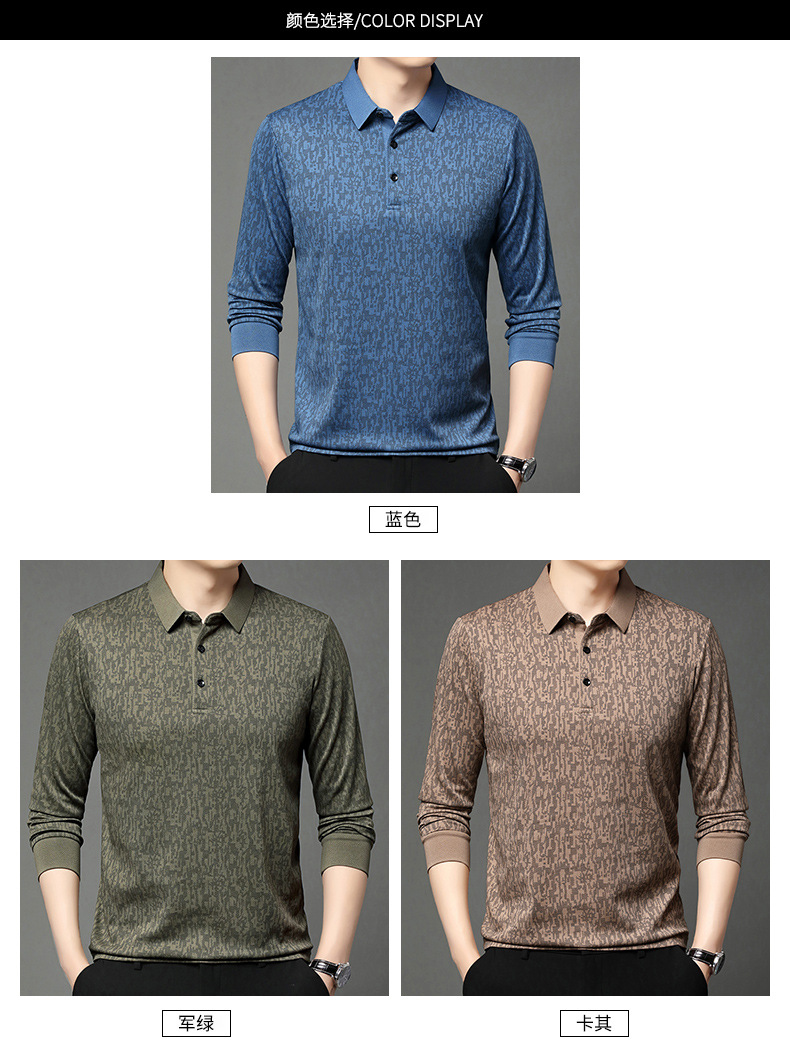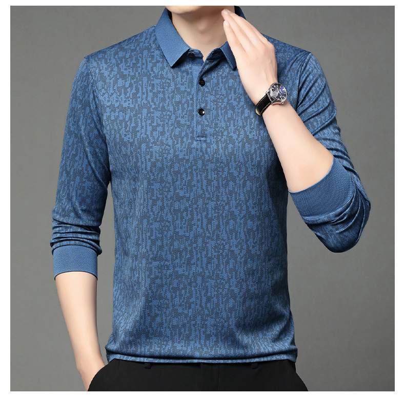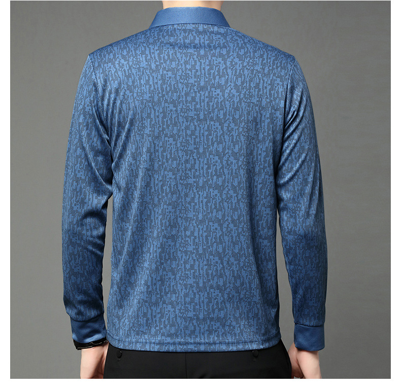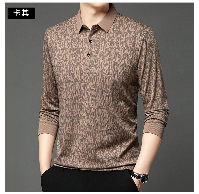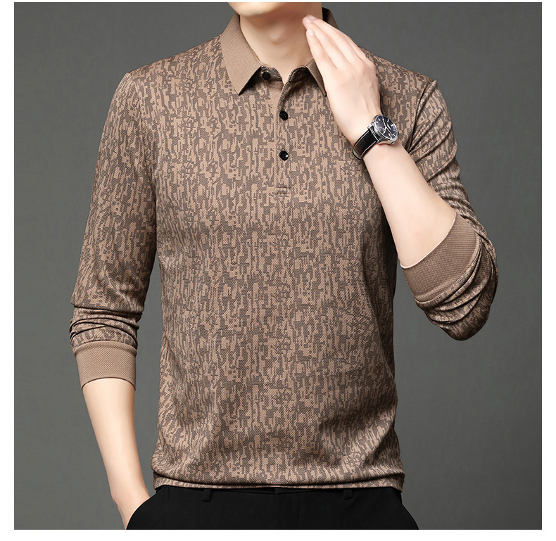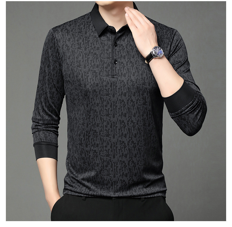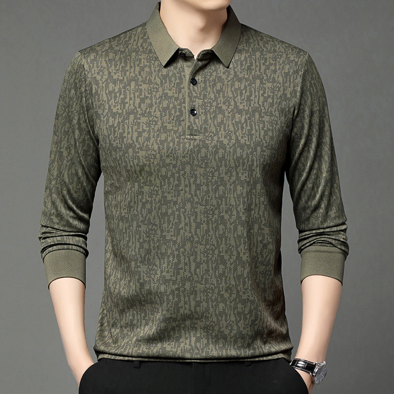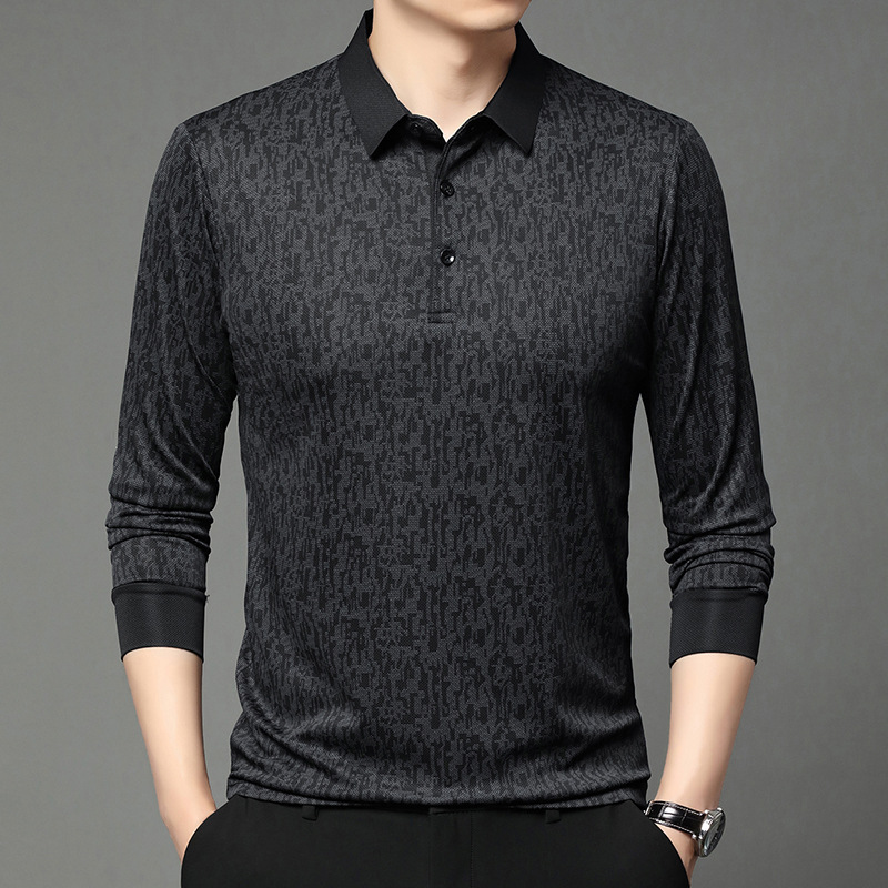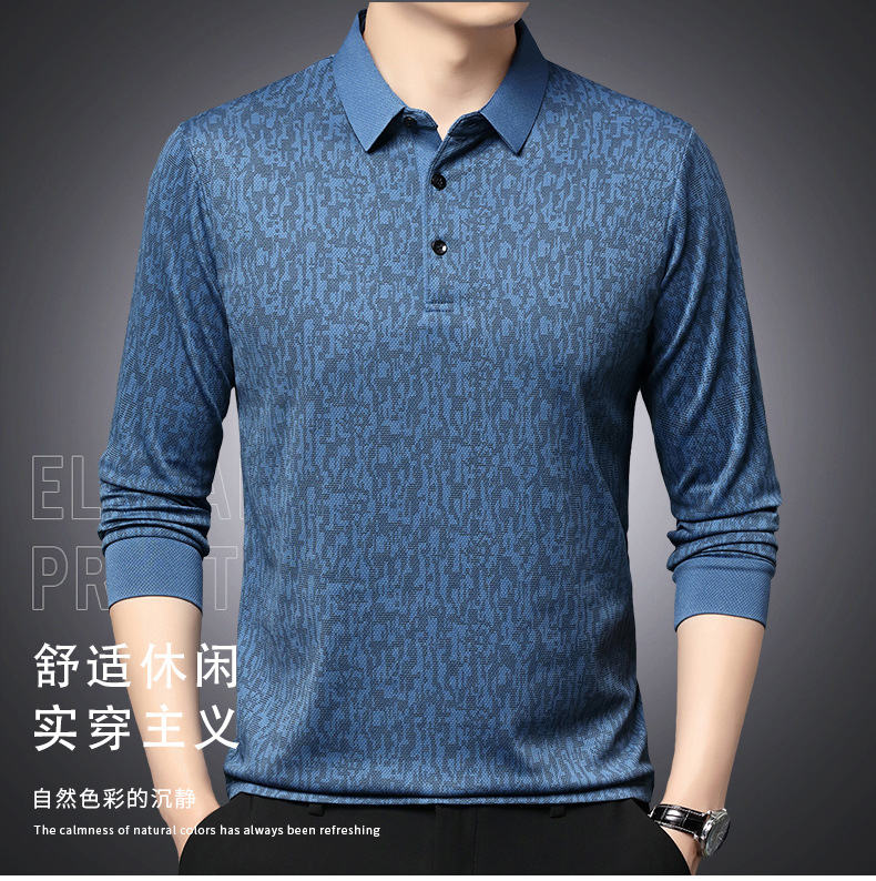 봄 신작 긴팔 남성 폴로 셔츠 비즈니스 캐주얼 다목적 프린트 라펠 중년 남성 티셔츠 아빠 착용