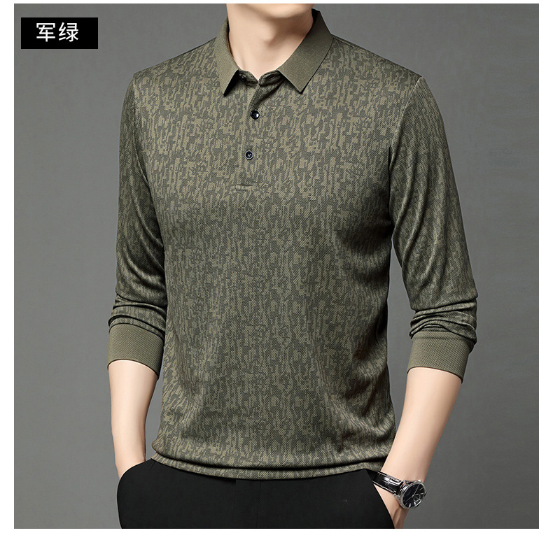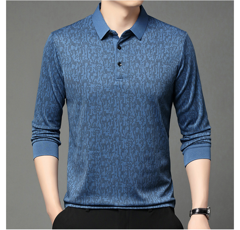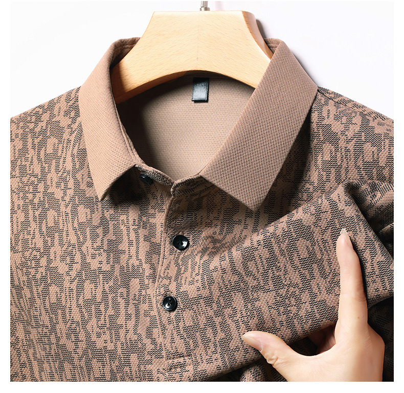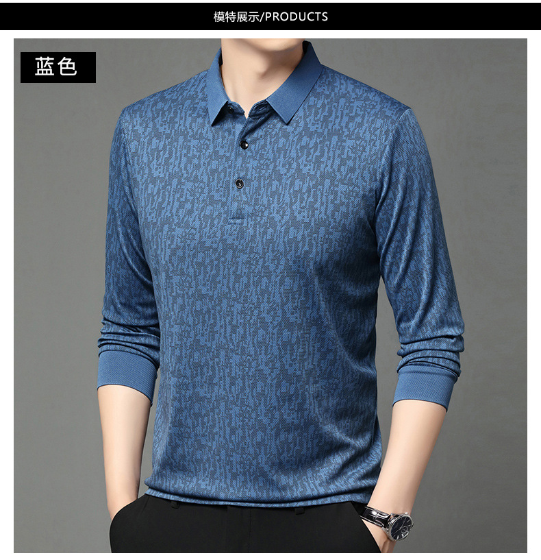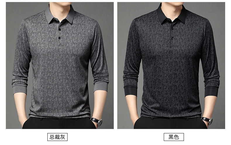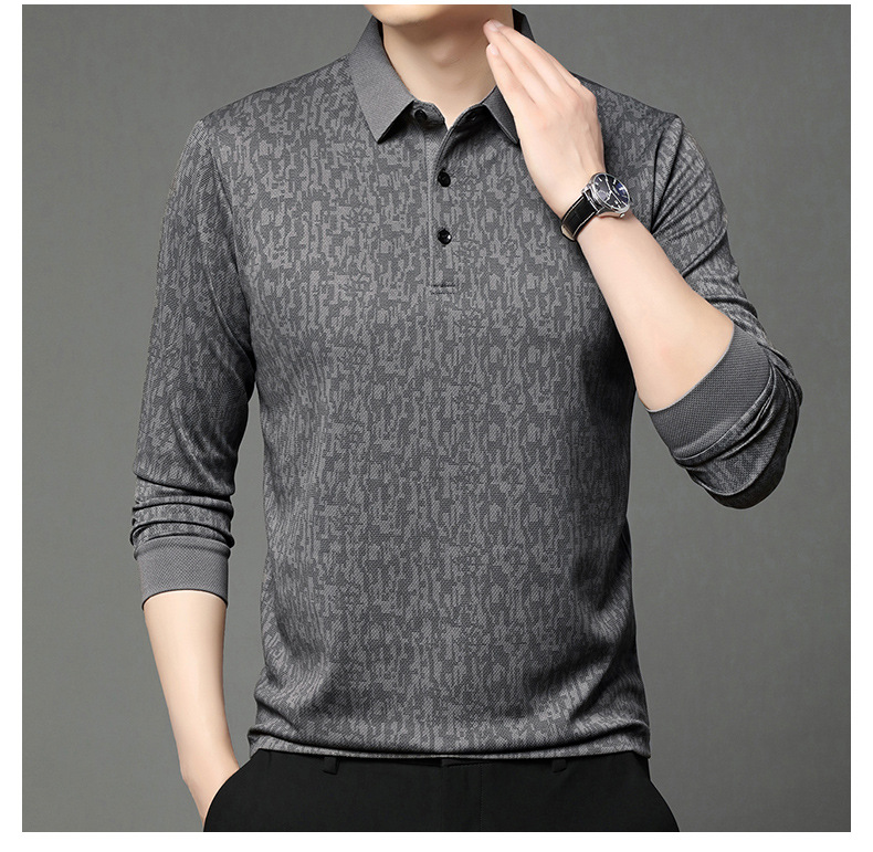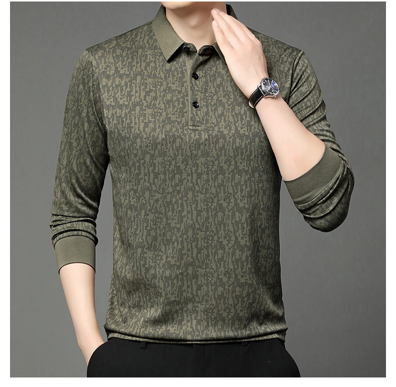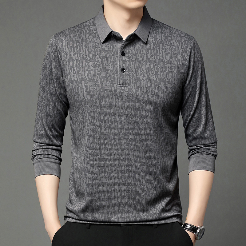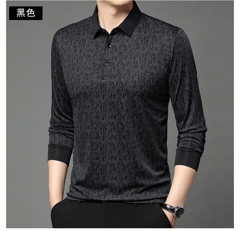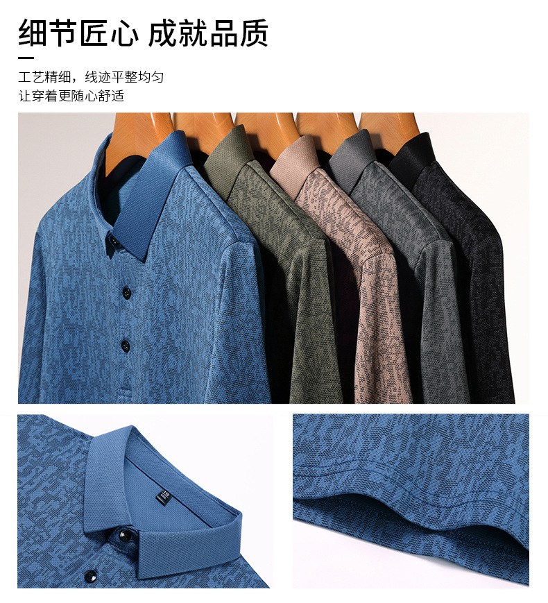 봄 신작 긴팔 남성 폴로 셔츠 비즈니스 캐주얼 다목적 프린트 라펠 중년 남성 티셔츠 아빠 착용