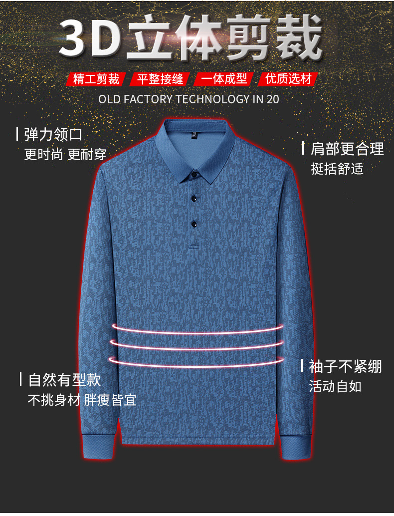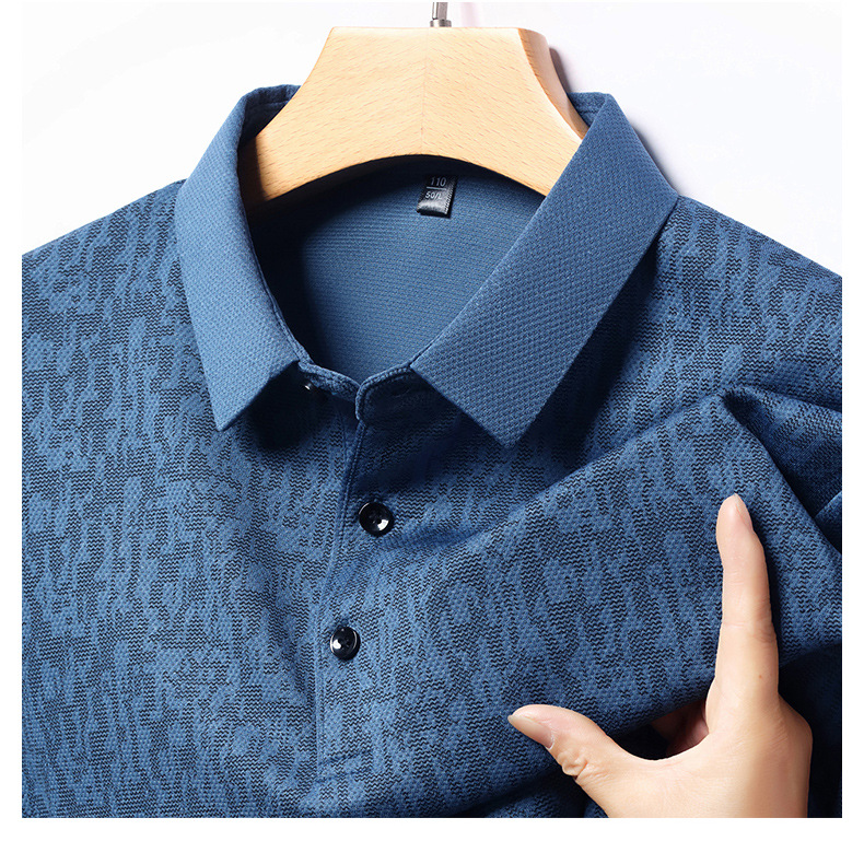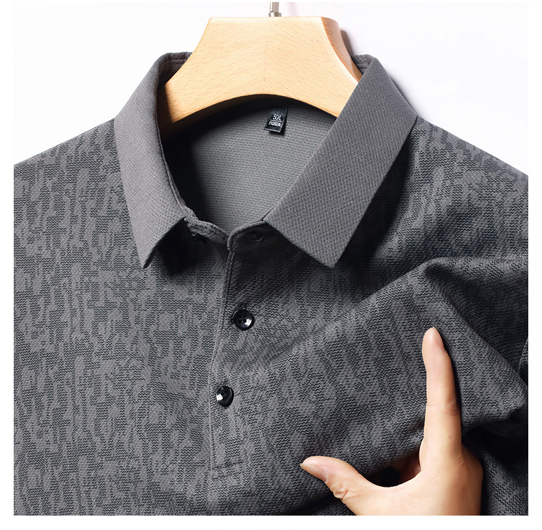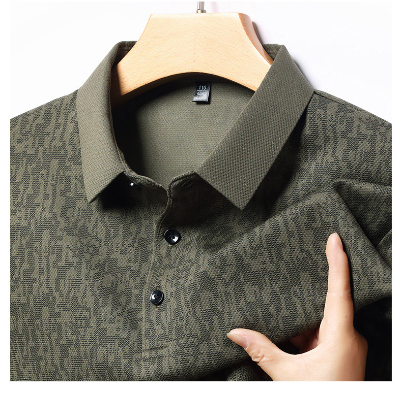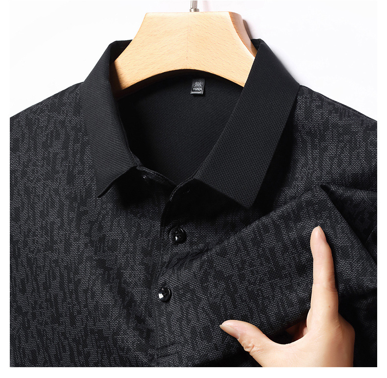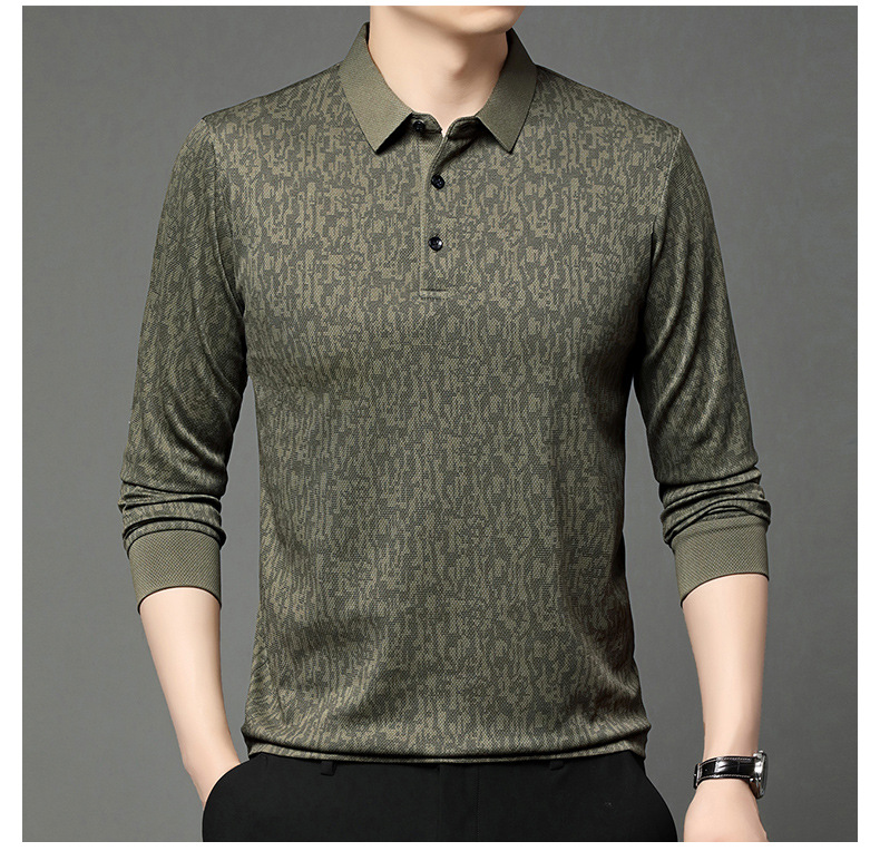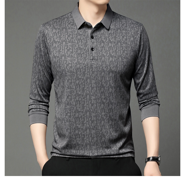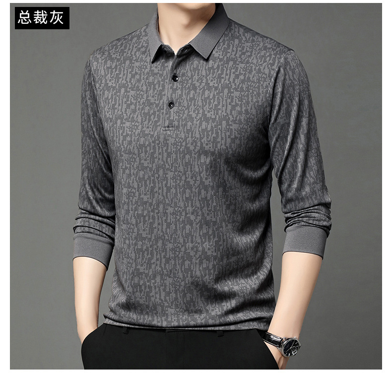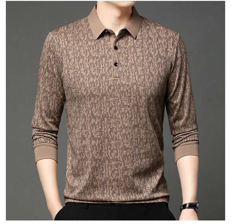 봄 신작 긴팔 남성 폴로 셔츠 비즈니스 캐주얼 다목적 프린트 라펠 중년 남성 티셔츠 아빠 착용