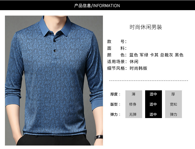 봄 신작 긴팔 남성 폴로 셔츠 비즈니스 캐주얼 다목적 프린트 라펠 중년 남성 티셔츠 아빠 착용스토어 가기