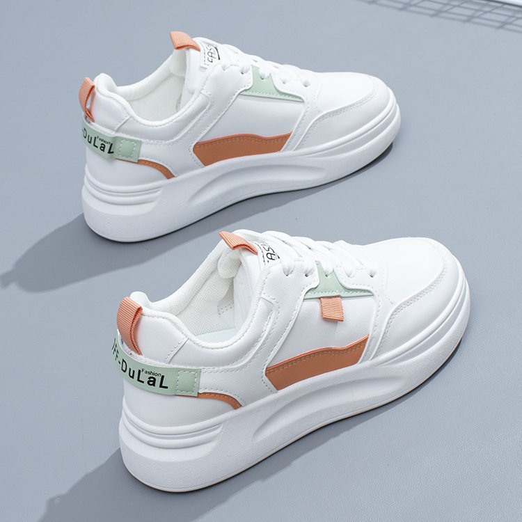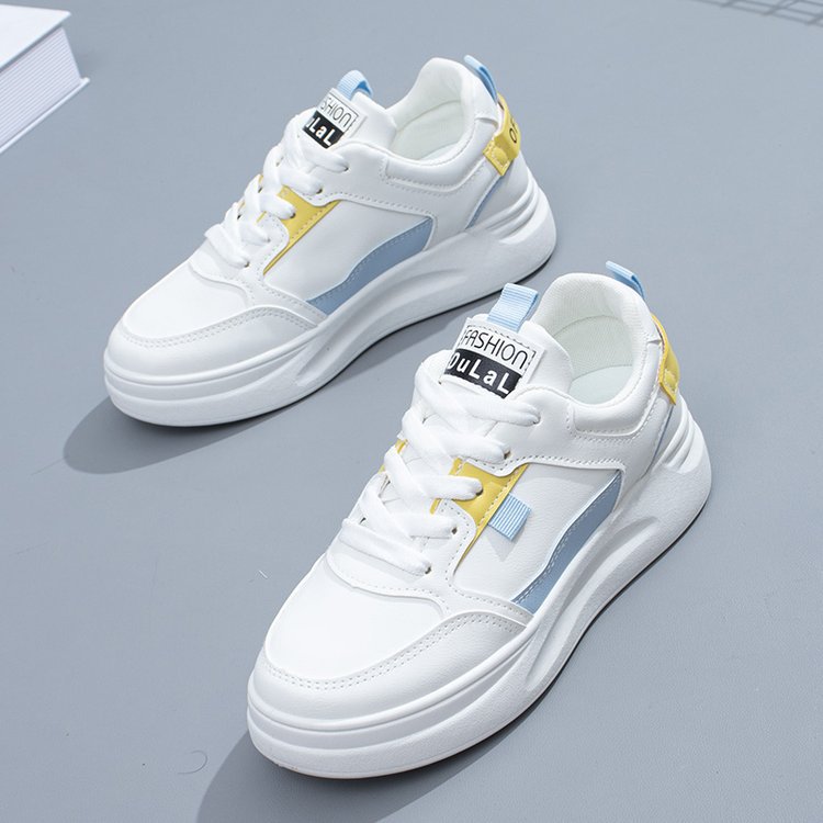 Ins 한국어 버전 여성용 두꺼운 밑창 흰색 신발 2023 봄 새로운 통기성 학생 운동화 여성 스트리트 스타일 레이스 업 운동화스토어 가기