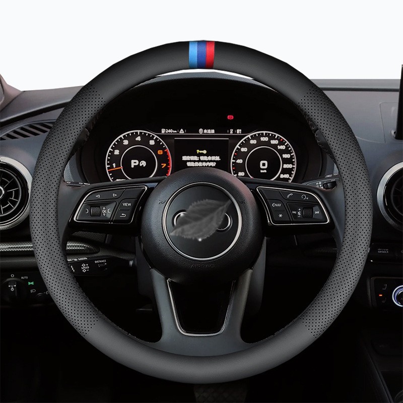 사계절용 자동차 핸들 커버, 비가죽 핸들 커버, 미끄럼 방지, 땀 흡수성 탄소 섬유 가죽 보호 커버, 클래식 스타일스토어 가기
