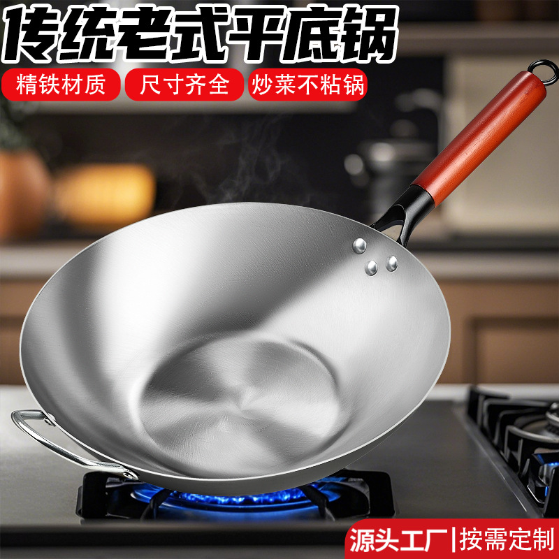 구식 평평한 철 냄비 요리 프라이팬 가정용 붙지 않는 냄비 요리사 특수 인덕션 밥솥 가스 스토브 철 냄비 공장