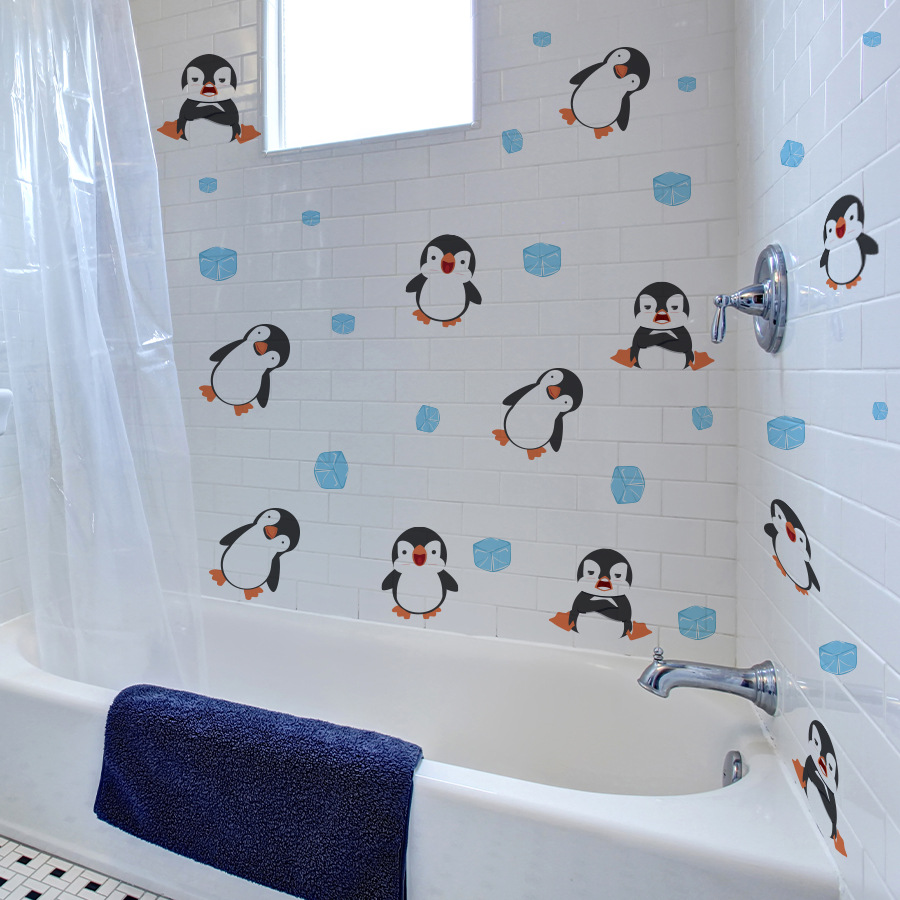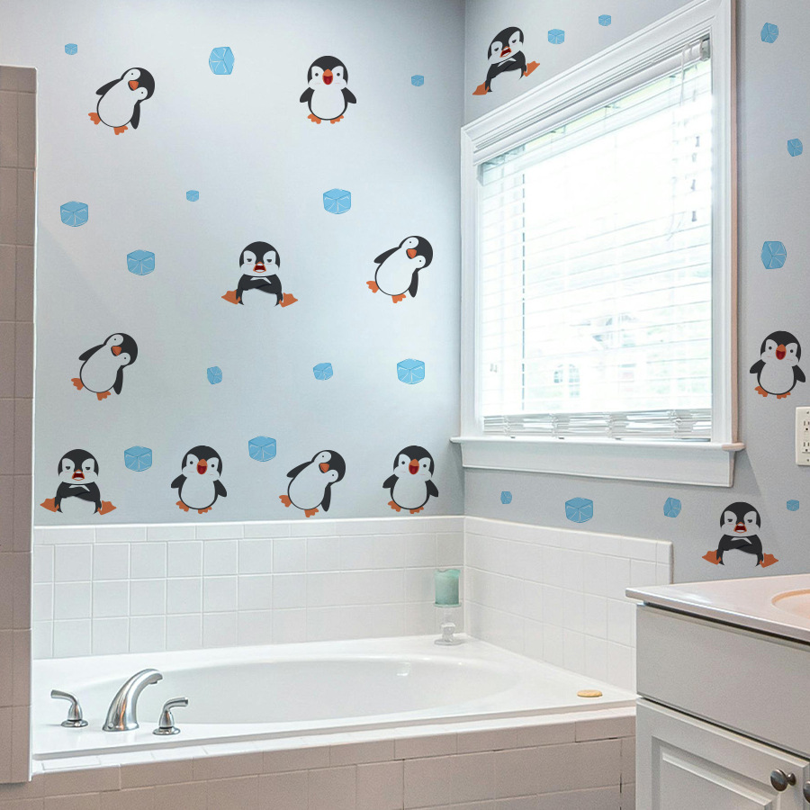 BR3694C 귀여운 작은 펭귄 만화 자기 접착 애니메이션 벽 스티커 침실 연구 욕실 가방 장식 스티커스토어 가기