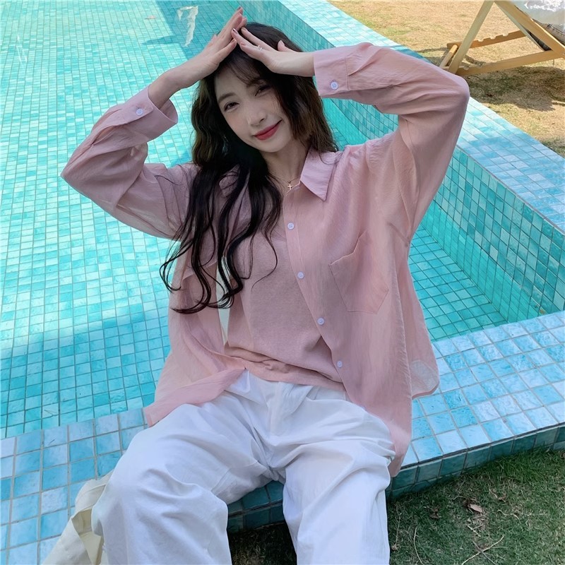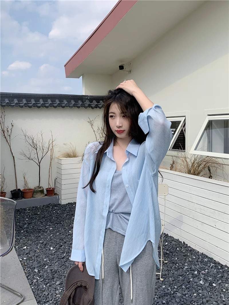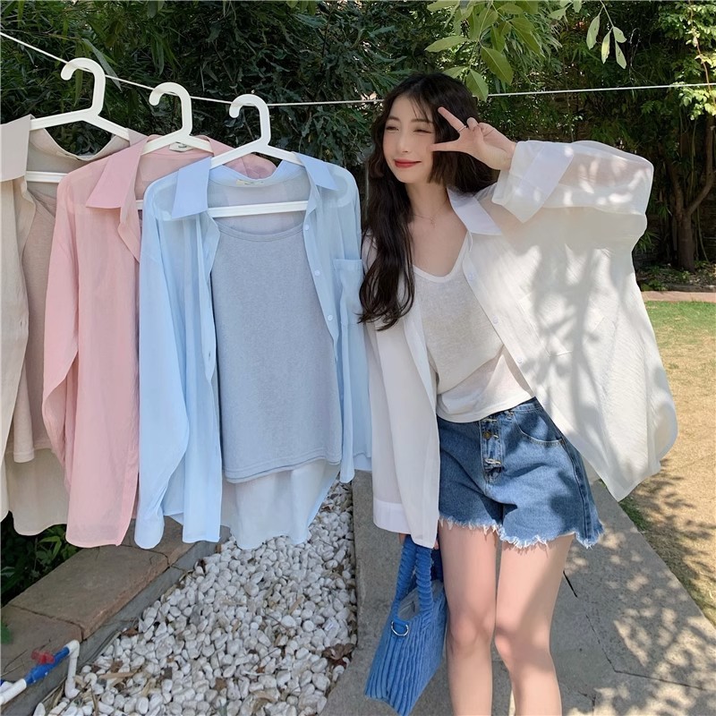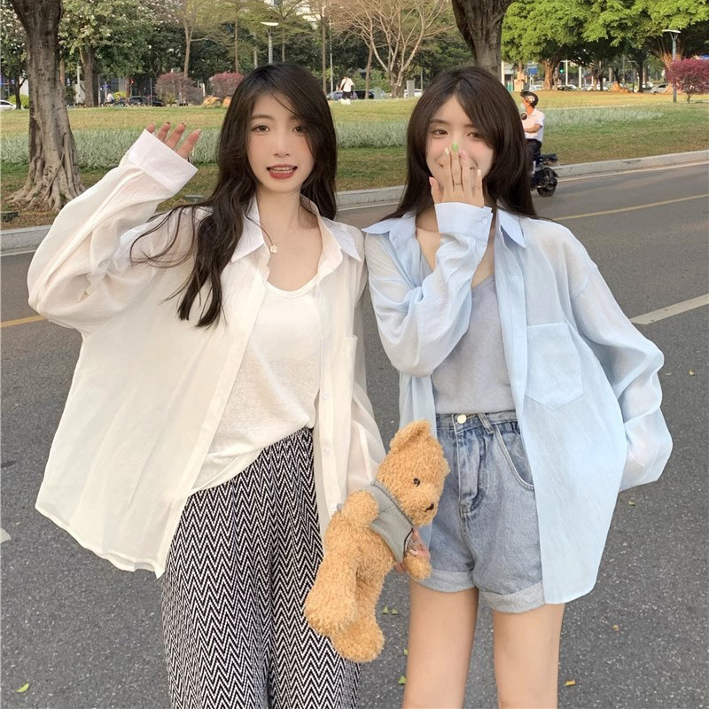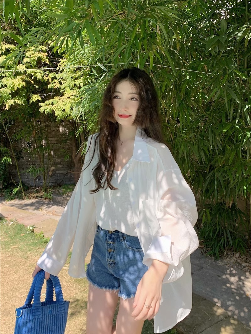 선스크린 탑 여성의 여름 외부 카디건 느슨한 얇은 재킷 여성 셔츠 디자인 틈새 화이트 셔츠스토어 가기