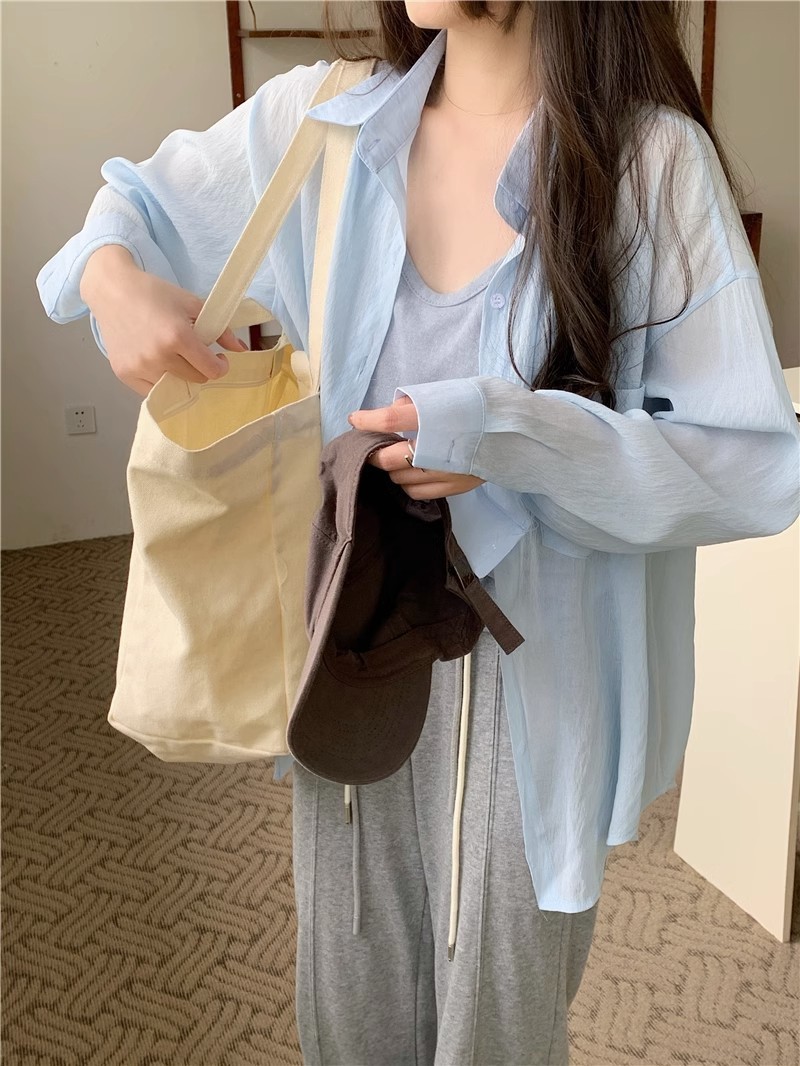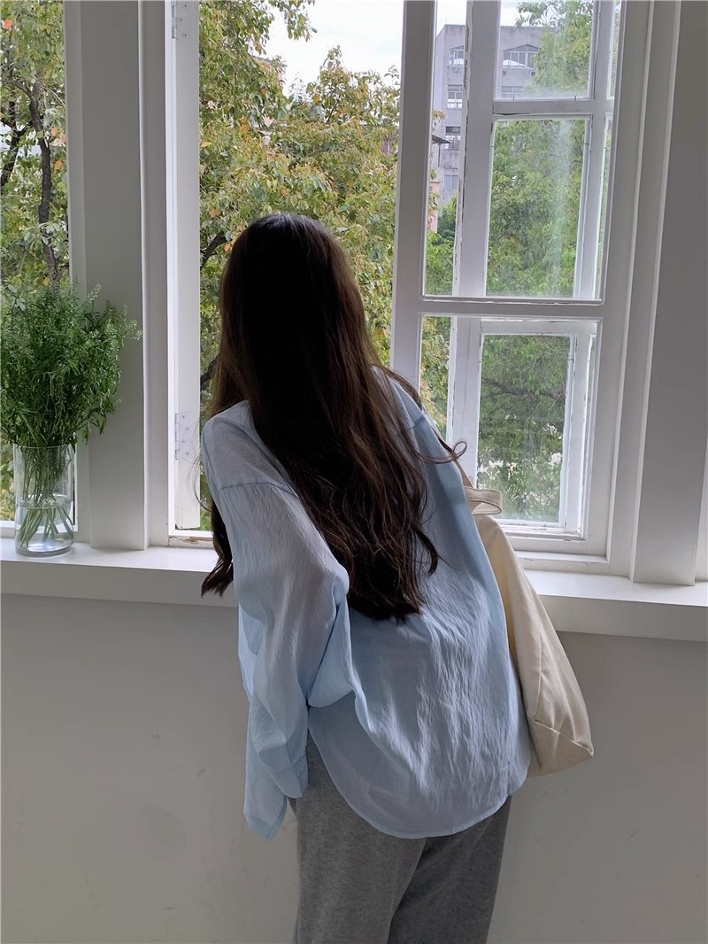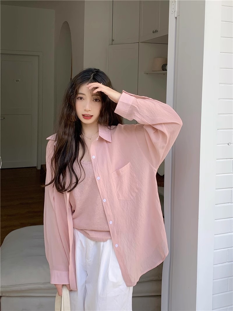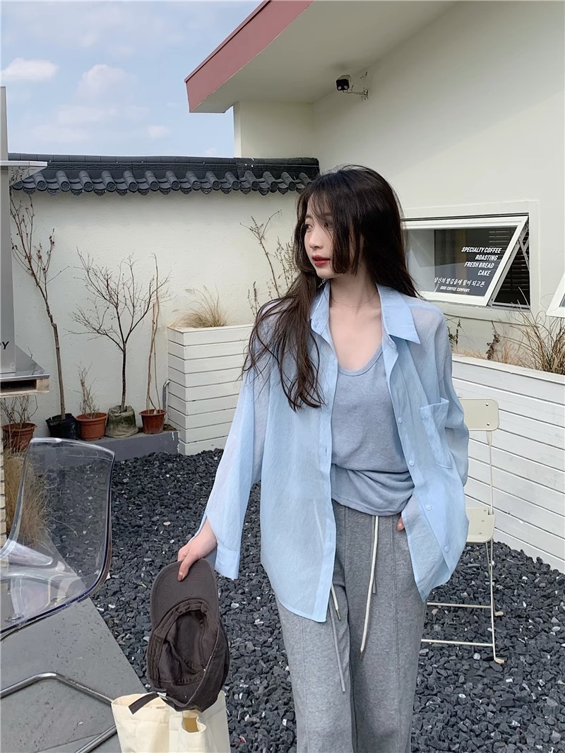 선스크린 탑 여성의 여름 외부 카디건 느슨한 얇은 재킷 여성 셔츠 디자인 틈새 화이트 셔츠스토어 가기