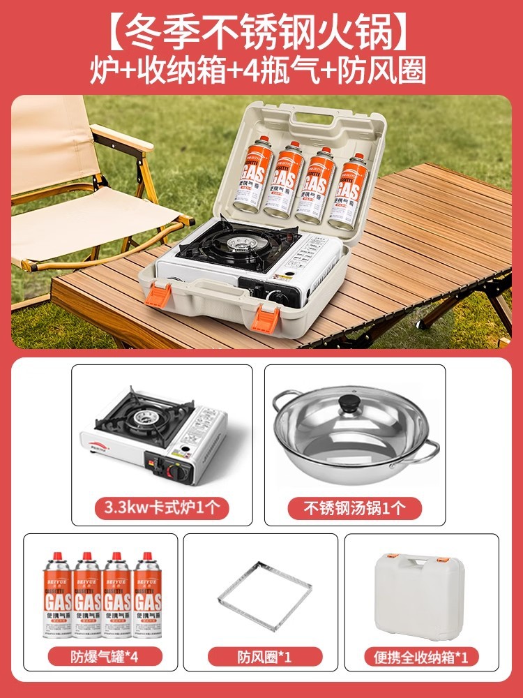 • [겨울 스테인리스 전골] 난로 + 수납함 + 가스 4병 + 국물 냄비 + 방풍링