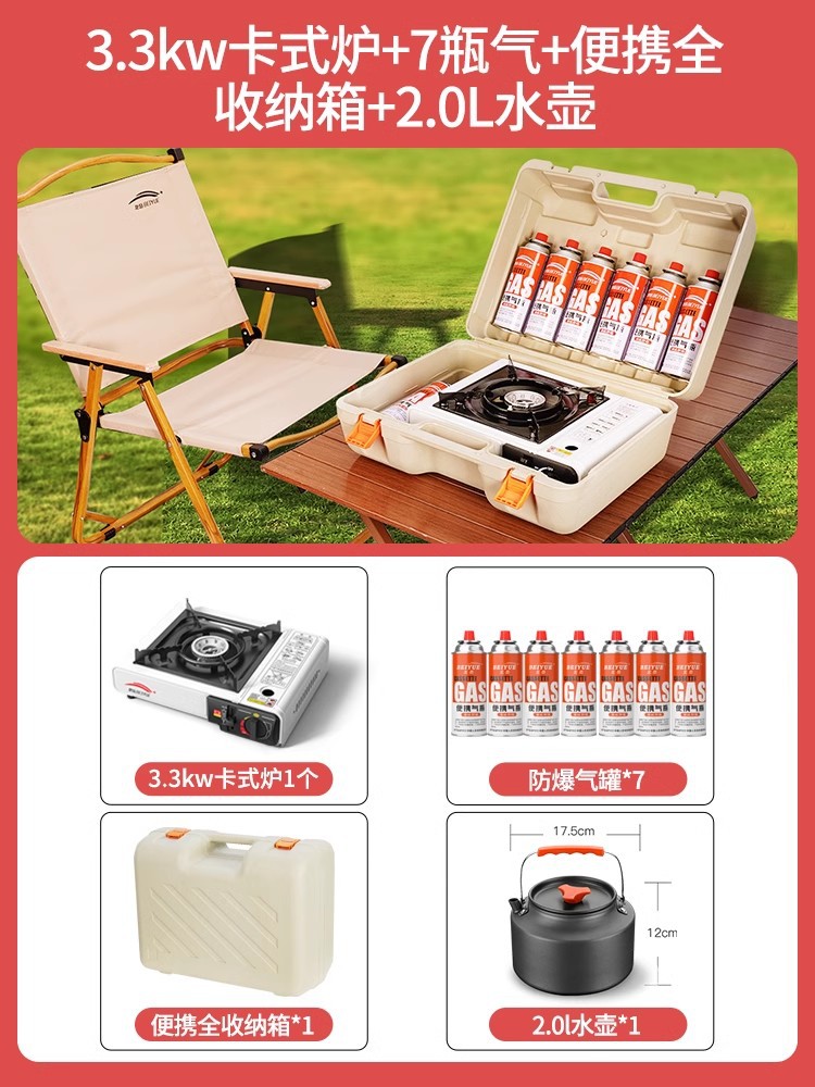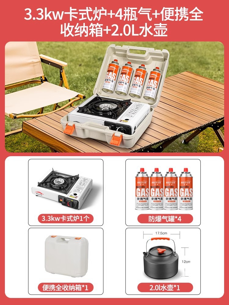 • 업그레이드된 카세트 스토브 + 가스 4병 + 휴대용 풀 수납함 + 2.0L 주전자