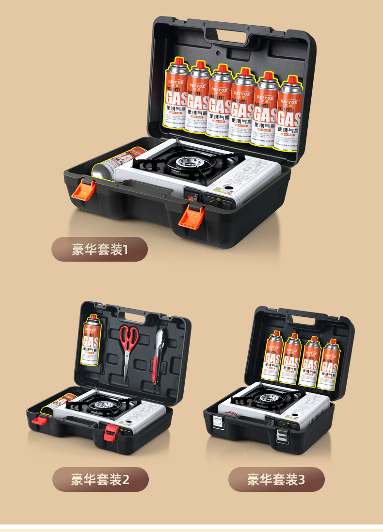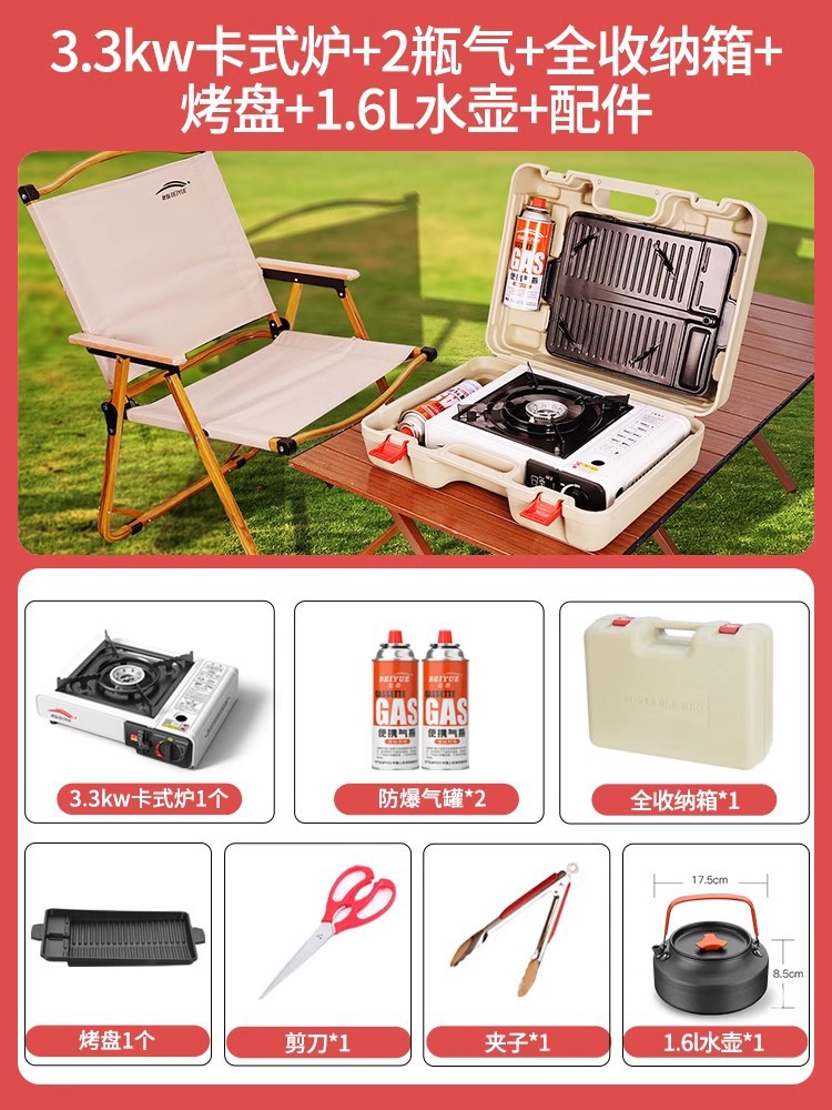 • 업그레이드된 카세트 스토브 + 가스 2병 + 전체 보관함 + 베이킹 팬 + 1.6L 주전자 + 액세서리
