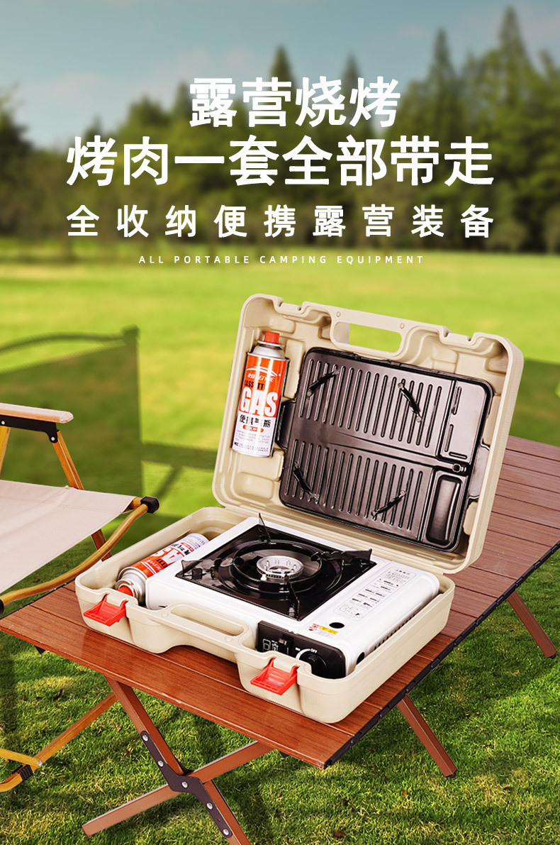 높은 전력 카세트 오븐 무대 야외 캠핑 원 키 볶음 방지 폭발 방지 휴대용 슈퍼 걱정없는 전체 세트