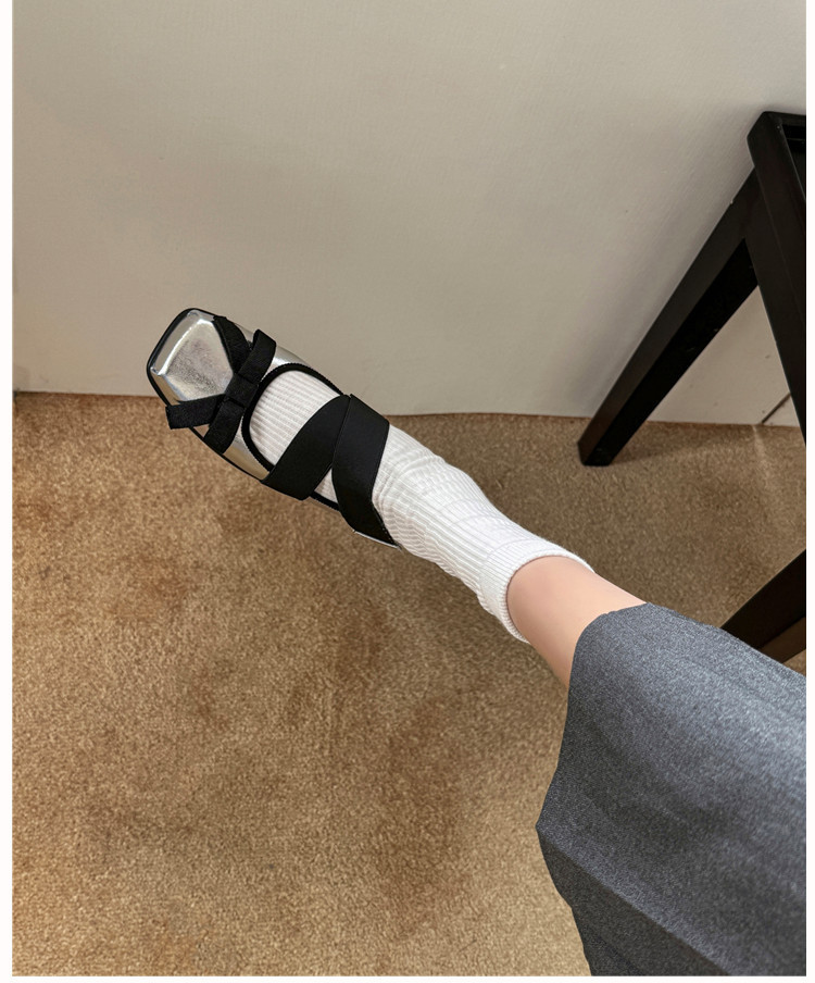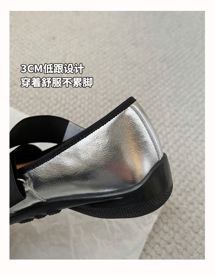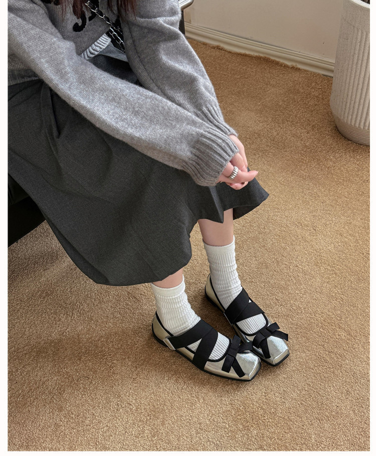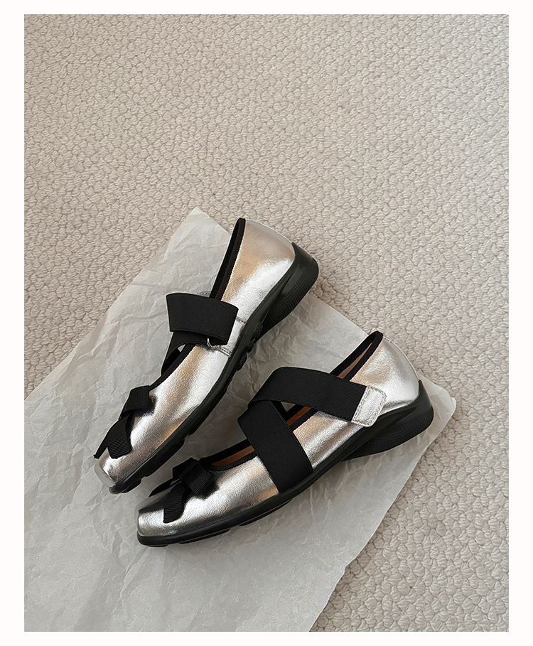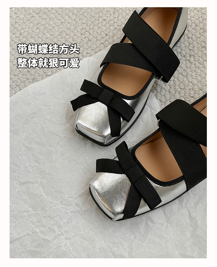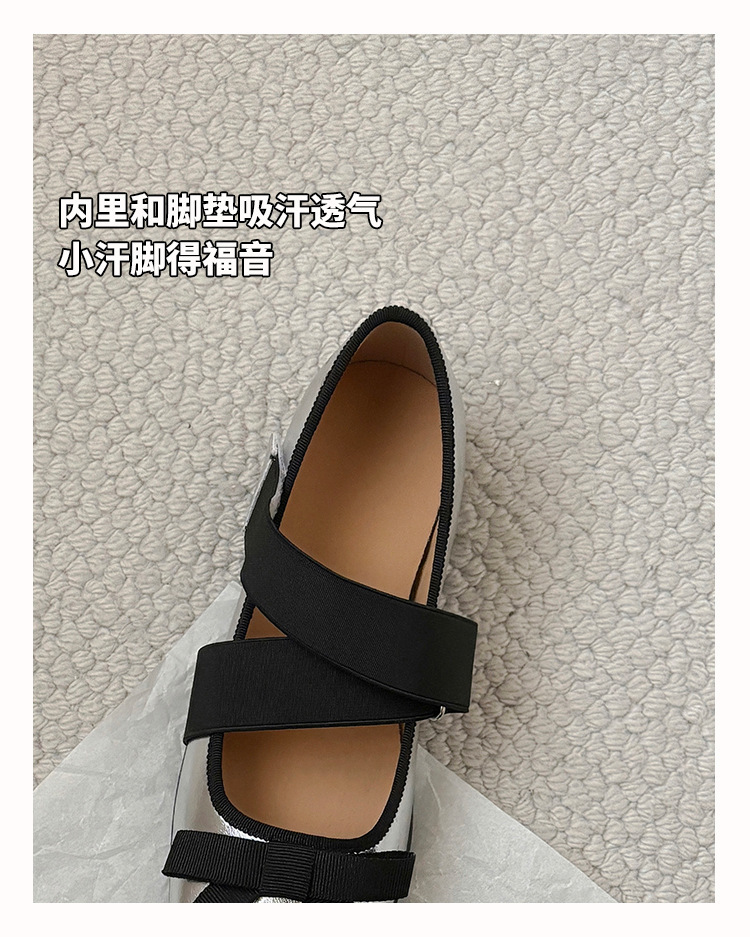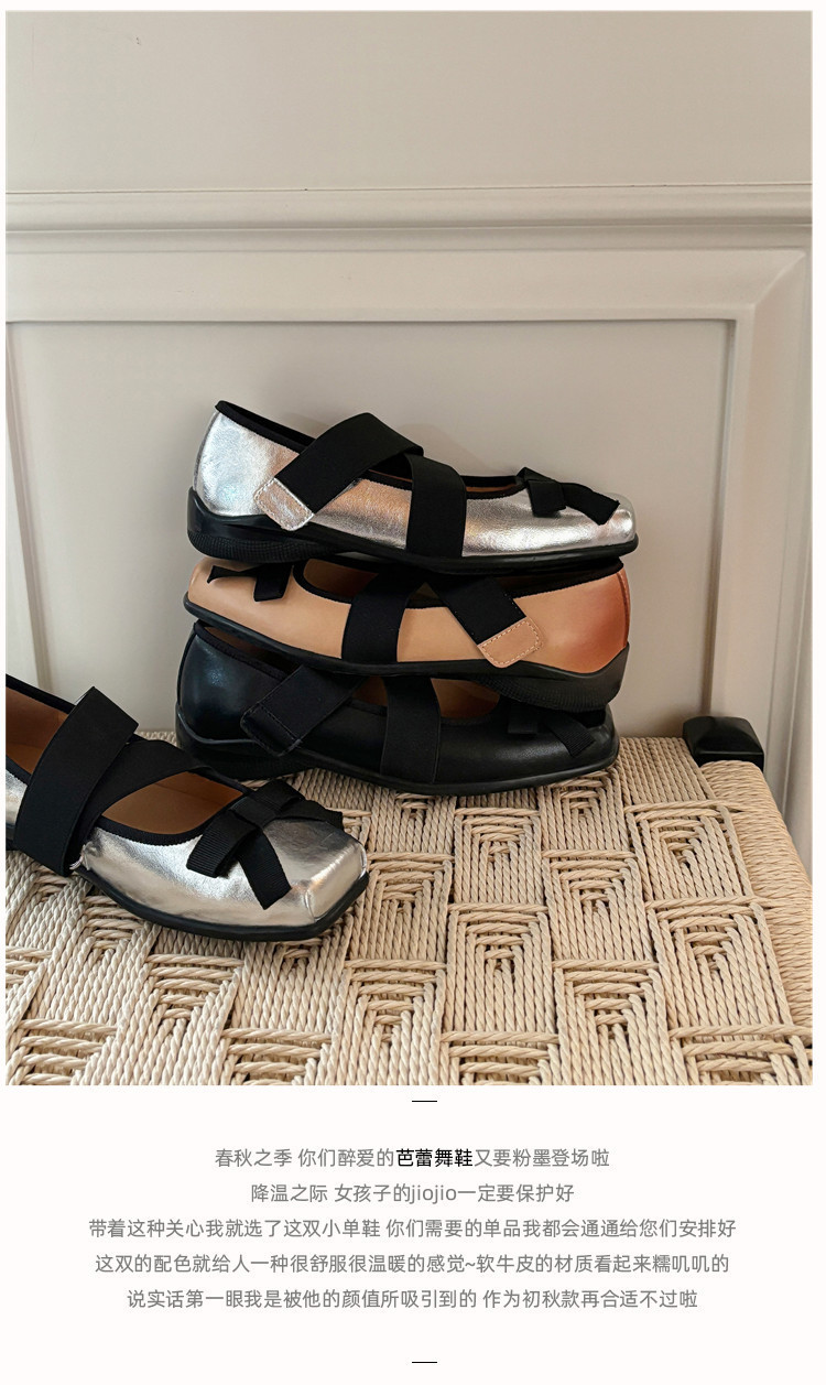 양가죽 버전 ~ 스포츠 스타일 복고풍 실버 스퀘어 헤드 발레 신발 나비 넥타이 플랫 바닥 메리 제인 신발 여성스토어 가기