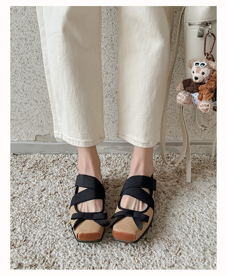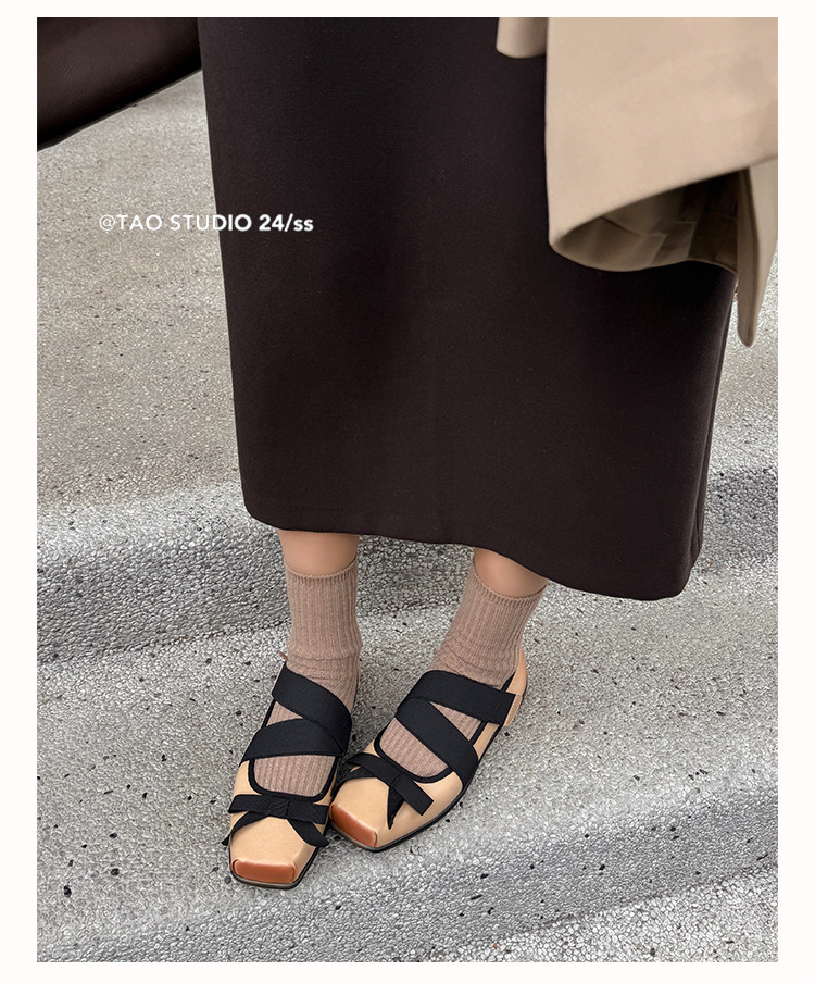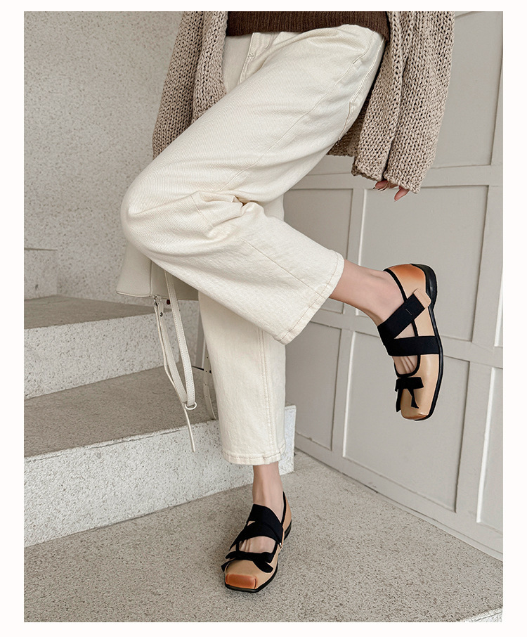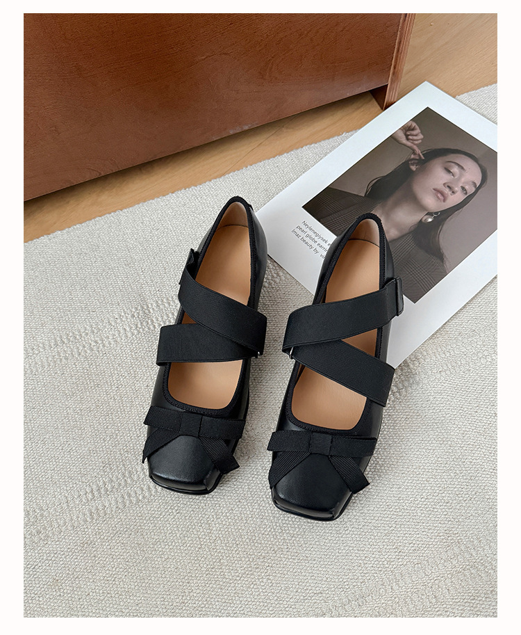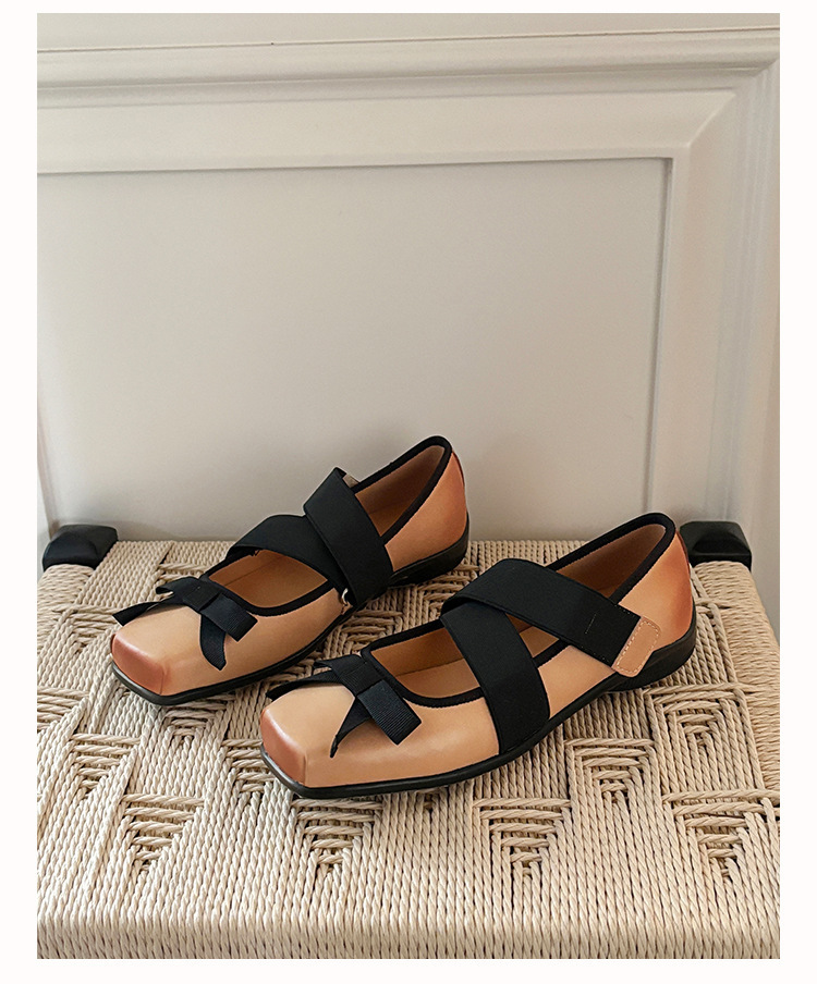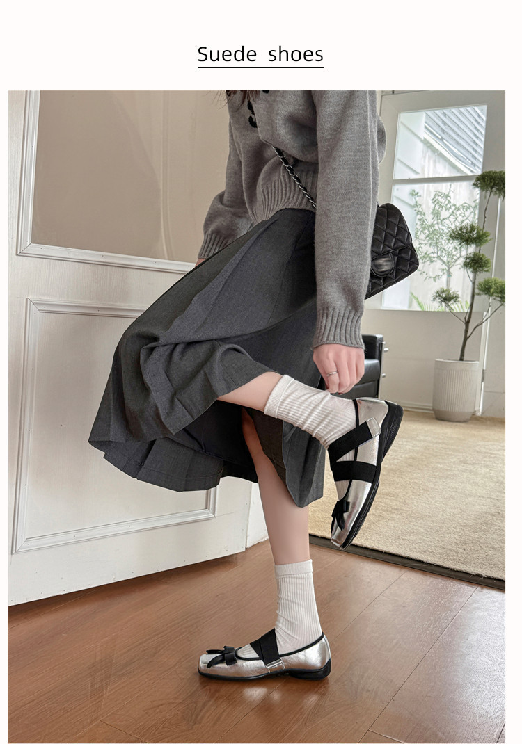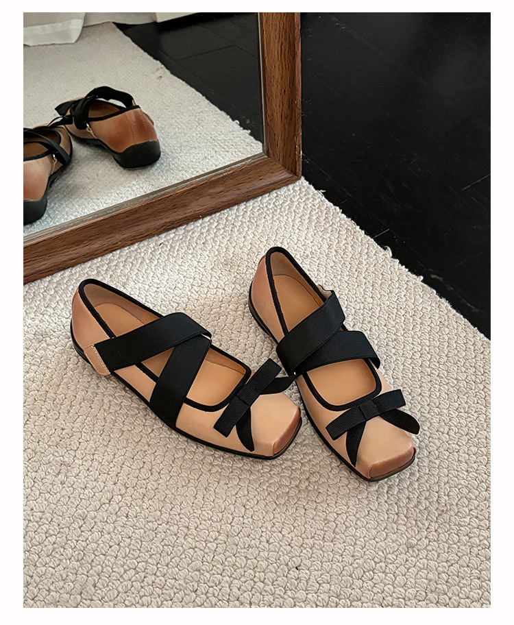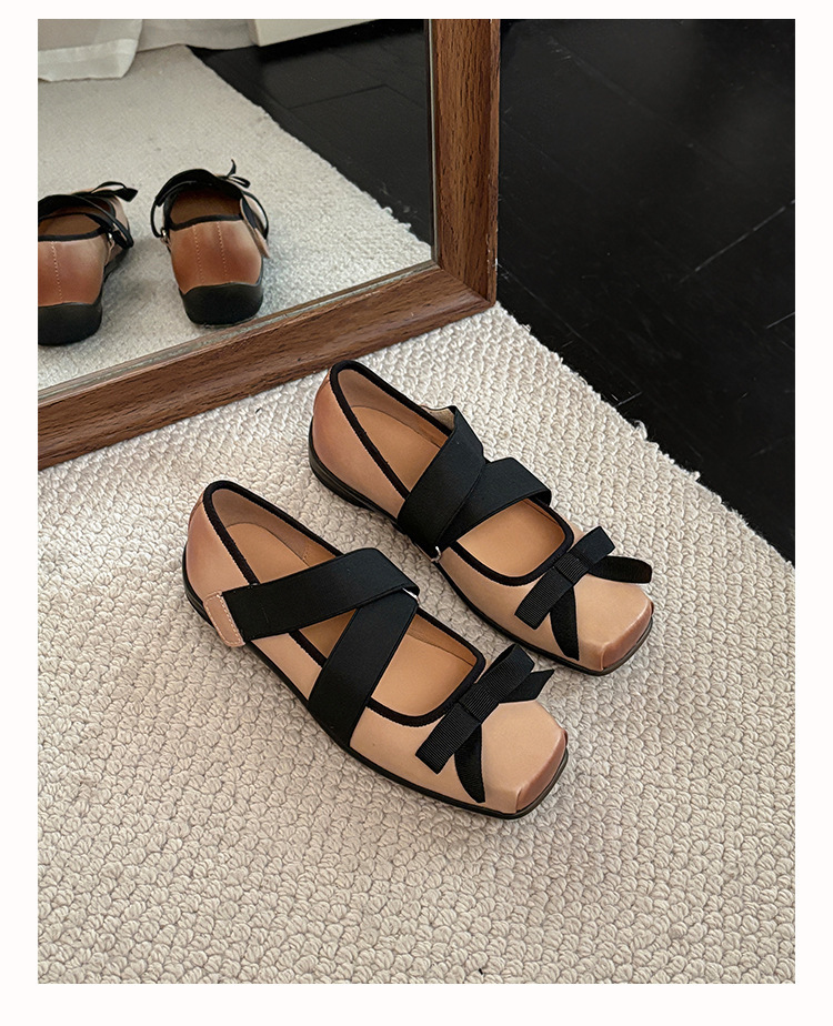 양가죽 버전 ~ 스포츠 스타일 복고풍 실버 스퀘어 헤드 발레 신발 나비 넥타이 플랫 바닥 메리 제인 신발 여성스토어 가기