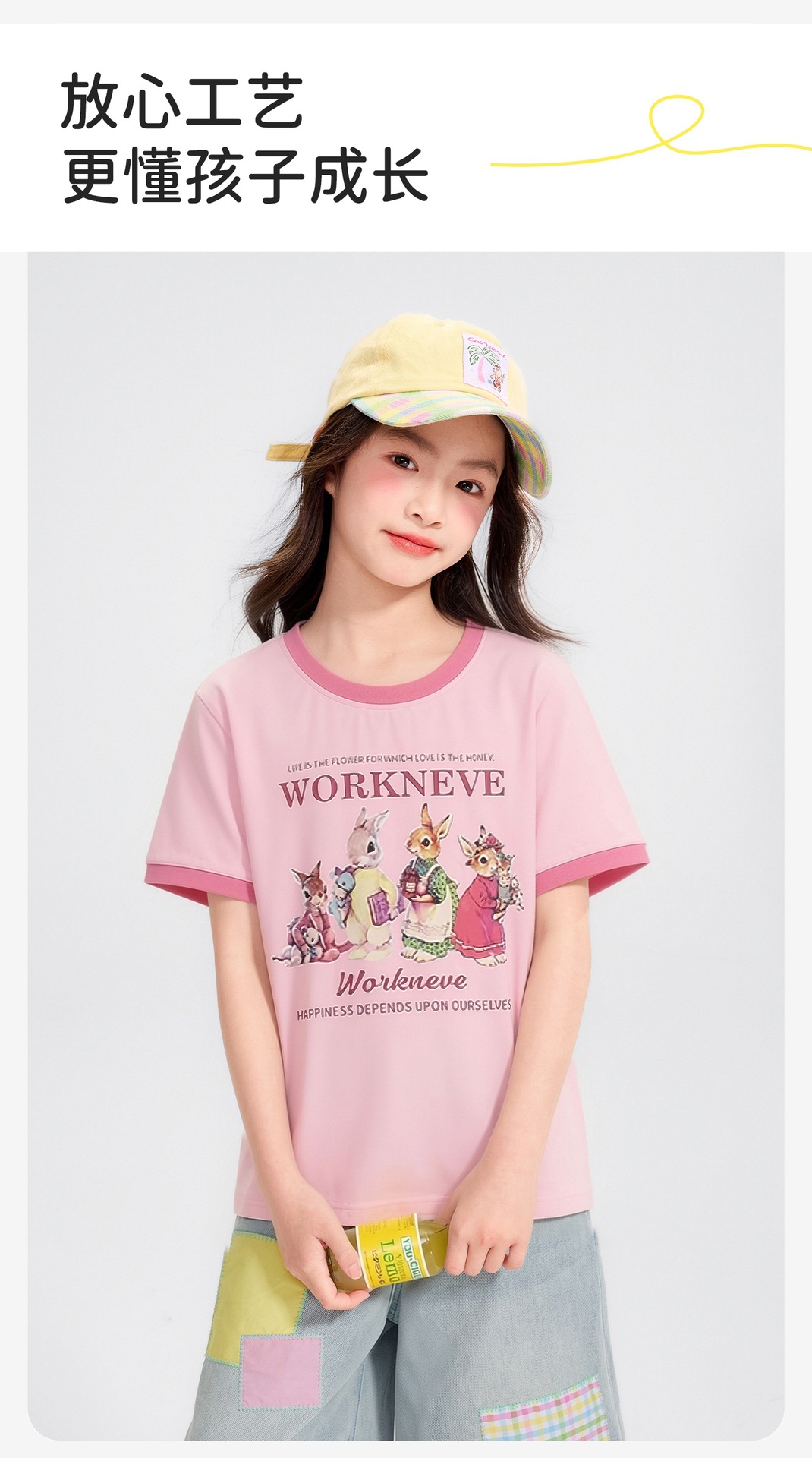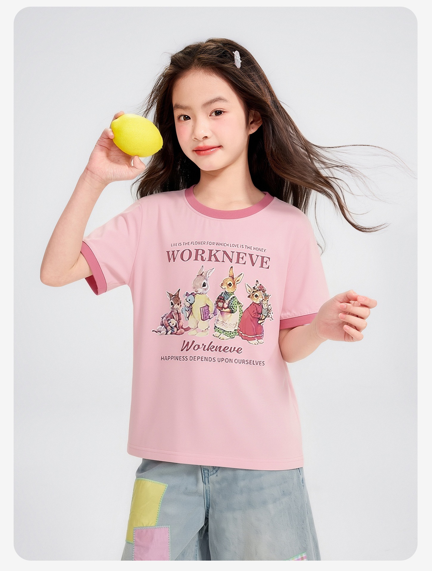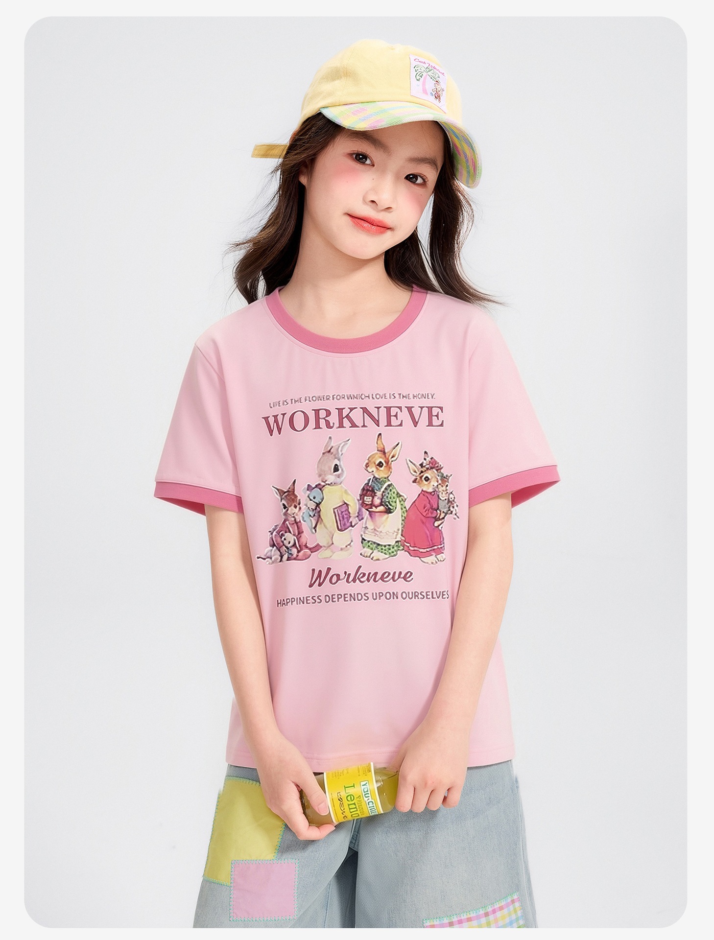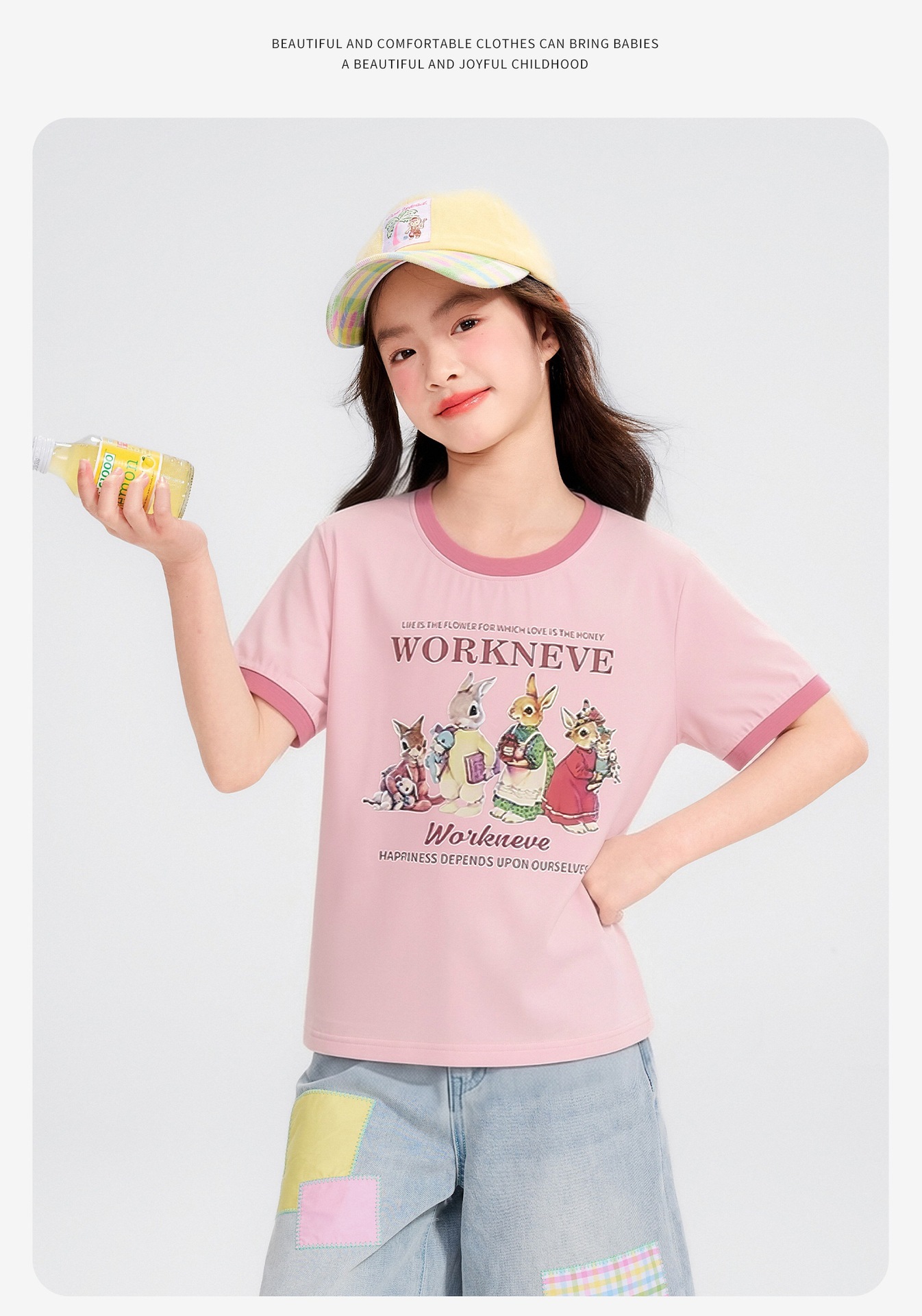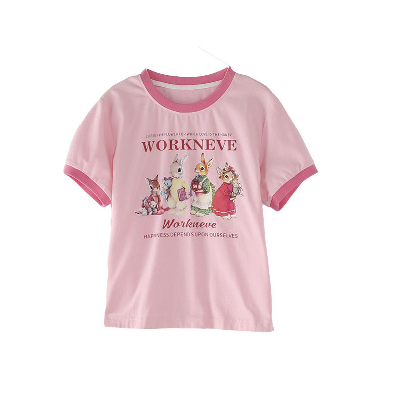 공주 Yuanyuan 2025 한국 소녀 큰 어린이 컬러 스티칭 만화 티셔츠 재킷 아동복 직조 도매스토어 가기