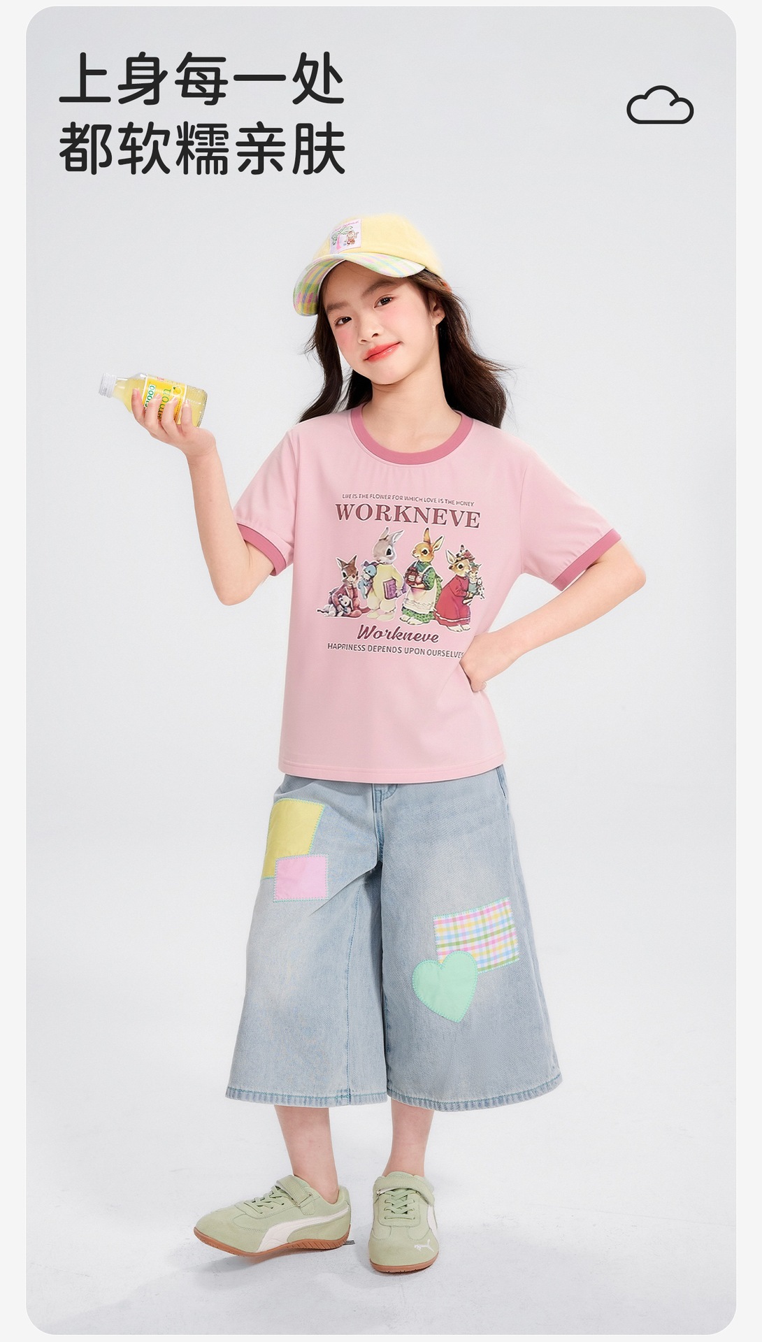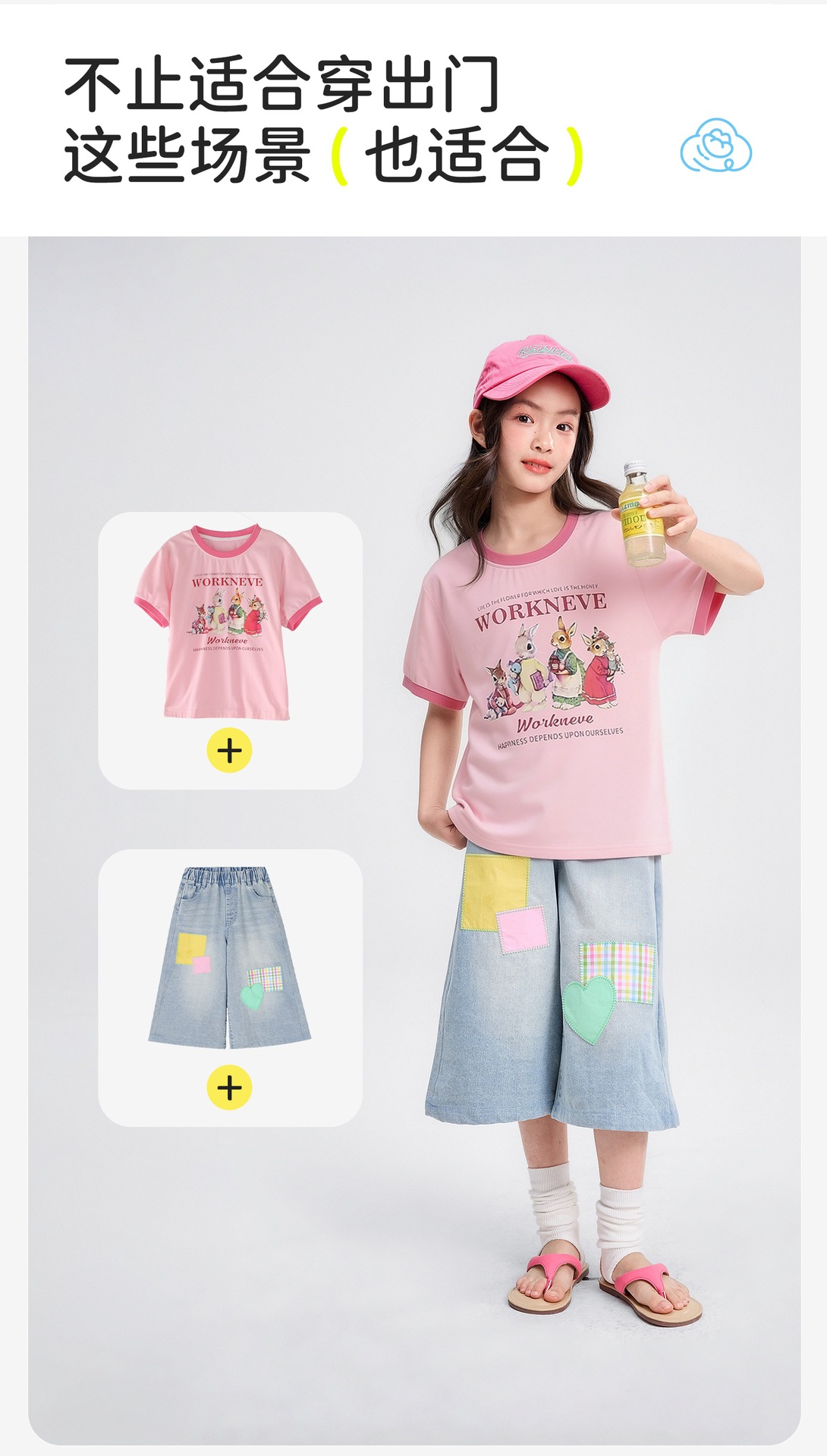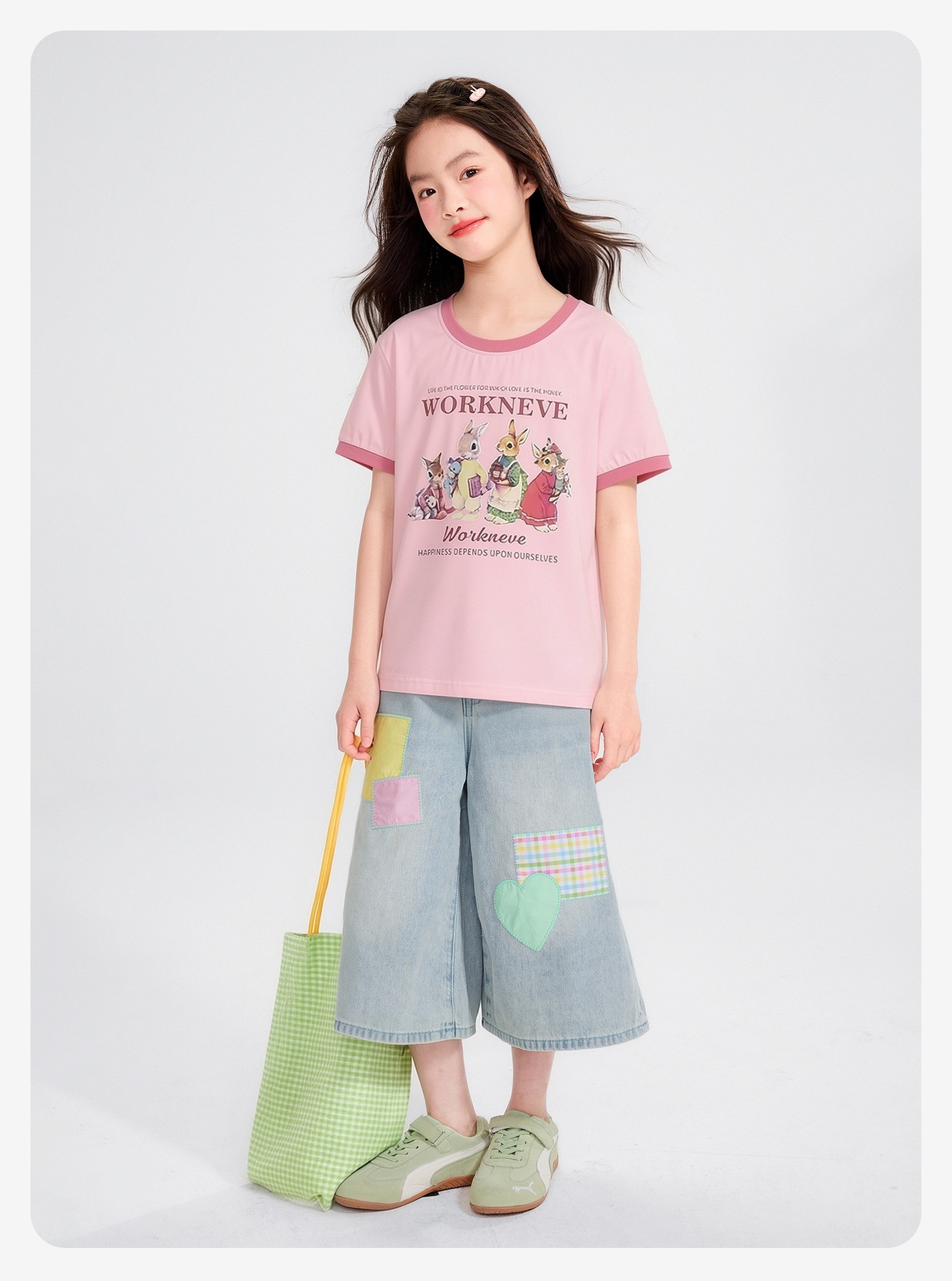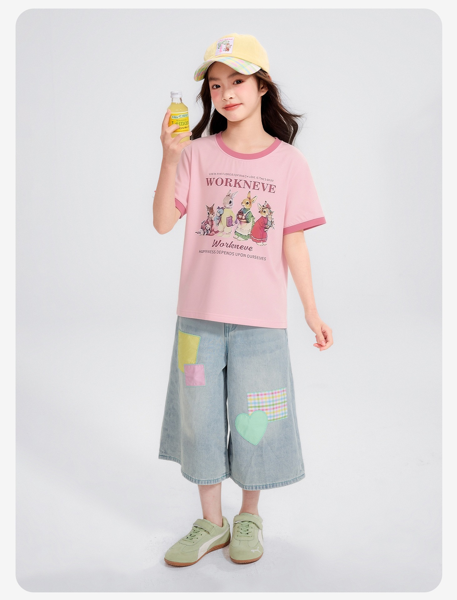 공주 Yuanyuan 2025 한국 소녀 큰 어린이 컬러 스티칭 만화 티셔츠 재킷 아동복 직조 도매스토어 가기