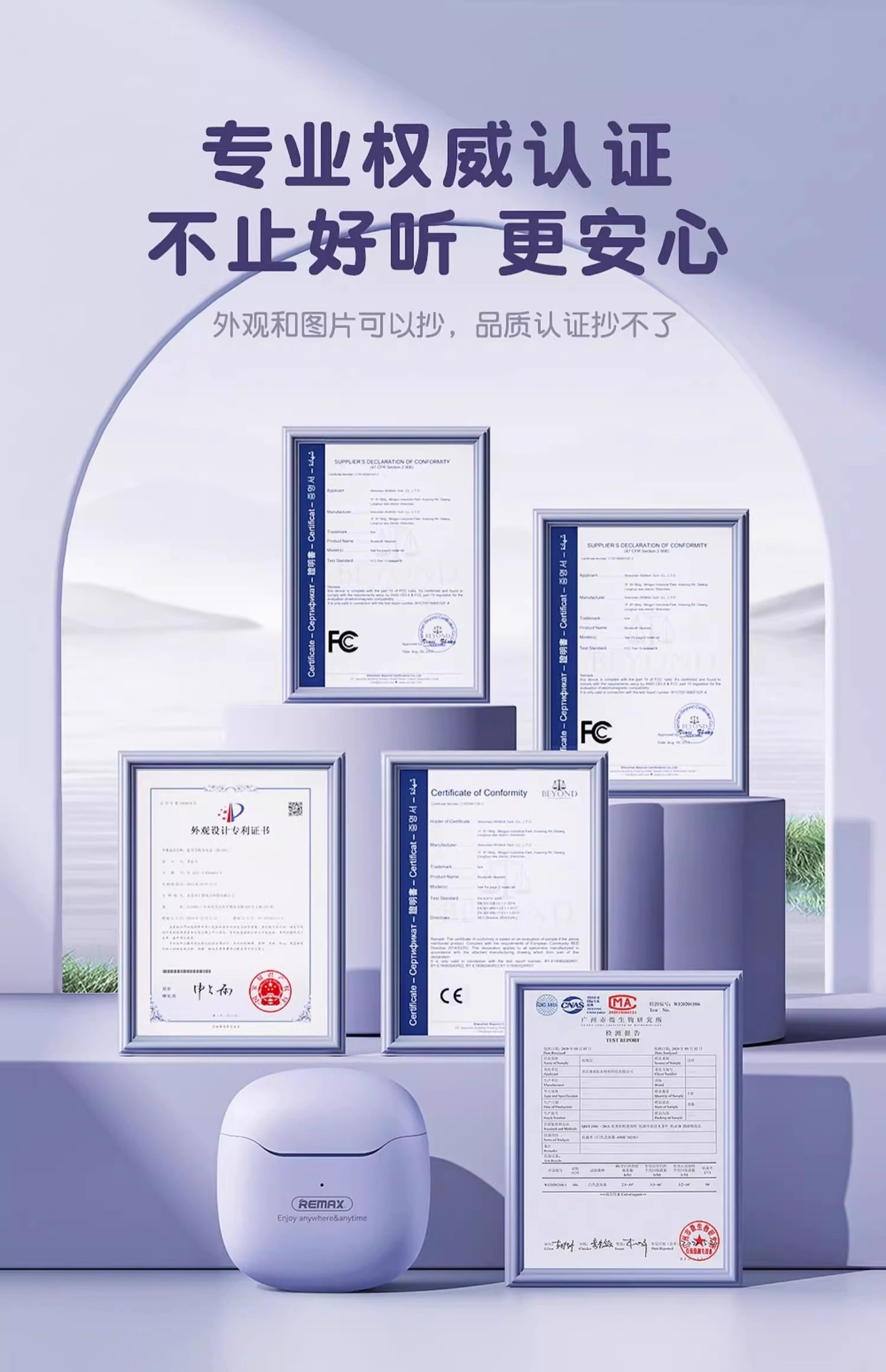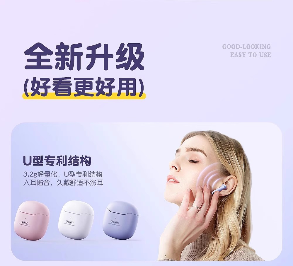 REMAX 진정한 무선 블루투스 헤드셋 소음 감소 휴대 전화 음악 헤드셋 긴 내구성 블루투스 헤드셋 로고