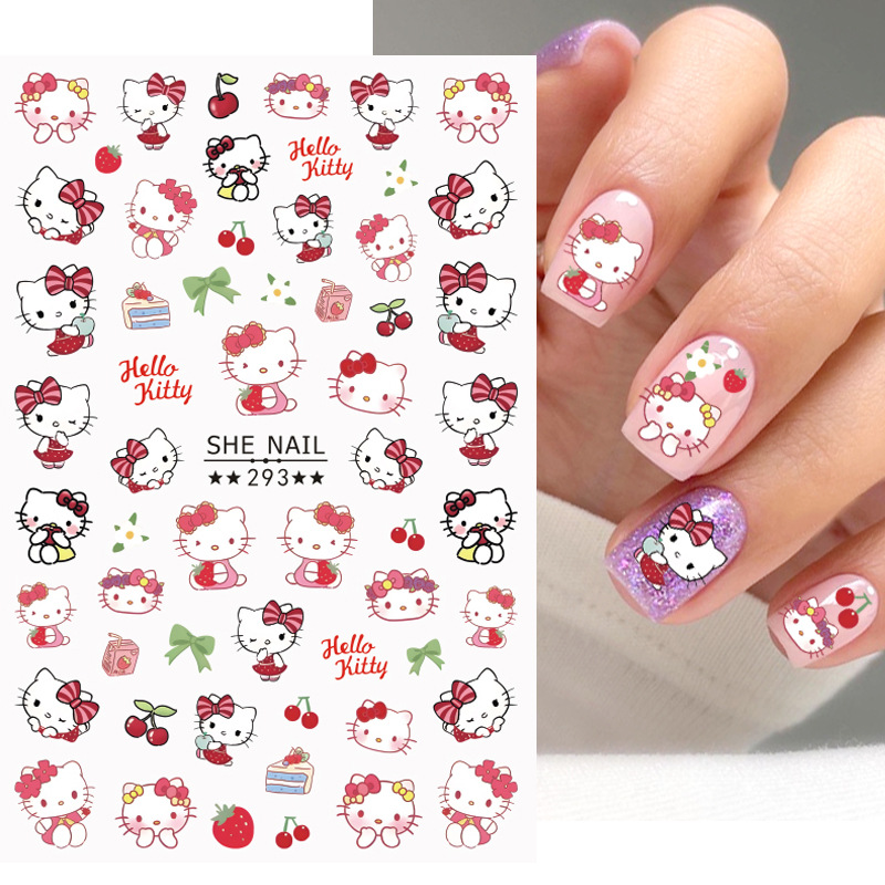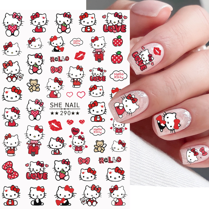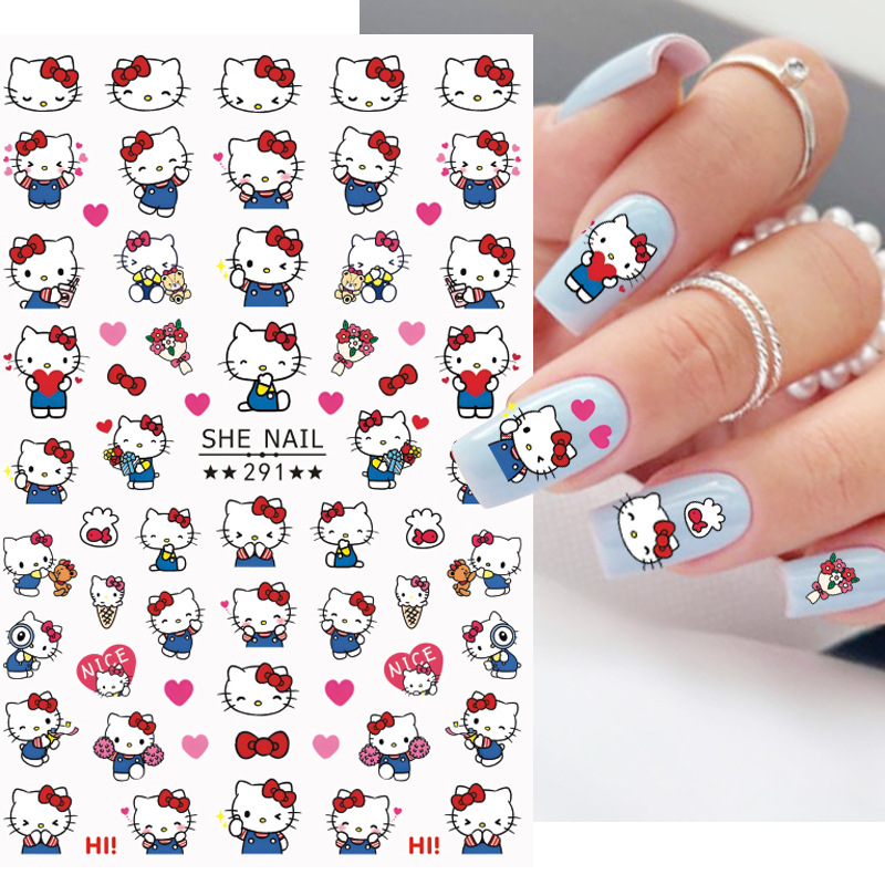 만화 귀여운 헬로 키티 네일 아트 스티커 고카 손 계정 장식 방수 접착 자체 접착 장식 재료 스티커스토어 가기