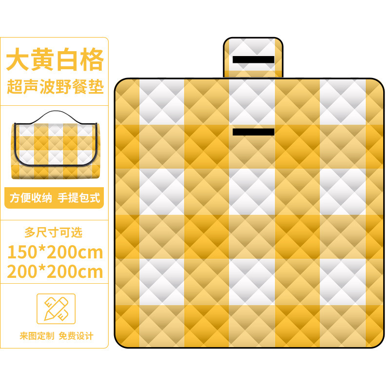 • 대황 흰색 그리드 초음파 피크닉 매트