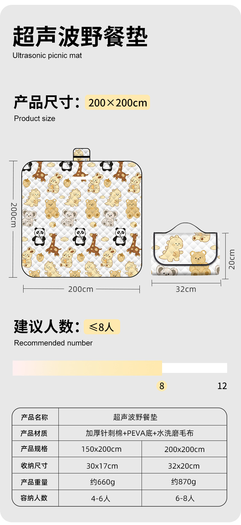• Tianyuan Chunxiao 초음파 피크닉 매트