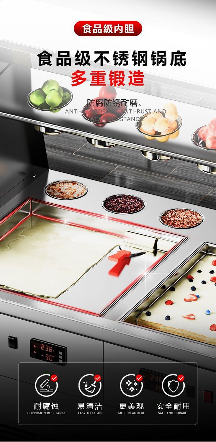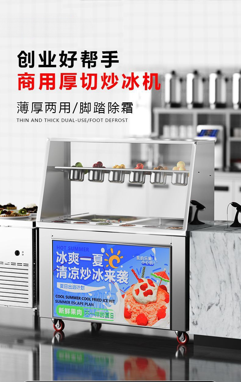 두꺼운 절단 요구르트 기계, 아이스크림 및 프라이드 아이스 기계, 상업용 프라이드 밀크 및 프라이드 아이스크림 롤 기계, 싱글 및 더블 냄비 기계스토어 가기