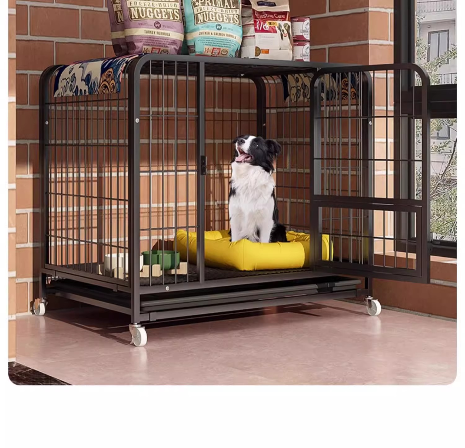 개 케이지 실내 중형 및 대형 개 울타리 가구 화장실 통합 높이 애완 동물 용 두꺼운 움직일 수있는 개 케이지스토어 가기