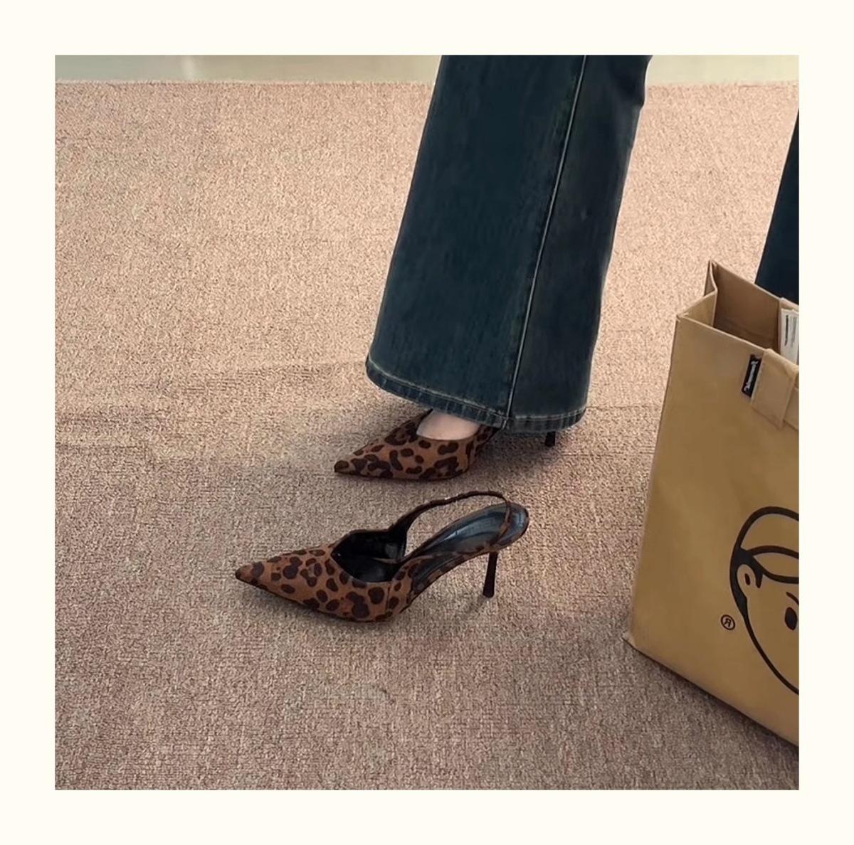 두 높이 ~ 프랑스 뾰족한 레오파드 하이힐 발가락 샌들 여성용 봄과 여름 스틸레토 힐 스웨이드 리어 빈 신발스토어 가기