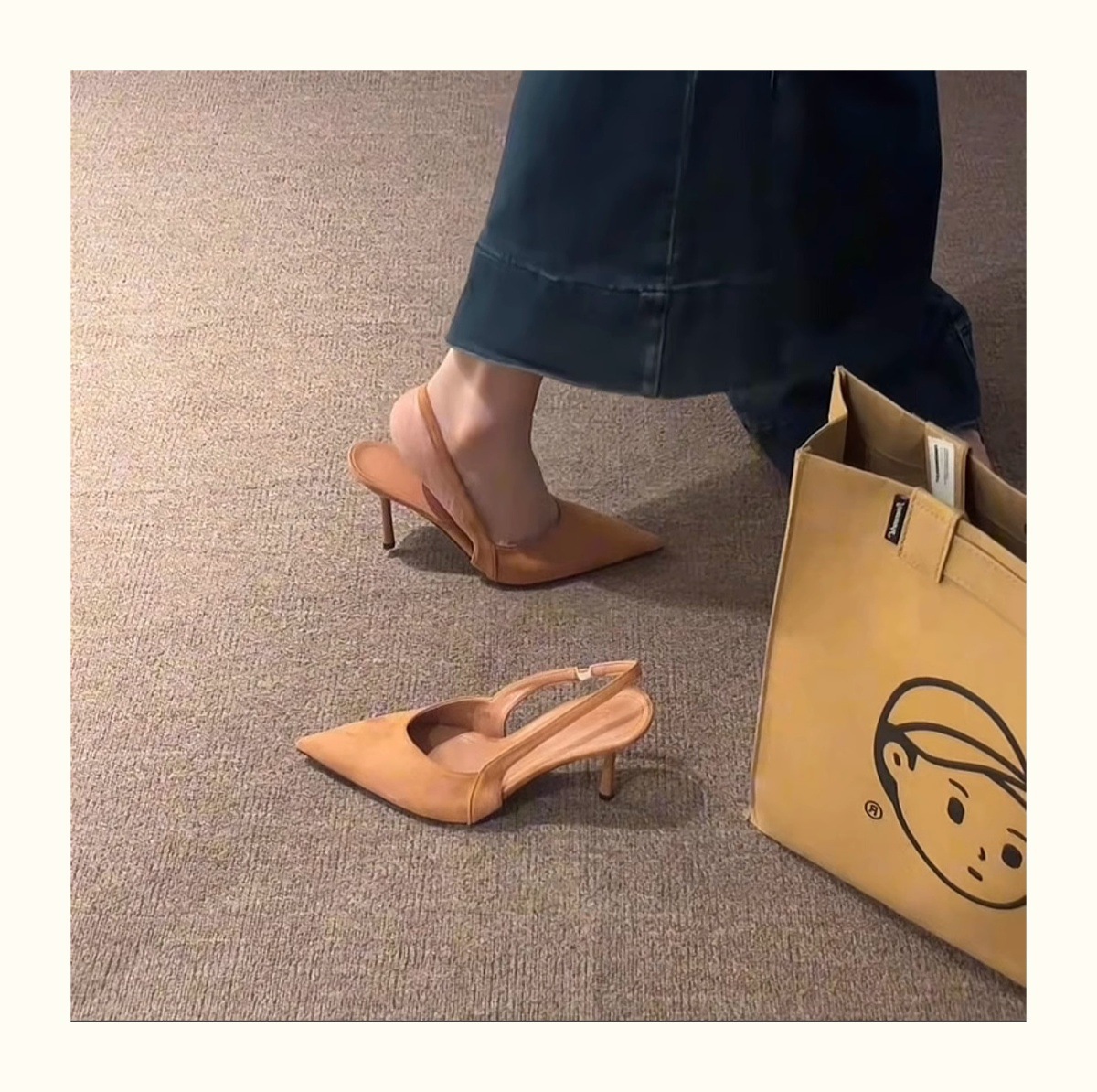 두 높이 ~ 프랑스 뾰족한 레오파드 하이힐 발가락 샌들 여성용 봄과 여름 스틸레토 힐 스웨이드 리어 빈 신발