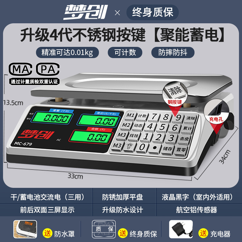 • [24개의 올스틸 버튼 스톨] 업그레이드된 5세대 레드 레터 평판(삼용/정밀도 0.01kg) [빠른 체크아웃 및 계산]