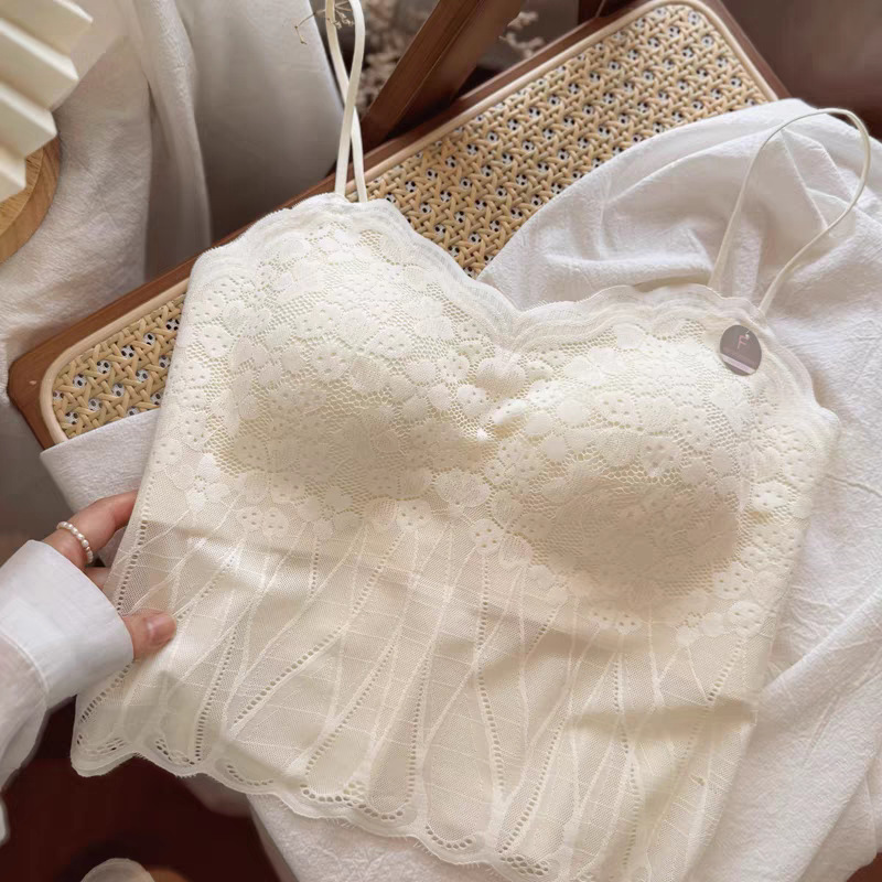 【T00】프렌치 레이스 뷰티 서스펜더 가슴 패드 캐미솔은 외부에 착용 가능 고정 컵 가슴 스트랩 속옷스토어 가기