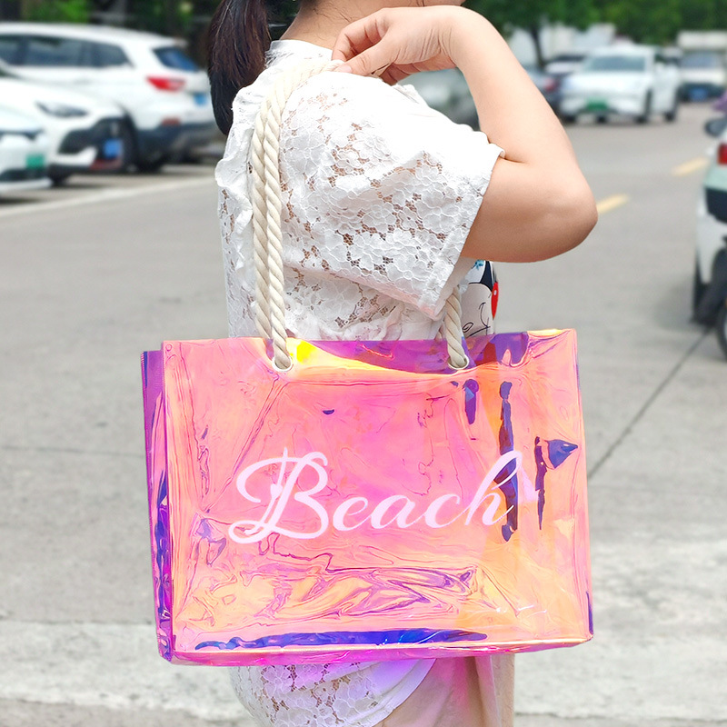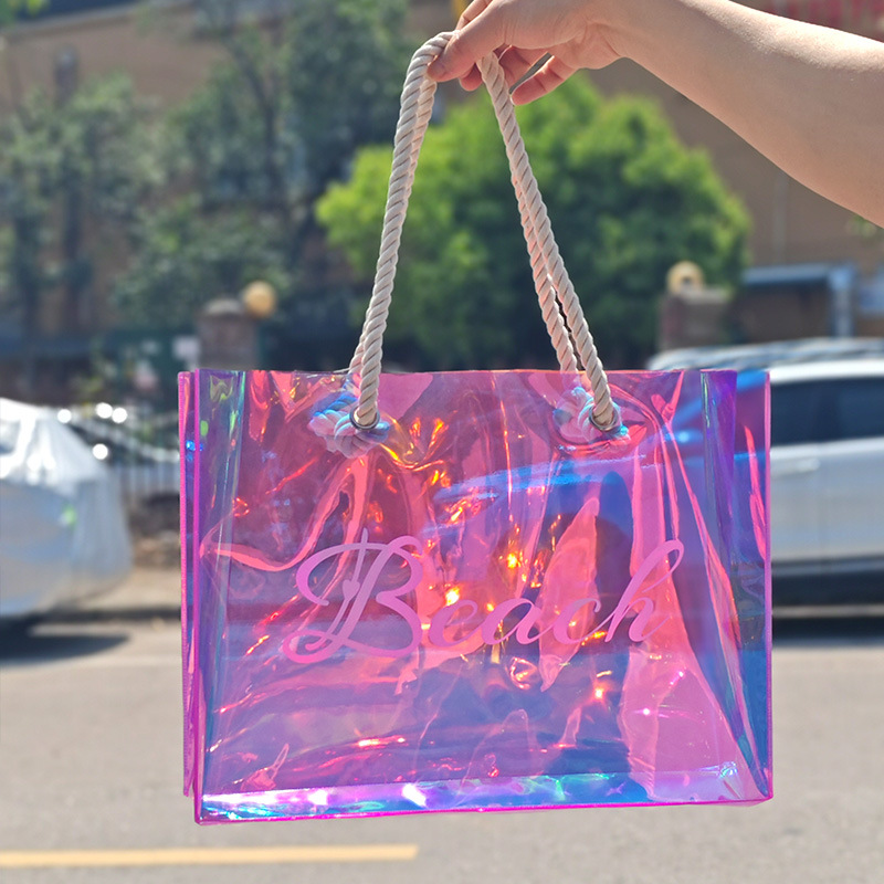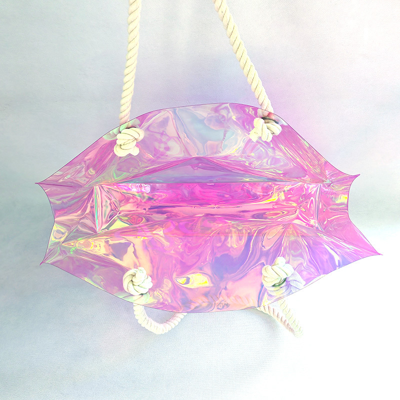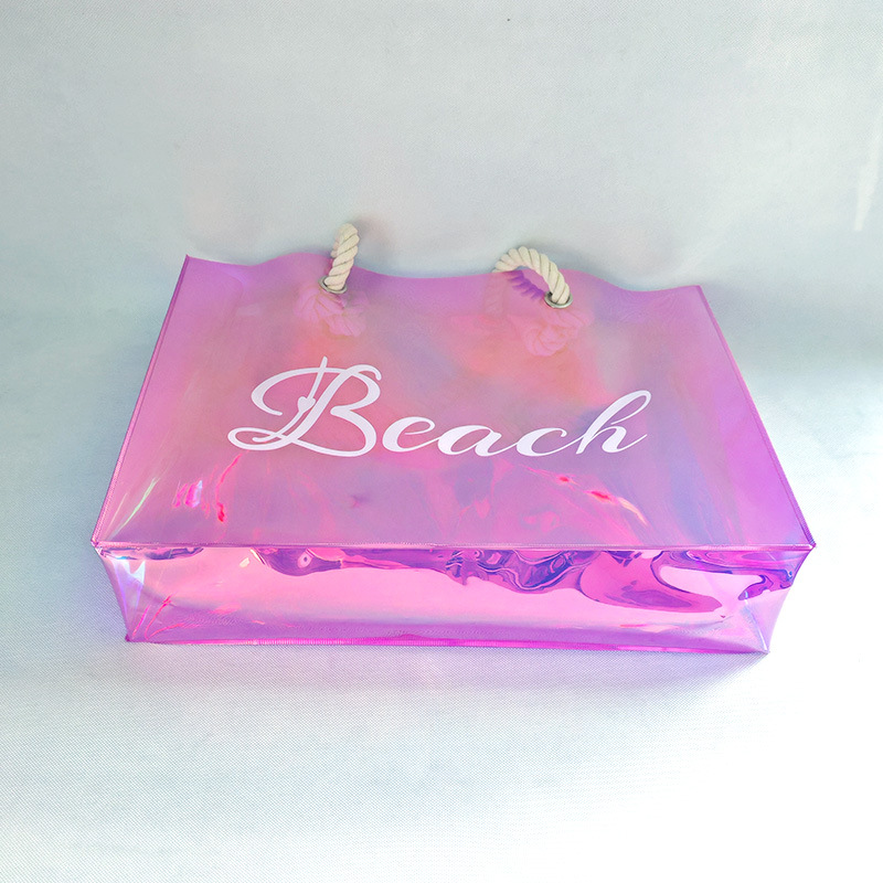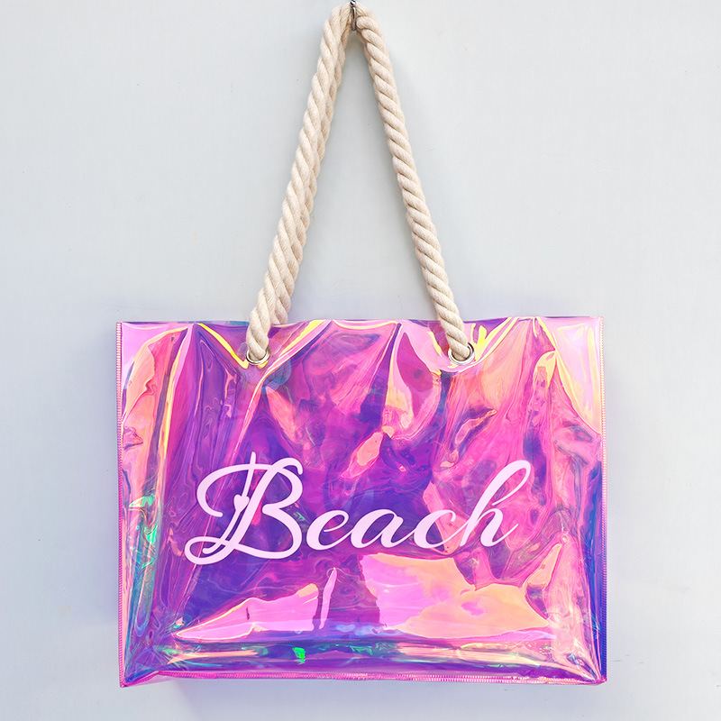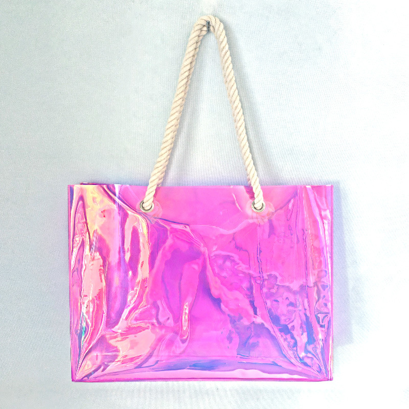 핑크 PVC 대마 로프 가방 매직 비치 레이저 가방 자동 쇼 선물 토트 플라스틱 투명 젤리 가방 크로스 테두리