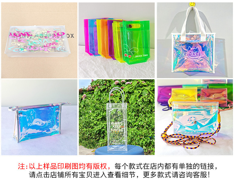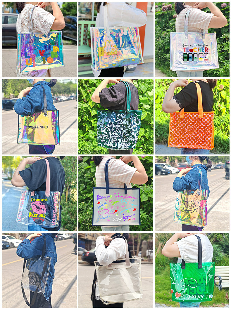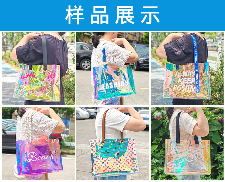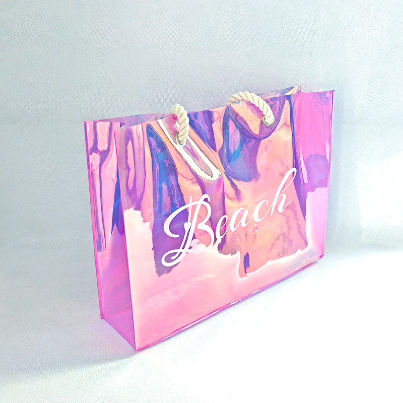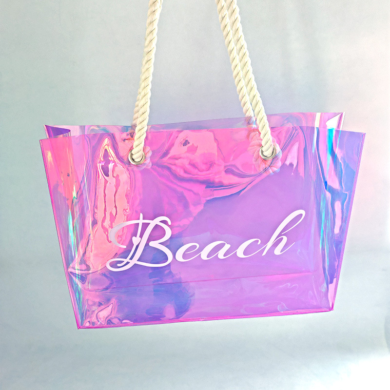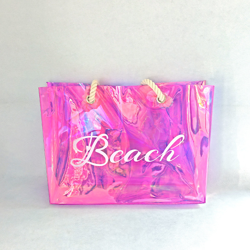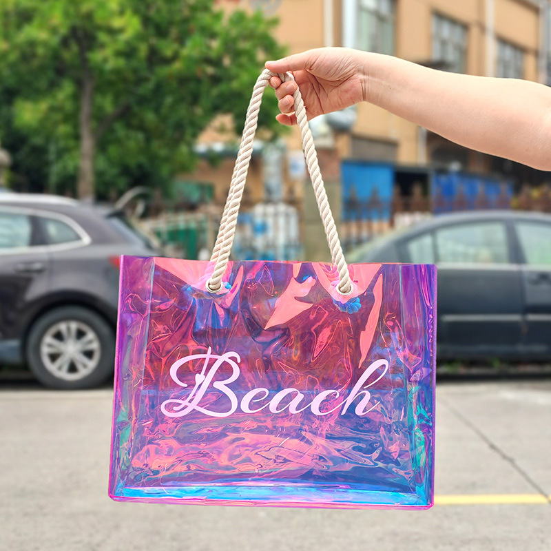 핑크 PVC 대마 로프 가방 매직 비치 레이저 가방 자동 쇼 선물 토트 플라스틱 투명 젤리 가방 크로스 테두리