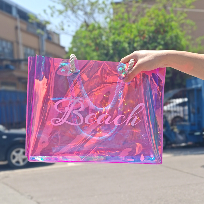 핑크 PVC 끈 가방, 비치 레이저 백, 자동차 전시회 선물용 핸드백, 플라스틱 투명 젤리백, 해외 휴대용스토어 가기