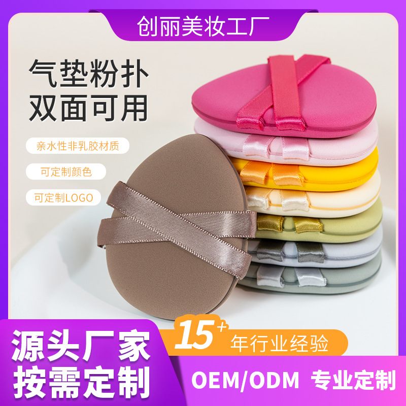 파우더를 먹지 않는 맞춤형 더블 리본 파우더 퍼프, q-블래스 에어 쿠션, 습식 및 건식 리퀴드 파운데이션 메이크업 스펀지, 마시멜로 워터 글로스